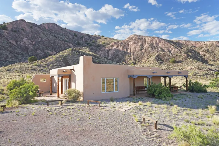 River frontage: 320 feet on Rio Chama!! A piece of paradise. In the middle of 4 secluded acres of lush Cottonwoods and surrounded by lush plants and flowering bushes lies that home of your dreams. This Adobe home was constructed in honor of ancient ways with adobe, pitched metal roof with passive solar south-facing windows for the studio, sunroom or greenhouse and solar mass to help with heating and cooling. Enter this marvelous home through modest wood doors and choose the sunroom or formal living room, centered by a large, traditional shepherd’s fireplace, nichos and a window seat for quiet moments. Then on to a generous owner’s bedroom suite Back through theĀ living room is a huge, simple country kitchen centered with dining area with room for a dozen hungry souls who can gaze through the window wall to the soothing Rio Chama. Down by the river’s edgeĀ is a 12 by 20 screened room for entertaining or simple soul searching by this magnificent river (property staked in the river with over 300 feet of river frontage) Ā Additional architectural features include radiant heated adobe floors, a second bedroom and bath, for guests. Add tranquility into that sanctuary of your own.Ā There is a fenced pet or gardening area and privacy from neighbors from the thick growth along property lines.