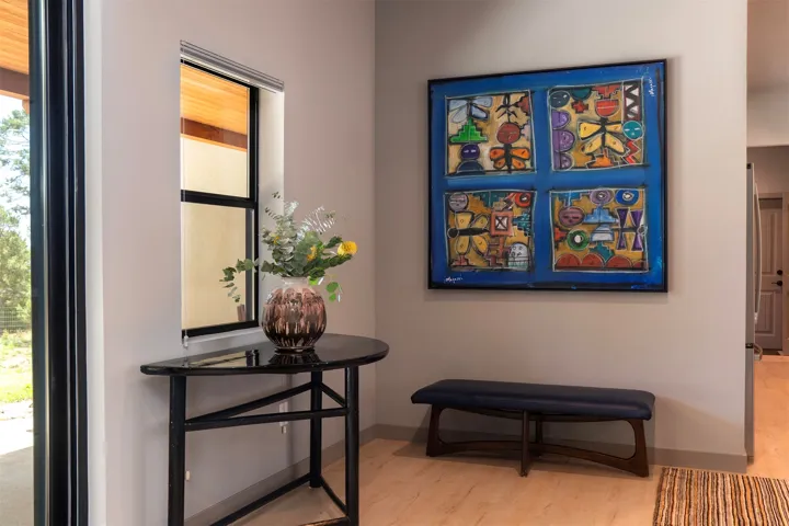 LIVE A TURNKEY HEALTHY LIFESTYLE AT THIS WONDERFUL PECOS ALPINE MOUNTAIN GATED RETREAT! This 2022 Contemporary Pueblo in the ‘Birds of a Feather’ subdivision boasts Modern Living in a Beautiful Wooded setting with Mountain Views, Open Concept Floor Plan, & Fantastic Build Features. The Living area w/ 10ft ceilings is centered by a sleek Electric Fireplace. The Dining Area open to wide views and Acreage. A fantastic Kitchen features Modern 3D Ceramic backsplash; large central island; Quartz Slab Countertops; Custom Maple Cabinetry; GE Refrigerator w/ Ice & Water makers; Zephyr Range Exhaust Hood; GE Touch Screen Convection/Air Fryer/Smart Oven; Sharp Microwave/Warmer; GE Induction Range (gas available); Walk-in Pantry; Kohler Plumbing Fixtures & Sink. Two Portals allow for great coverage all year round. Dine on the amazing open air portal or garden overlooking the large backyard. With great separation, two bedrooms are set with En-suite Bathrooms w/ Walk-in Showers. The Primary Bath shows Marble Accents, Light-up Medicine Cabinets; Walk-in Closet w/ connecting Laundry Room pass through. Jetted Tub makes for a spa-like quality in peaceful surroundings. Enjoy multiple heating sources and an air filtered cooling system. In-Floor Zoned Radiant Heat; Forced Air Heating; and SimpliFire Electric Fireplace for winter. Central cooling in the summer offers the perfect control. Complete with a Positive Pressure system; AprilAir UV Whole House Humidifier & Air Filtration System; Lennox icomfort Smart Thermostat Control; Generac 24 Watt Whole House Back-up Generator; AquaSauna UV Water filtration system; Faux Bois Flooring; TPO Roof; Recessed Lighting; Anderson Double Insulated Windows & Doors, high end Thermodynamic Cell Blinds, Private Walled Front Courtyard; Wonderful Back Patio surrounded by Ponderosas & PiƱon Trees, this house is the perfect Mountain Sanctuary near fishing and hunting. This home has many ADA compliant features allowing flexible use or full conversion.