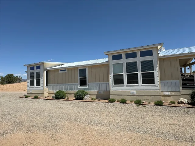 Beautiful three year old home, secluded on 11 acre lot. home and all steel shop are bermed in so it features fantastic Privacy from the entry road and other homes. No covenants in this area but beautiful homes. Views to the river valley and the Jemez Mountains. The property includes a like-new, Steel construction workshop with insulation, a garage door and pedestrian door, Overhead gas heater. With county permission, an owner could build more outbuildings and probably a second home or more. There is a huge above ground garden that is fenced to protect it from animals. Property is only a couple hundred yards from BLM access to thousands of acres of public lands. The home was customized with a couple additional feet in living/dining areas.Save time from building, ready to move in.