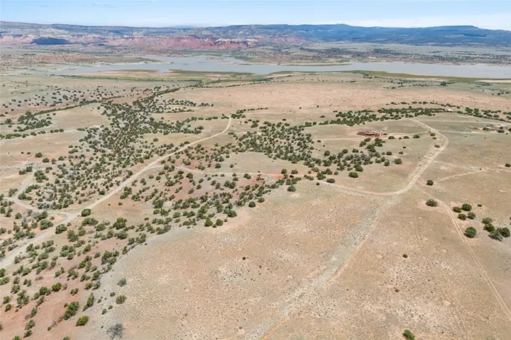 Spectacular 20.95 acre property to enjoy or build your desert retreat. Impressive views of Abiquiu Lake, Rio Chama, Cerro Pedernal, Georgia O’Keefe’s famous Ghost Ranch, and the Red Cliffs. This parcel is located in a gated community with an HOA, consisting of large lots, beautiful homes, and access to a private boat ramp. This lot has electricity at the property and accessible roads. The building site is large enough to accommodate a main home and a casita or studio. Savor the feelings of both privacy and a sense of community in the Land of Enchantment. Abiquiu Lake is a quiet and peaceful lake, 5,200 acres and twelve miles long. Abiquiu is located 1 hour northwest of Santa Fe and 1.5 hours southwest of Taos. The lot is across the lake from Ghost Ranch, where many popular movies have been filmed.
