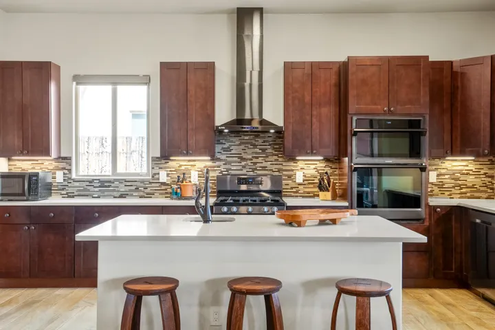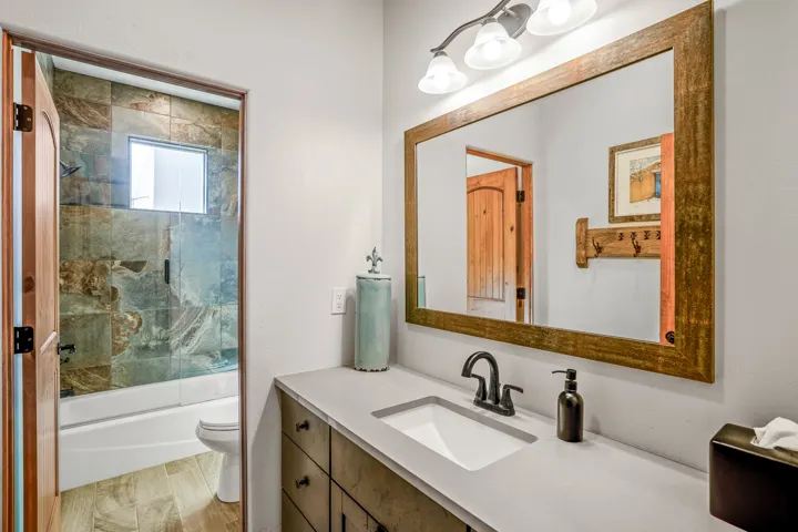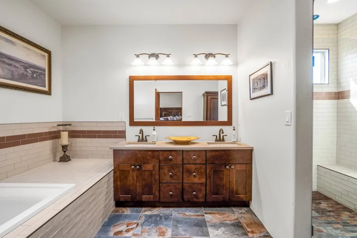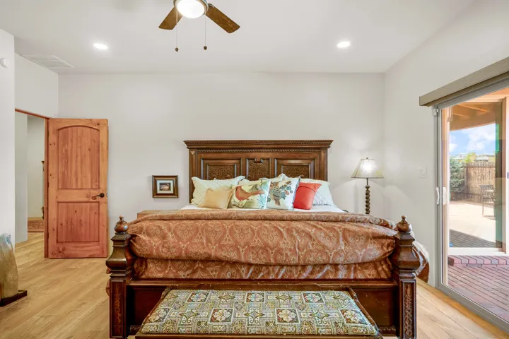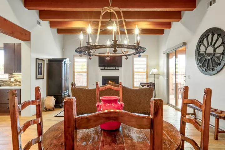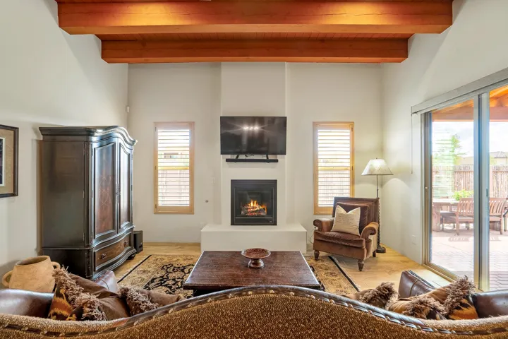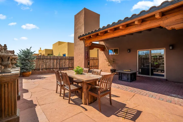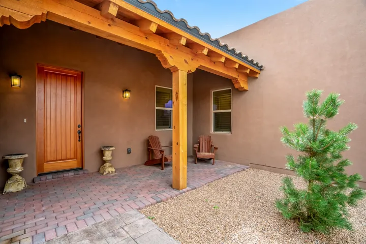Outdoor living is at its finest with a 2,400 sq. ft. enclosed backyard, complete with large flagstone patios, a deep portal, and a gas fireplace (with blower). Perfect for entertaining friends, the space offers a serene retreat backed by an arroyo and open space for added privacy. The home’s large sliding doors make indoor-outdoor transitions easy allowing you to enjoy Santa Feās exceptional weather year-round.