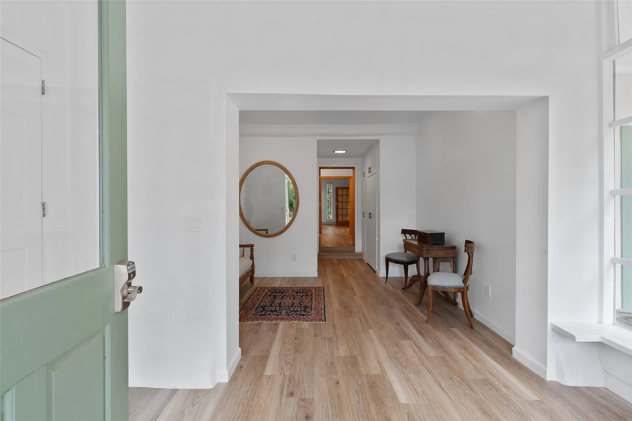 Calling all artists. Need more space? How about 3 possible art studios? Car collection storage, a dance studio, your YouTube performance space, and your art studio? Only 1 mile to the Tesuque market and 4 miles to the plaza downtown. You will enjoy an extraordinary 6,161 sq ft house, guesthouse and a heated, high ceilinged, studio lit attached garage that has been used by previous owners as a workshop/art studio. The well insulated buildings are nestled on two lovely tree covered acres with an acequia, near the Tesuque creek and several large spaces that are highly adaptable for multiple uses. The vast downstairs living room has been used as a private art gallery and could also be a dance/yoga studio or other creative space. Another large glass-enclosed, light filled art studio wraps around the second floor. The charming adobe guest house with vigas, has new windows and the new roof is dated March 2024. There are multiple fruit trees, a private well, an advanced septic system and a new photovoltaic solar system that is owned and conveys with the property. Currently the property is configured as a 1-bedroom guest house and a 1-bedroom main house with 2 fully fenced yards, multiple studios and 3,500 sq ft of new flooring, but with its numerous living spaces the layout could easily be reconfigured to have more bedrooms. The enormous sq ft of heated space gives you amazing flexibility with remodeling possibilities.