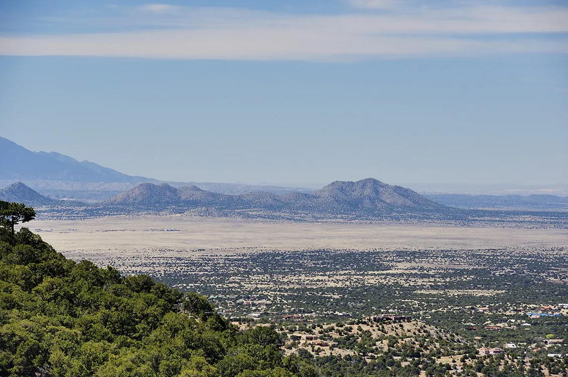 The land high in the Sangre de Cristo foothills, located just off the Old Santa Fe Trail, yet it is only 12 minutes from the Plaza in the center of Santa Fe.