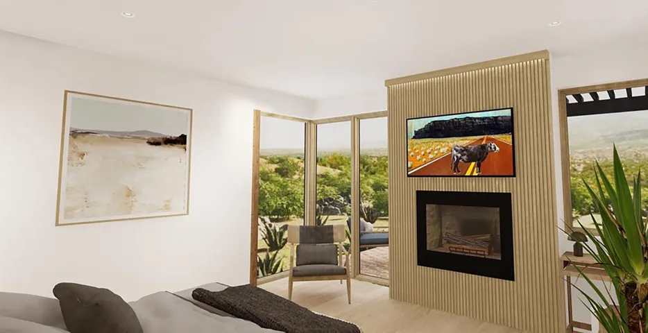 Exciting opportunity to own the only home in the Enclave with one level living and the bonus of a 1,600 square foot unfinished lower level that could be designed as a media room, gym, office space, or guest rooms. The Enclave at Monte Sereno features views of the Sangre de Cristo Mountains and the Badlands in a true lock and leave gated setting. The main living areas offer unparalleled Sangre de Cristo views with 3 panel sliding glass doors adjacent to the outdoor dining portal. The floor plan then opens to a gourmet kitchen – featuring a Wolf/Subzero appliance package, custom-cabinets, and a large island/casual counter design which affords multiple dining and living options with mountain views as the backdrop. The private Owner’s Suite shares the views through the large East-facing portal and features a corner kiva fireplace. True plaster walls throughout the entire home, oak hardwood floors, tiled bathrooms, and high ceilings with square cut beams all accent the contemporary finishes. The floor plans are customizable with expansion and upgrade options. Choose your colors, floors, appliances, lighting and sit back and relax and let our builders bring your dream home to life. Images portrayed in this listing are virtual images, and seller makes no representations that all elements in these images represent what is being sold.