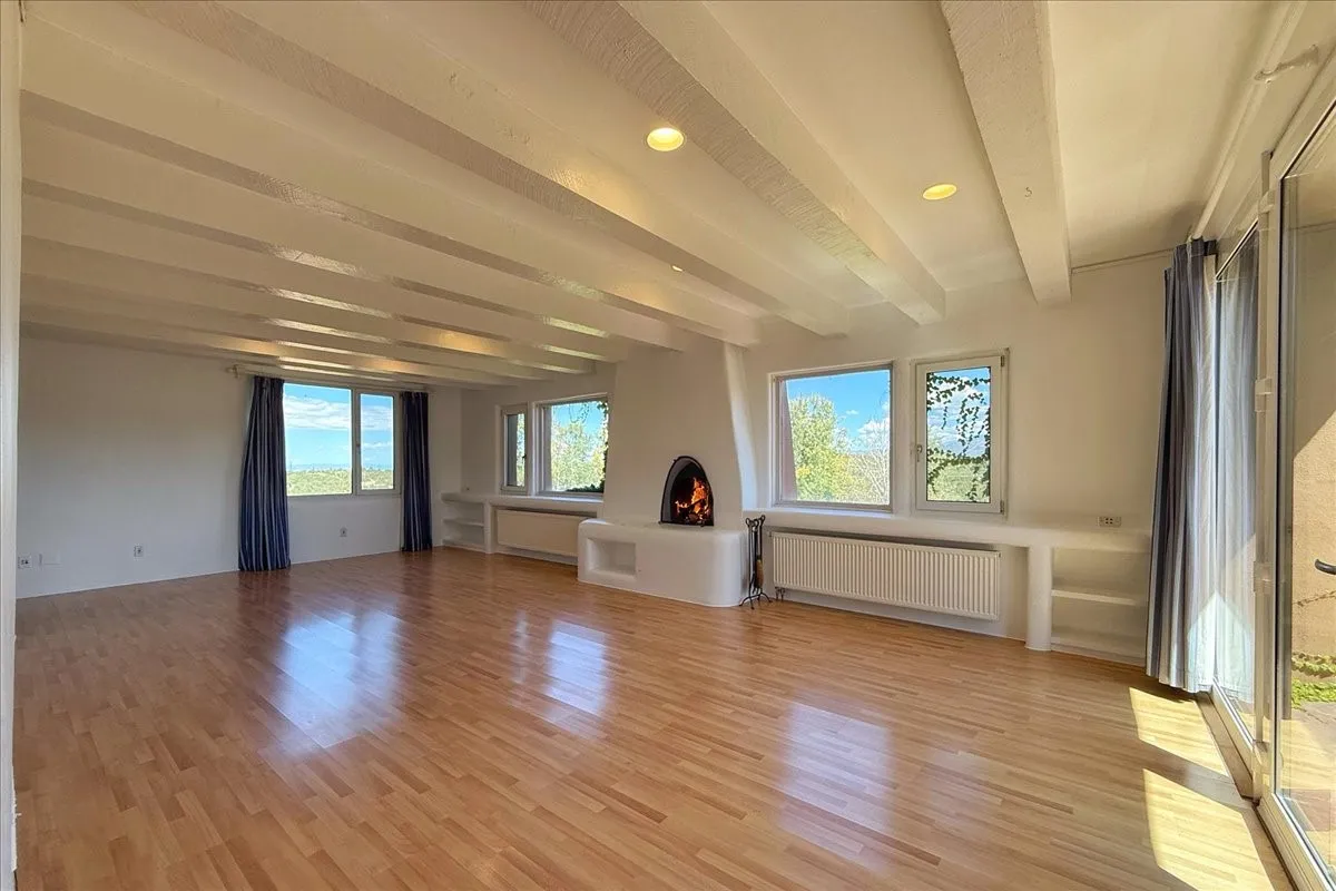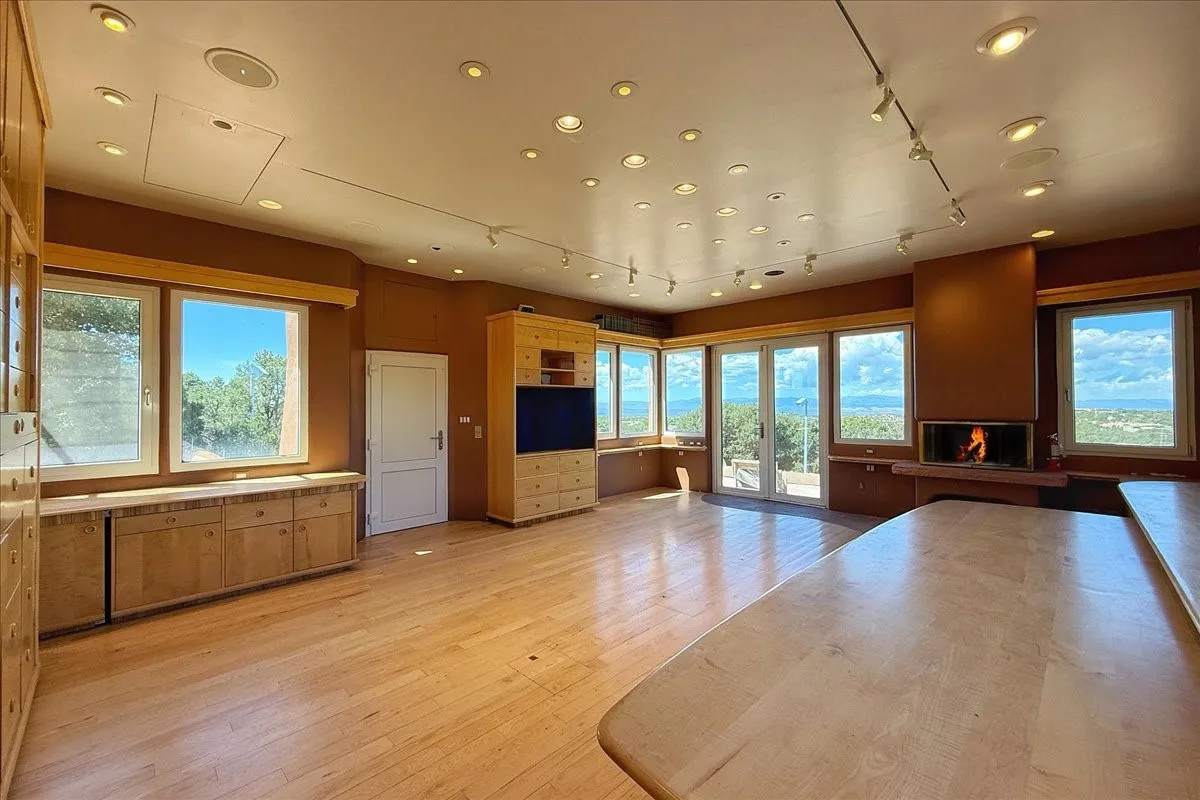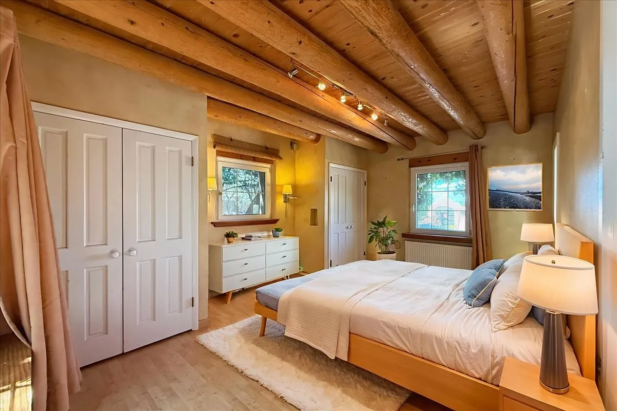 Welcome to Sleeping Beauty, a truly exceptional estate tucked away on 11.9 acres of serene, wooded land in Santa Fe. This enchanting adobe property features a 4-bedroom main house and a charming 2-bedroom guest house, offering the ultimate private sanctuary. The ownerās retreat is located upstairs, where youāll enjoy breathtaking views of the lush green lawn, bordered by graceful aspen trees, a tranquil pond, and the majestic Sangre de Cristo Mountains beyond. Off the bedroom, youāll find a beautifully appointed bathroom and a spacious office/studio with wonderful natural light and expansive views to the north and south. The main level offers an inviting, social kitchen opening onto the portal with a cozy fireplace, an elegant living room with large picture windows offer exceptional views, an office, a den, and a guest wing with three bedroomsāperfect for family and friends. A short walk away, the charming guest casita provides additional space for visitors or quiet reflection. This property is brimming with potential and will inspire you at every turn. With love and vision, Sleeping Beauty is ready to be awakened. The offering adjoins two of tracts of land – 23 acre lot offered at $2,300,000 and a 5.2 acre lot offered at $600,000. There is a video link attached to this listing.