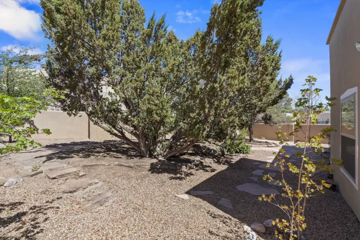 The heart of the home is its thoughtfully designed kitchen, equipped with updated features, instant hot water, ample cabinetry, and a generous pantry. The adjoining breakfast area showcases a beautiful built-in sideboard and China cupboard, with a door that opens to a large flagstone patio, perfect for outdoor entertaining in your private, landscaped, enclosed backyard with its new drip irrigation system for easy maintenance.