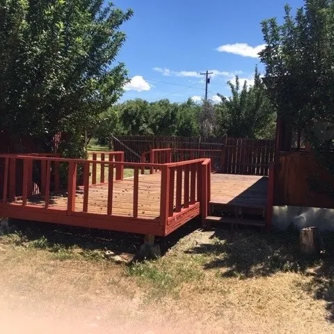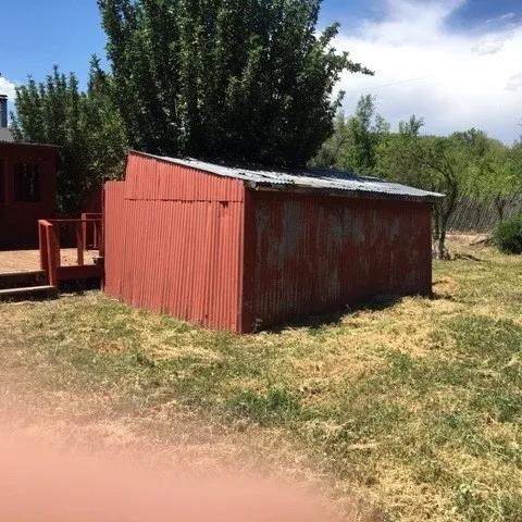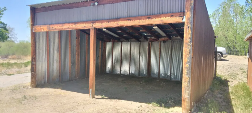 screened porches and deck=1120 sq ‘. The property is fenced with orchard, pasture/garden area and shed with attached workshop.There are 3 additional smaller storage sheds, one metal,one adobe,(once the pumphouse)and one woodframe attached to guesthouse. The 2-stall carport/workshop is centrally located. Rio Grande is 300’ away for fishing and birding.
