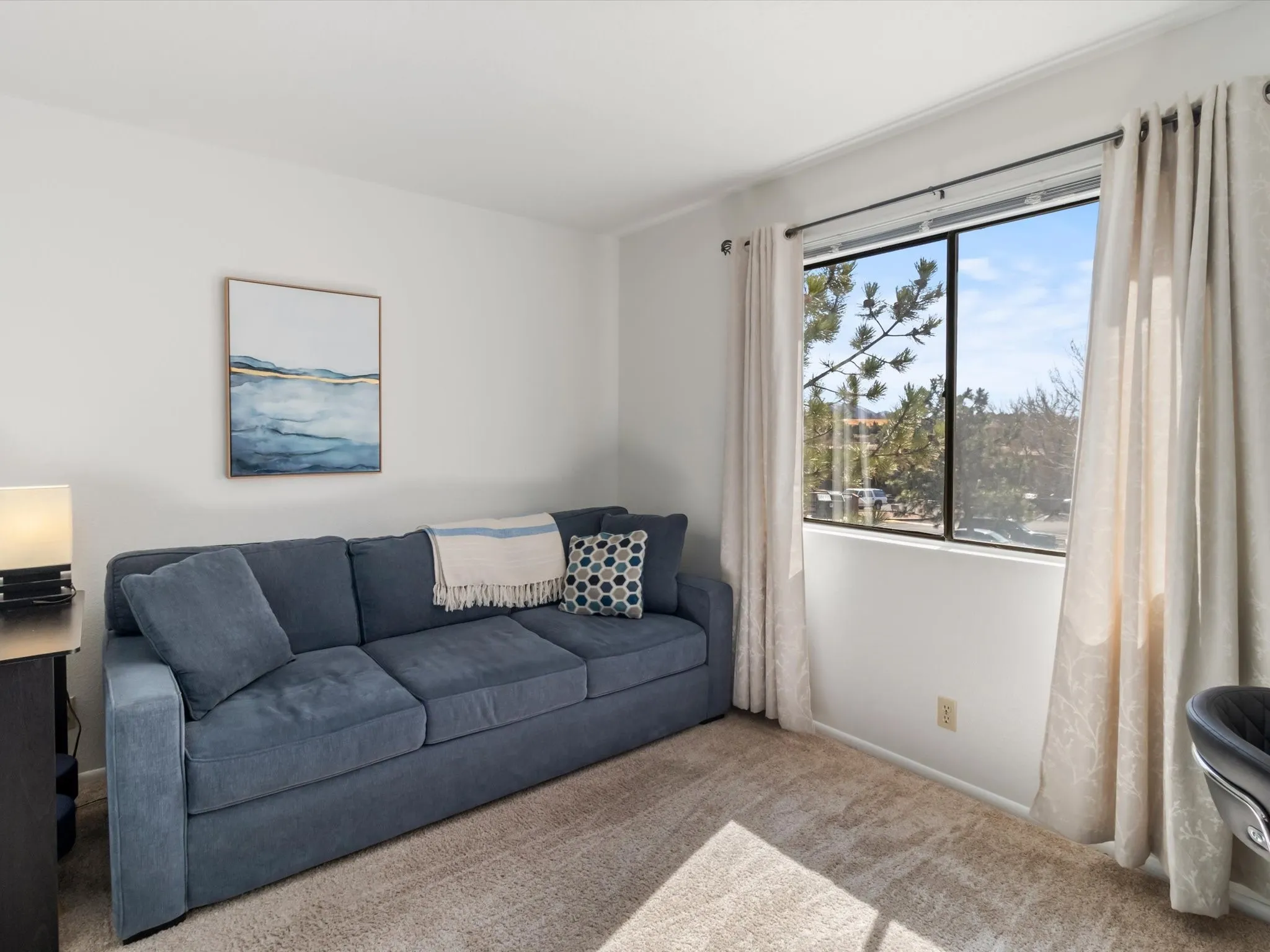 Discover the perfect blend of comfort and convenience in this desirable 2-bedroom, 2-bathroom condo at The Reserve at Santa Fe. Ideally located just minutes from the Historic Plaza, this South-facing unit offers a sunny, bright, private, and quiet second-level living space with Easterly Mountain Views. Step inside to find a thoughtfully designed interior featuring a tiled entryway, kitchen, and baths, complemented by carpeting throughout. The kitchen and bathrooms have tile countertops, maple cabinetry, and stainless-steel appliances. Additional highlights include a private balcony with an extra storage room. Enjoy a low-maintenance lifestyle with HOA-covered roof, stucco, and landscaping, allowing you to fully embrace Santa Fe as your primary or second home. As a resident of The Reserve, you will have access to amenities, including a year-round heated pool, hot tub, first-class fitness center, laundry facilities, and scenic nature trailsāall within a beautifully maintained 16-acre gated community. The property also offers ample parking for cars and bicycles and is pet-friendly for small pets up to 25 lbs. Conveniently located just 3 minutes from shopping at DeVargas Mall and 5 minutes from the downtown Santa Fe Plaza, this condo offers an unbeatable location for those seeking a peaceful yet well-connected retreat. Please note that rentals under 30 days are not permitted, and The Reserve is a non-smoking community. Donāt miss this incredible opportunity to own a move-in-ready home in one of Santa Feās most sought-after communities! For more details, visit: www.reserveatsantafe.org