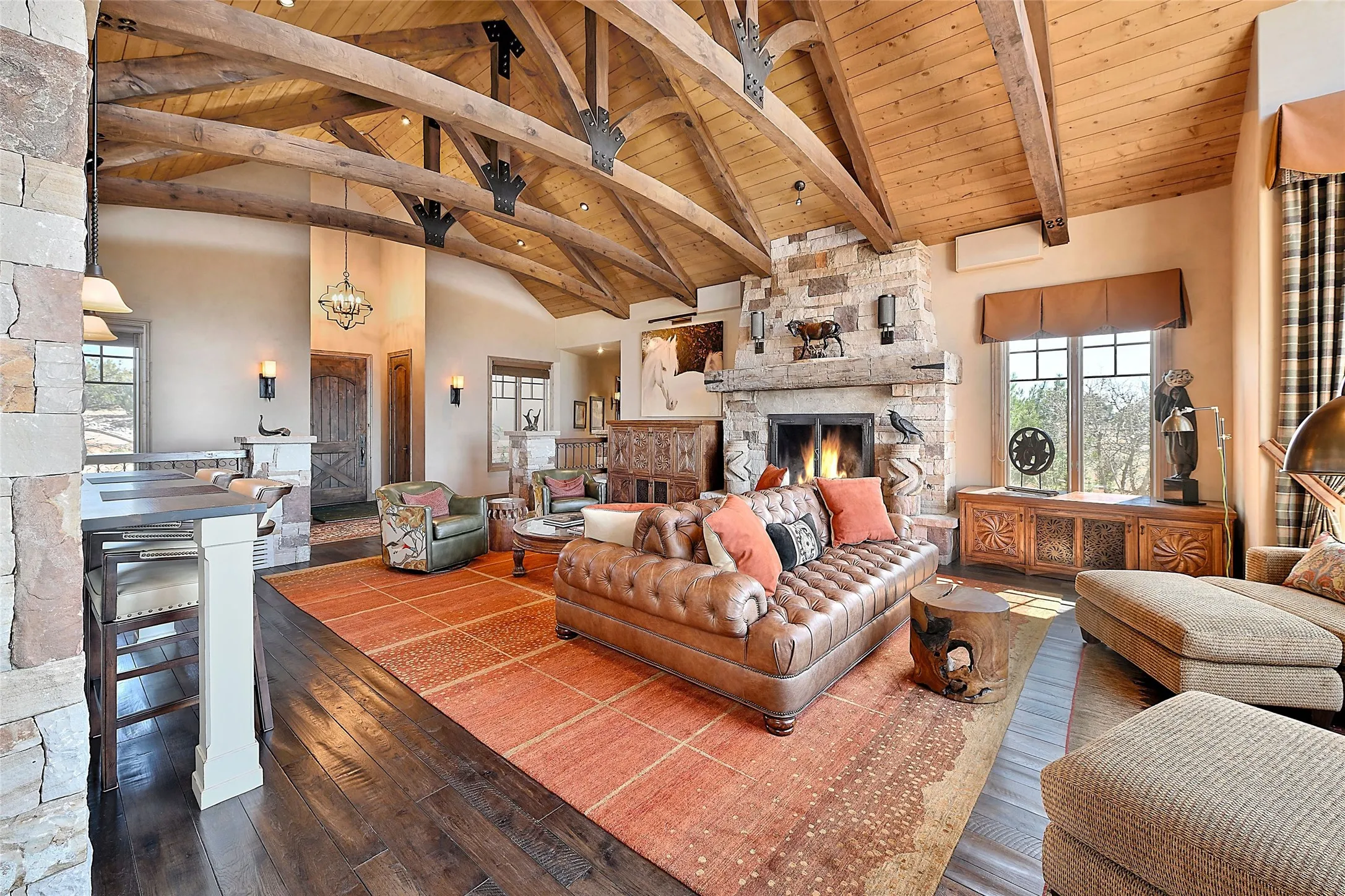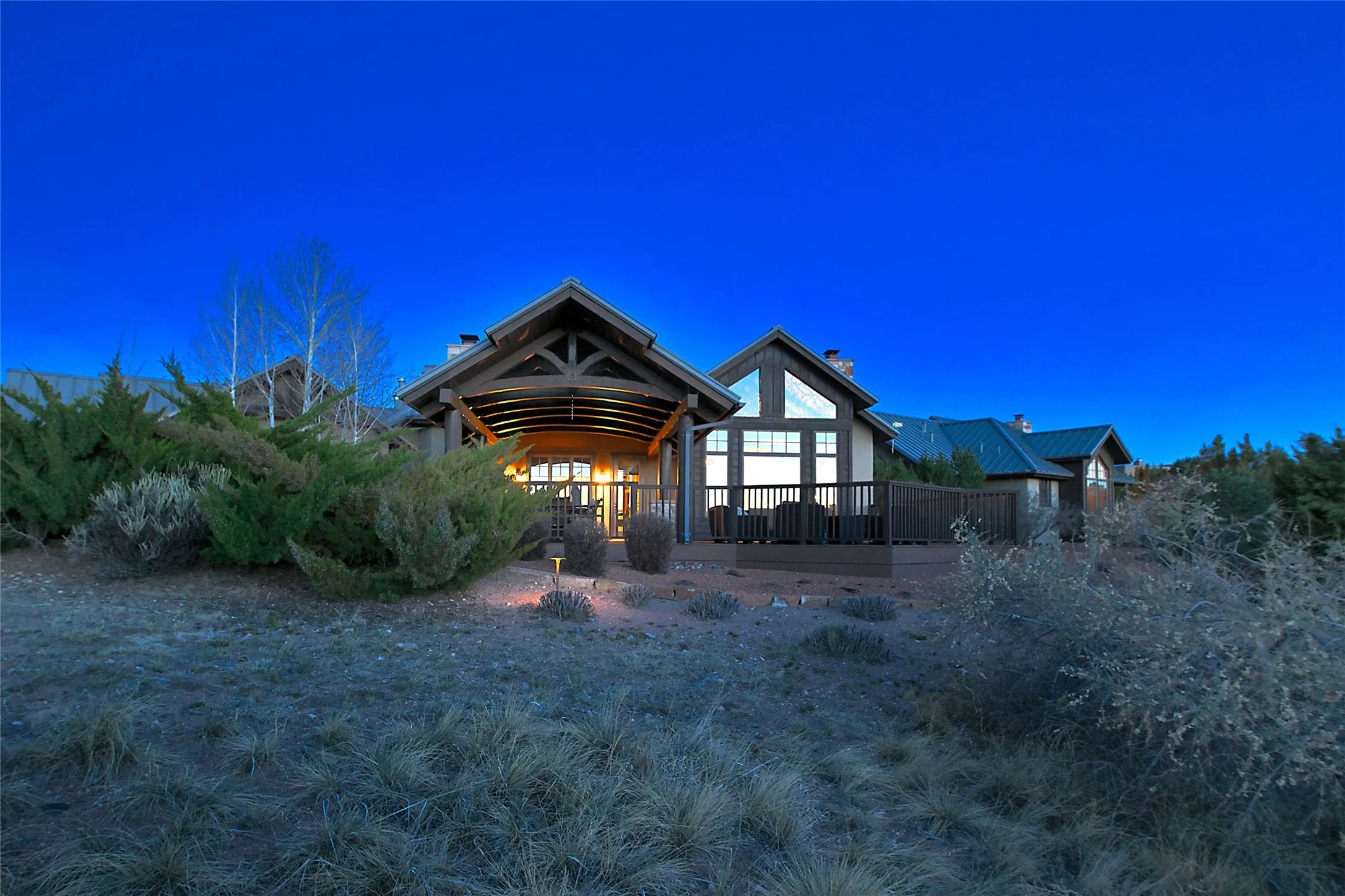 Imagine yourself in this extraordinary 4,080 sq. ft. Northern New Mexico style home by award winning Roger Hunter Builders, nestled in the prestigious gated Estancia enclave of Las Campanas. Perfectly positioned on a premier homesite, this residence captures sweeping views of the Jemez Mountains and overlooks 69,000 acres of undisturbed BLM land for ultimate serenity and privacy. Inside, grand interior trusses and expansive wood floors frame a spacious great room, seamlessly connected to a gourmet kitchen and adjacent butlerās pantryāideal for entertaining. The vast, covered Portal offers generous dining and lounging spaces with panoramic views. The private primary suite features a cozy sitting area with a rock-faced fireplace, his and hers vanities and walk-in closets, and dual officesāeach spacious enough for a desk, lounge chair, and ottoman. A separate guest wing offers two guest bedrooms with en-suite baths and walk-in closets. One suite is used as a state-of-the-art media room. A convenient workstation with custom-built cabinetry offers additional office space that could be used by guests or an additional office. thoughtfully designed home blends traditional Santa Fe style with modern luxuryāwood, stucco, and rock exteriors, mature landscaping, and an oversized 3-car garage with ample storage. A rare opportunity to own a one-of-a-kind property in Santa Feās most sought-after community.