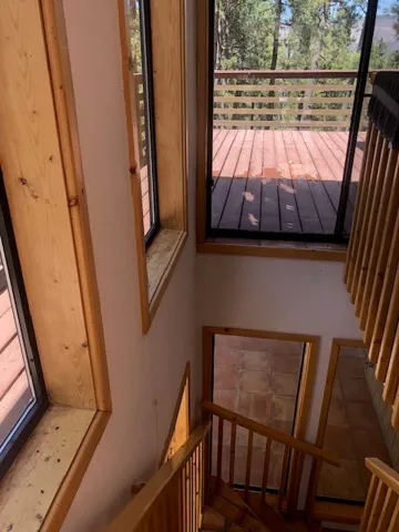 Spectacular country mountain retreat in Pendaries Village. The home is two stories with decks on three sides. Upstairs is ground level in the front, and includes 2 bedrooms and one full bath. Downstairs opens at ground level in the back of the house and has 3 bedrooms and 2.5 baths. Back deck has a hot tub which looks through tall Ponderosa. Original 2-car garage is detached from house but from the downstairs through covered porch. It has a concrete floor, 2 murphy beds, and half bath. A newer 2-car garage is a little downhill from the house, and has two large garage doors, and a small one which would accommodate UTVs and motorcycles. All this on 5.179 forested acres. There is a 4.62 kilowatt solar system and a 22 kilowatt Generac generator, which backs up the whole house and has an automatic transfer switch. Live in it full time and use it for a family retreat.