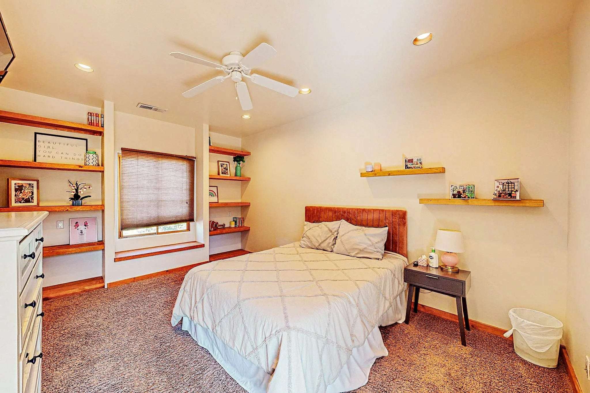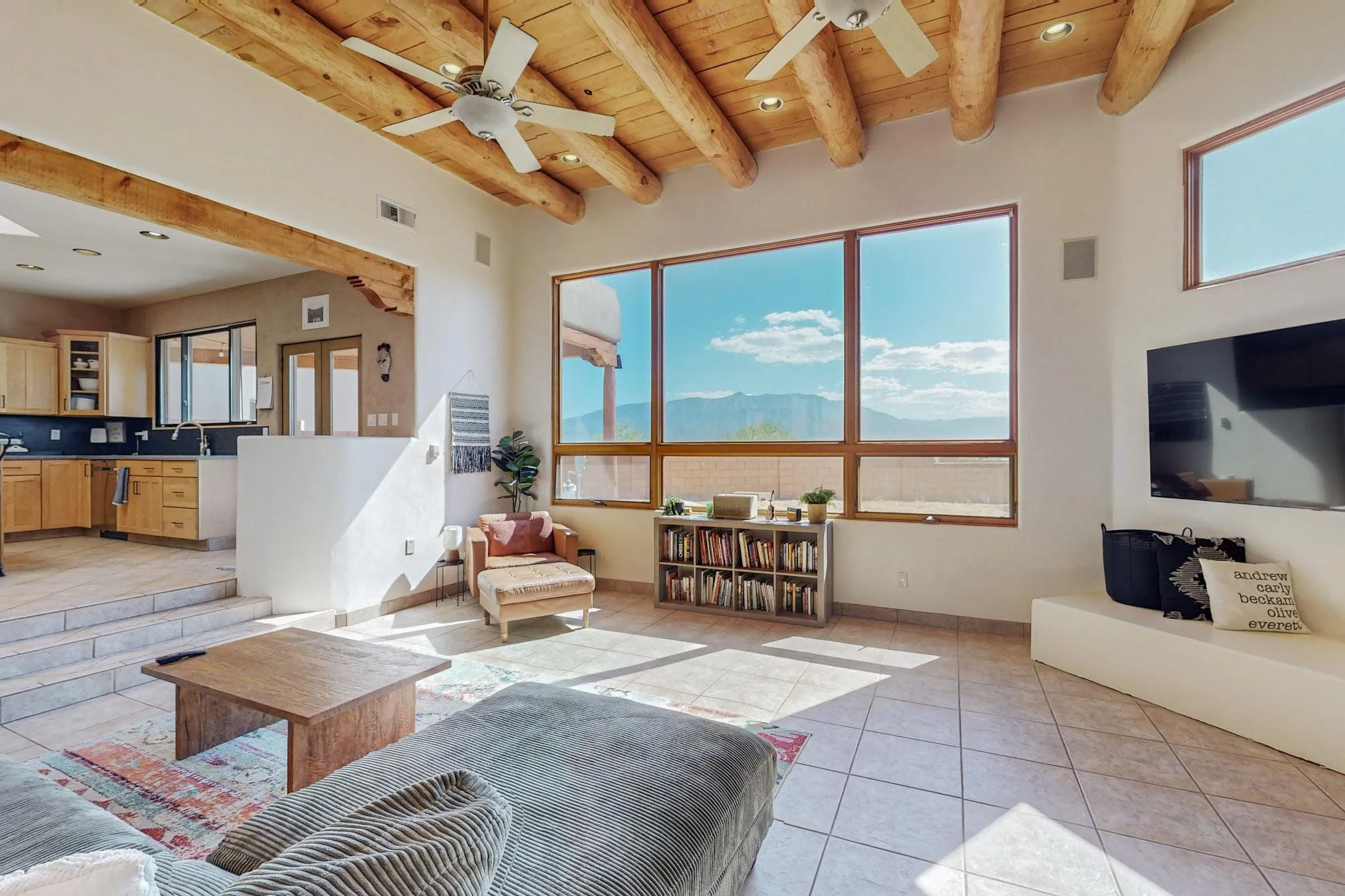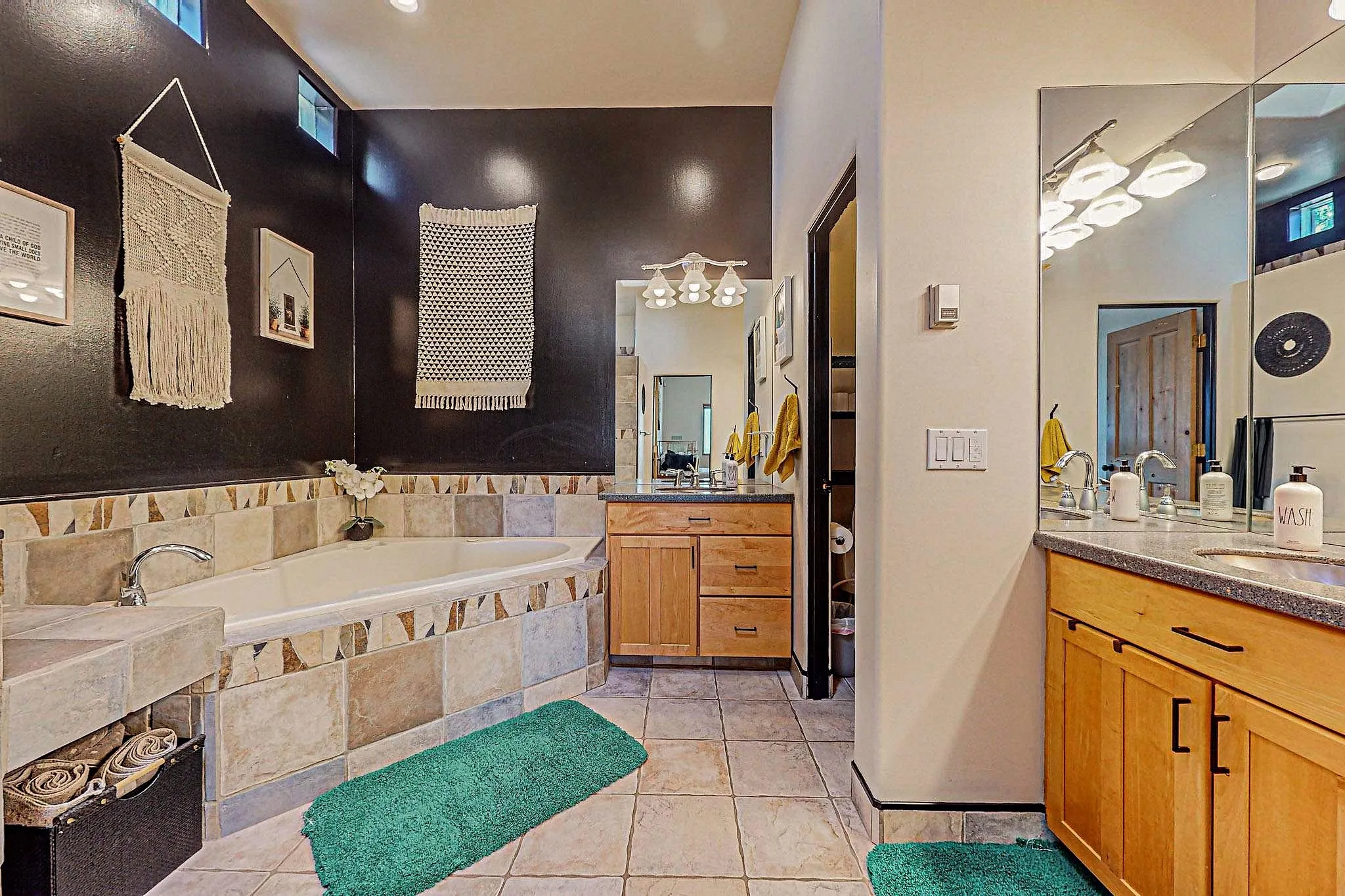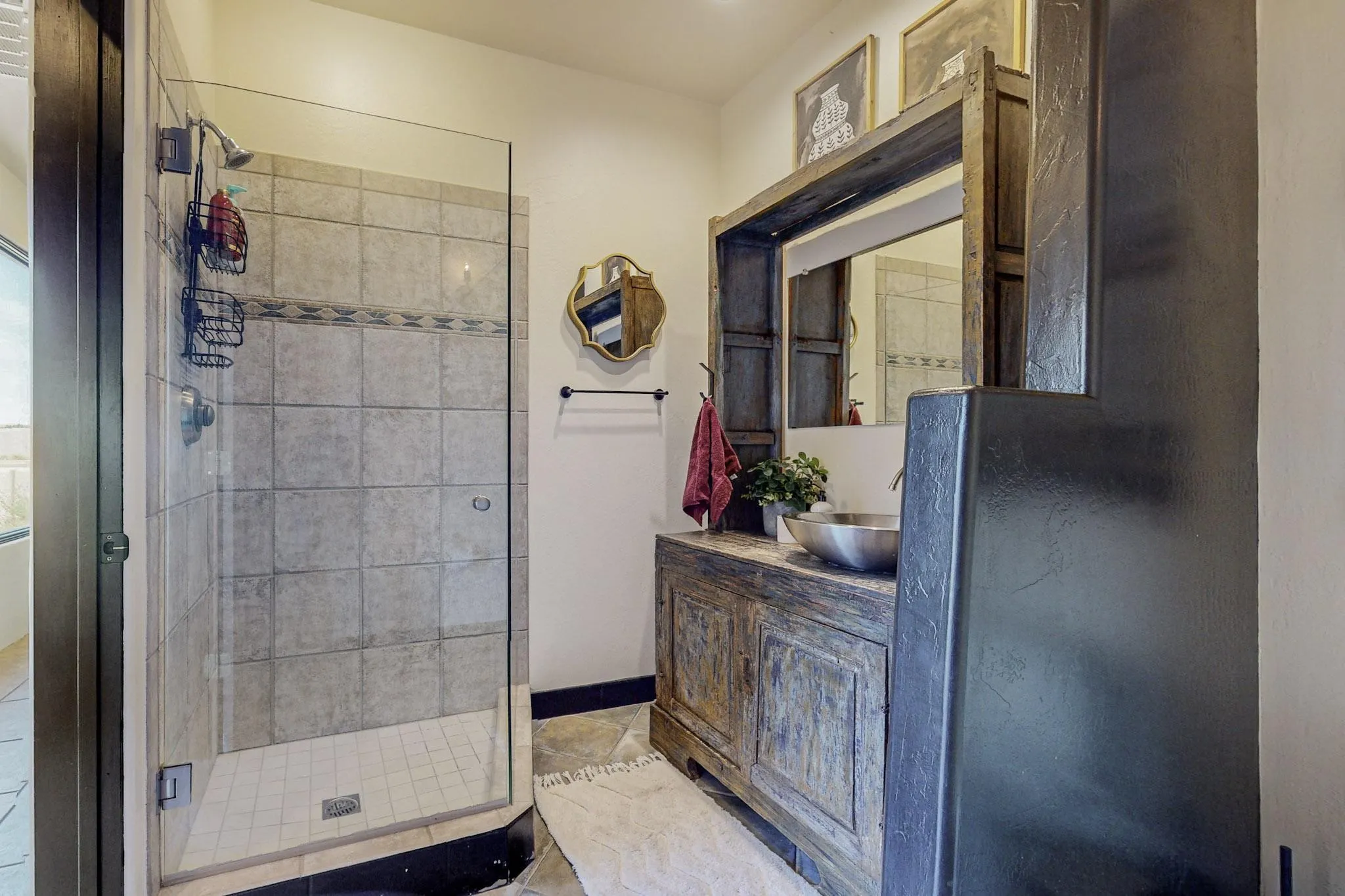 SW Luxury Living Where Style, Sustainability & Adventure Meet: Priced below appraised value – Ask your Broker for more info. Step into this one-of-a-kind architectural masterpiece designed w/open floorplan that brings the breathtaking SW views into every corner of your home. Whether you’re relaxing at the hearth of the kiva or cooking up something tasty in the kitchen, every angle connects you to something extraordinary. Surrounded by portals with beautiful tongue & groove ceilings, you’ll discover multiple gathering spots ideal for morning coffee or evening cocktails. At the center of the home lies a private 600+ sqft courtyard, an oasis perfect for anything from stargazing to sunbathing. Retreat to your luxurious master featuring a spa-style ensuite with soaking tub, separate shower, double vanity, & a massive walk-in closet designed to fit your active lifestyle.
