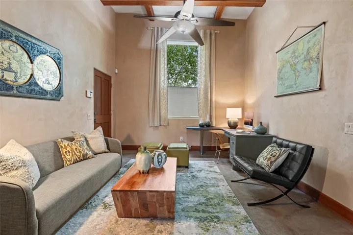 A rare find in the heart of Santa Feās Eastside, this architect-designed property blends commercial versatility with residential charm. Zoned RAC (Residential Arts and Crafts), the home allows for office use, a live/work configuration, or an exceptional income-producing rentalāperfect for a 3-bedroom Airbnb, a stylish 2-bedroom home with office, or your dream creative studio. Inside, you’ll find soaring 12-foot ceilings, expansive windows that bathe the space in natural light, American Clay plaster finishes, polished granite countertops, and radiant in-floor concrete floors with mini split A/C systems. The flexible layout has functioned as an architectās studio, a short-term and long-term rental, and a personal residence.