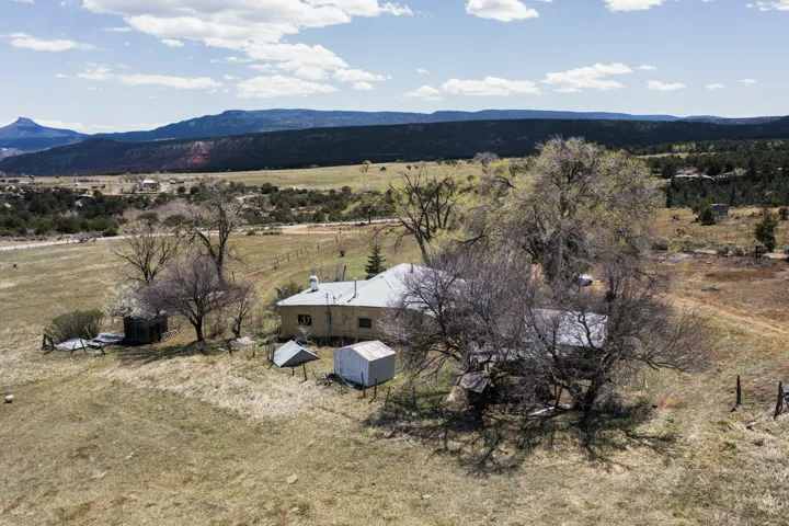 This charming, mostly adobe home on approximately 1.65 acres offers breathtaking views from La Mesa de Poleo. Gaze upon the Abiquiu Reservoir to the northeast, the iconic Cerro Pedernal, the Jemez Mountains to the east, and Mesa Alta. The picturesque Santa Teresa Church, a quintessential Northern New Mexico landmark, is just a short walk away. From this idyllic location, easy access awaits to the Rio Puerco campground, the San Pedro Wilderness, and numerous other forest campgrounds. As night falls, witness the twinkling lights of the Coyote community and a sky ablaze with stars. This home is a blank canvas for a creative mind. It features a wood-fired cooking stove (optional for use) and an electric stove. The surrounding grassy property is perfect for leisurely picnics under the trees. The property also includes a one-bay carport attached to the house, a small cabin-like structure, and a partially underground cellar ideal for canning. Embrace sustainable living with included irrigation water rights for an organic garden and an assortment of fruit trees. There’s ample space for a few farm animals, complemented by a corral and an additional two-car carport situated on a small hill beside the west boundary. Country living beckonsāreturn to basics and savor life’s simple pleasures: crisp, fresh air, stunning sunrises and sunsets, unobstructed night skies, a fertile plot for a garden and farm animals, and unparalleled views. OWNER CARRY POSSIBLE.