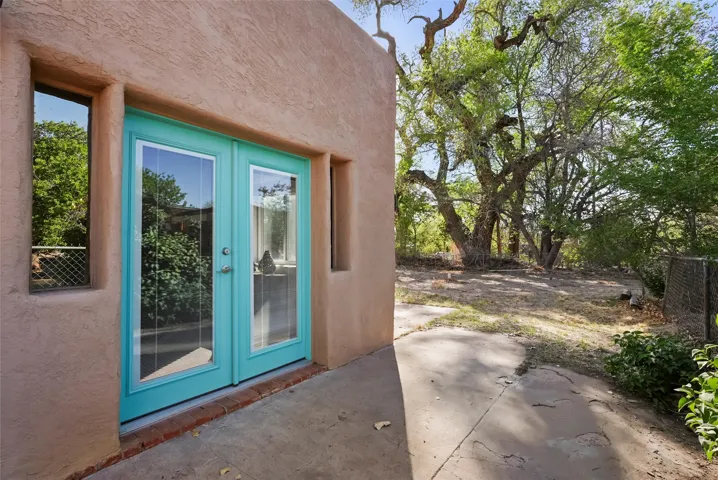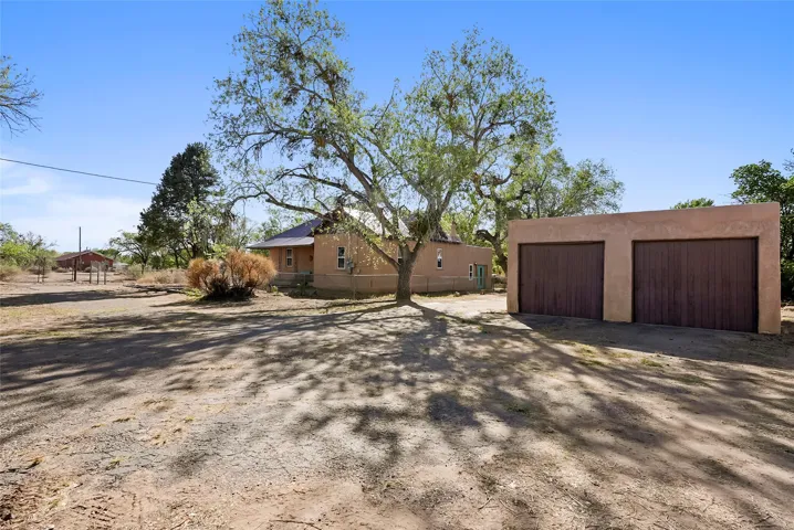 Out Where the Sidewalk Ends – On the Northern edge of Albuquerque’s North Valley, and Nestled on a Spacious 1.5-Acre Corner Lot, this Charming Vintage Northern New Mexico style Adobe Home Captures Stunning Sandia Mountain Views and holds Endless Potential. With it’s Rare Blend of Rustic Charm and Natural Beauty, a Detached 2 Car Garage, Detached Workshop and Studio/Guest Room, Upgraded Electric, Newer Well, 2023 Septic, and Fenced and Room for Horses, Chickens, Growing, and/or adding a Guest House, this is where You Can Bring your Peaceful Retreat to Life, just Minutes from the City.