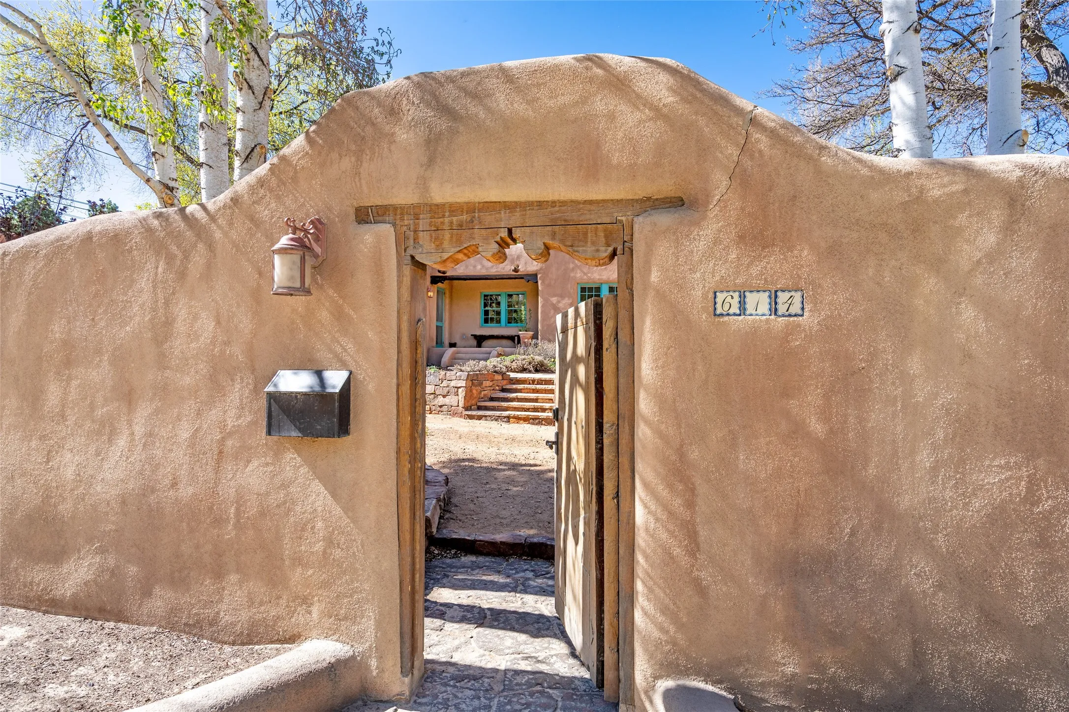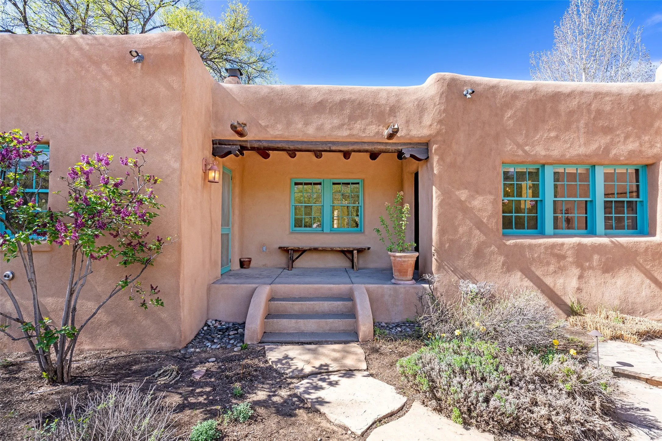 Tucked discreetly behind gates on the quiet, unpaved stretch of East Alameda, this exceptional property offers a rare chance to own one of Santa Feās Historic Eastside compounds. Centered around a private, lushly landscaped courtyard, the residence includes a classic 3-bedroom main house and a charming casita. The main home is steeped in rich historyāits 1929 addition is believe to be the first commission awarded to renowned architect John Gaw Meem. Authentic New Mexican details abound, from hand-hewn vigas to rich wood floors, adobe walls and hand-poured glass windows that speak to the homeās timeless character. The chef’s kitchen anchors the main house, featuring granite countertops, Wolf and Subzero appliances, and luxurious touches such as a pot filler, wine cooler, wet bar, and generous workspace. There’s a small room off the front portal with its own kiva fireplace – an ideal office. The third bedroom has shelving, a sink and extra studio lighting. Added later the casita mirrors the charm of the main house with classic finishes blended seamlessly with modern comforts. Designed to function as a deluxe primary suite, it boasts two elegant bathrooms, a second bedroom that could be used as workout room. The primary bedroom has a kiva and doors opening to the courtyard. The central courtyard, ringed with mature aspens and vibrant flowering plants, offers an enchanting backdrop for al fresco dining or quiet moments of reflection. With a new roof in spring 2024 and mini splits this home is ready for its new owners to move in. It’s rare to find these oversized lots in the Historic Eastside, a one-car garage with extra storage and ample parkingāso close to the historic Plaza. Located just steps from the Santa Fe River Trail, Canyon Road galleries and restaurants; this walled compound offers an unparalleled blend of privacy and classic Santa Fe charm in one of the cityās most beloved neighborhoods.
