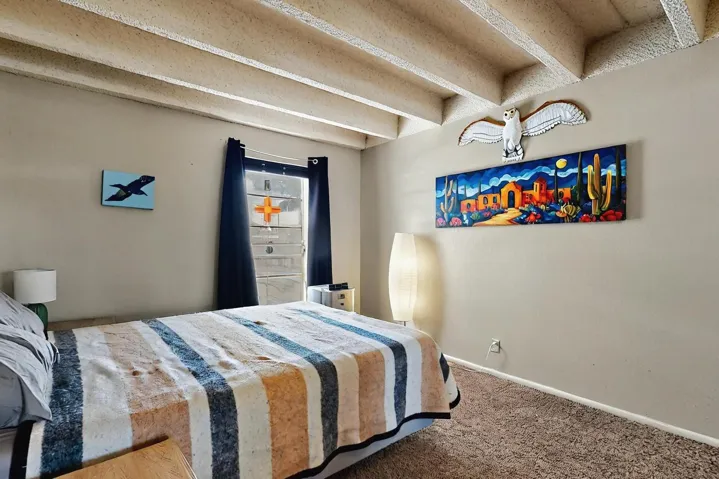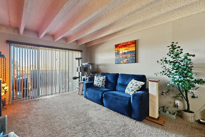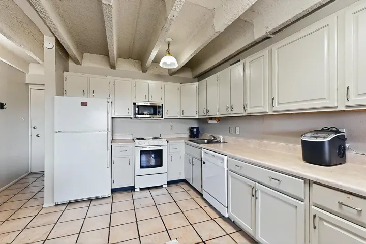 All utilities (except electric) covered by HOA! Explore the comfort and convenience of condo living at Moana Condominiums! This well-kept unit features two spacious bedrooms and an updated full bathroom with modern tile flooring and a stylish vanity. The large eat-in kitchen opens to the living room, making it great for everyday living or hosting guests. Step outside onto the private balcony to enjoy some fresh air. A washer and dryer are included for added ease. The gated community offers resident-only parking, and a central courtyard. Located just minutes from Kirtland Air Force Base, the airport, and downtown Albuquerque, this condo is perfectly positioned for work or play.