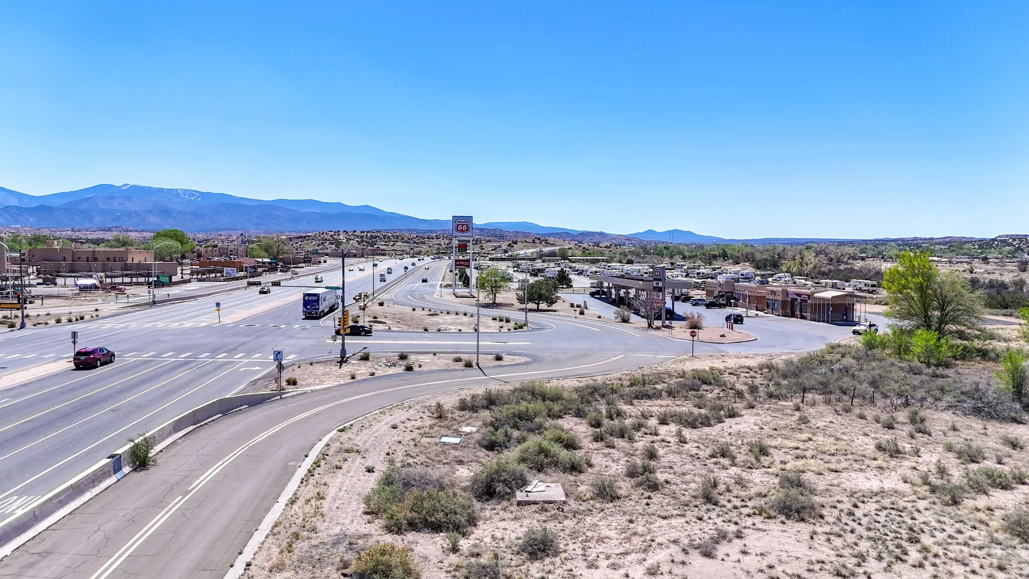 Here is a fantastic opportunity to own a rare piece of property with many commercial zoning uses allowed. This location and 1.12 acre parcel offers high visibility and great accessibility being just off of 84/285 right in the heart of Pojoaque’s business district. Electricity and natural gas to lot. Approximately a 15-20 minute drive to Los Alamos and Santa Fe. This land is surrounded by Pojoaque Tribal Lands. Come and make your development dreams come true on this rare location and offering today.