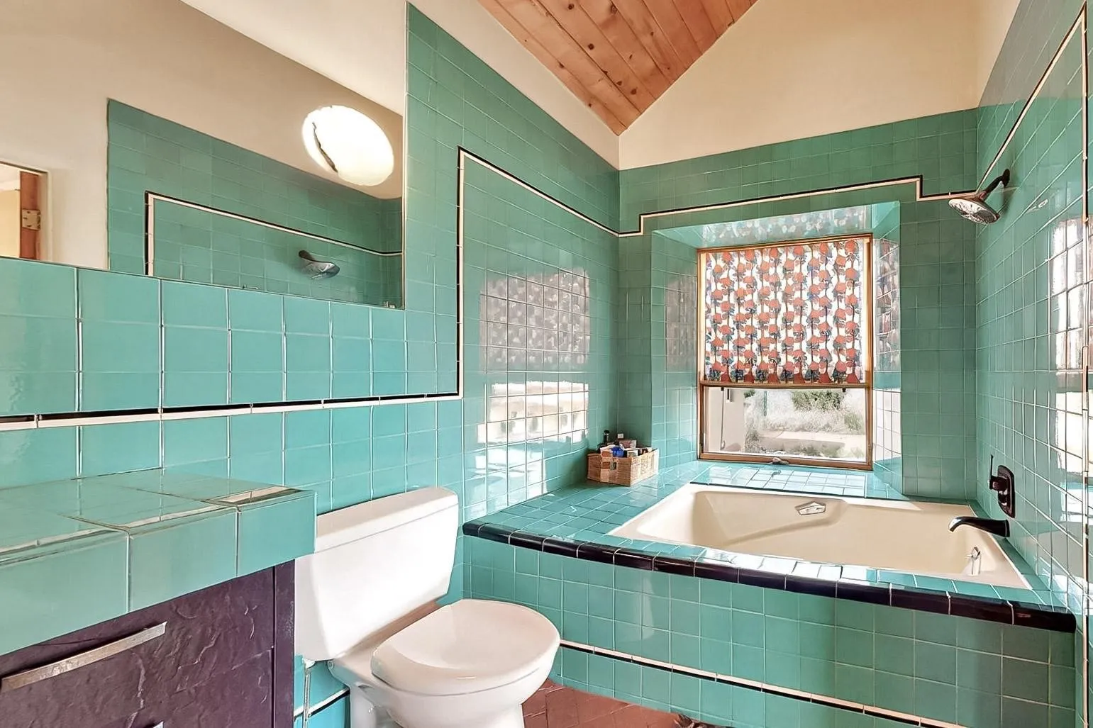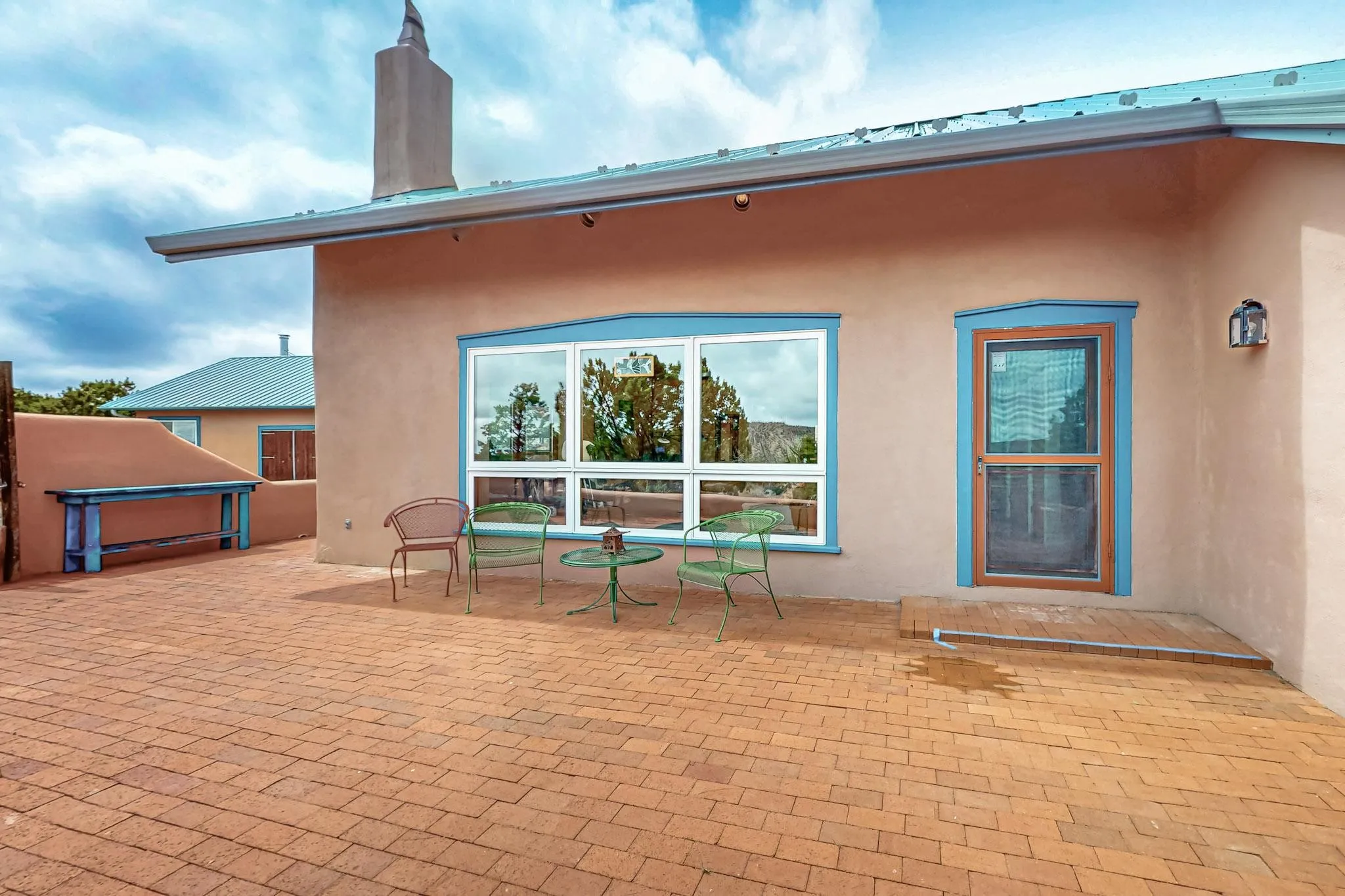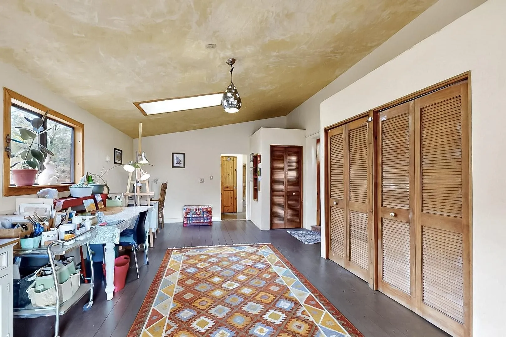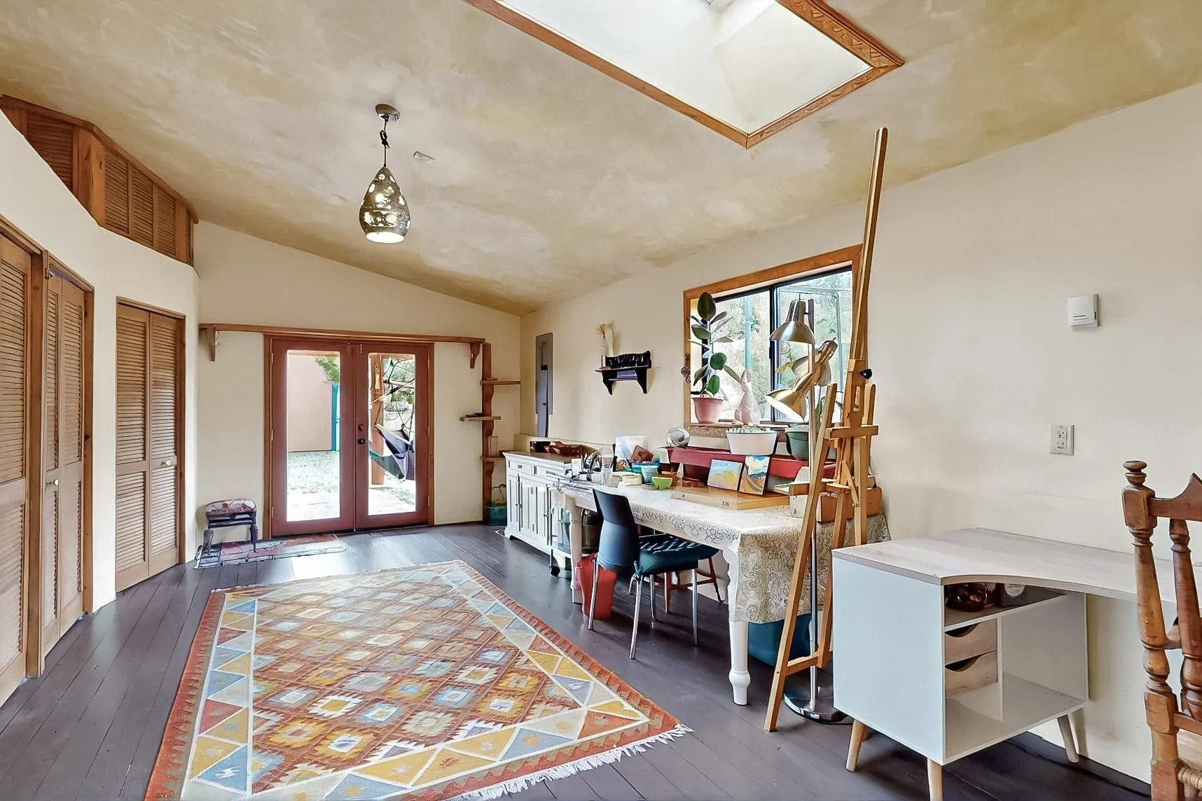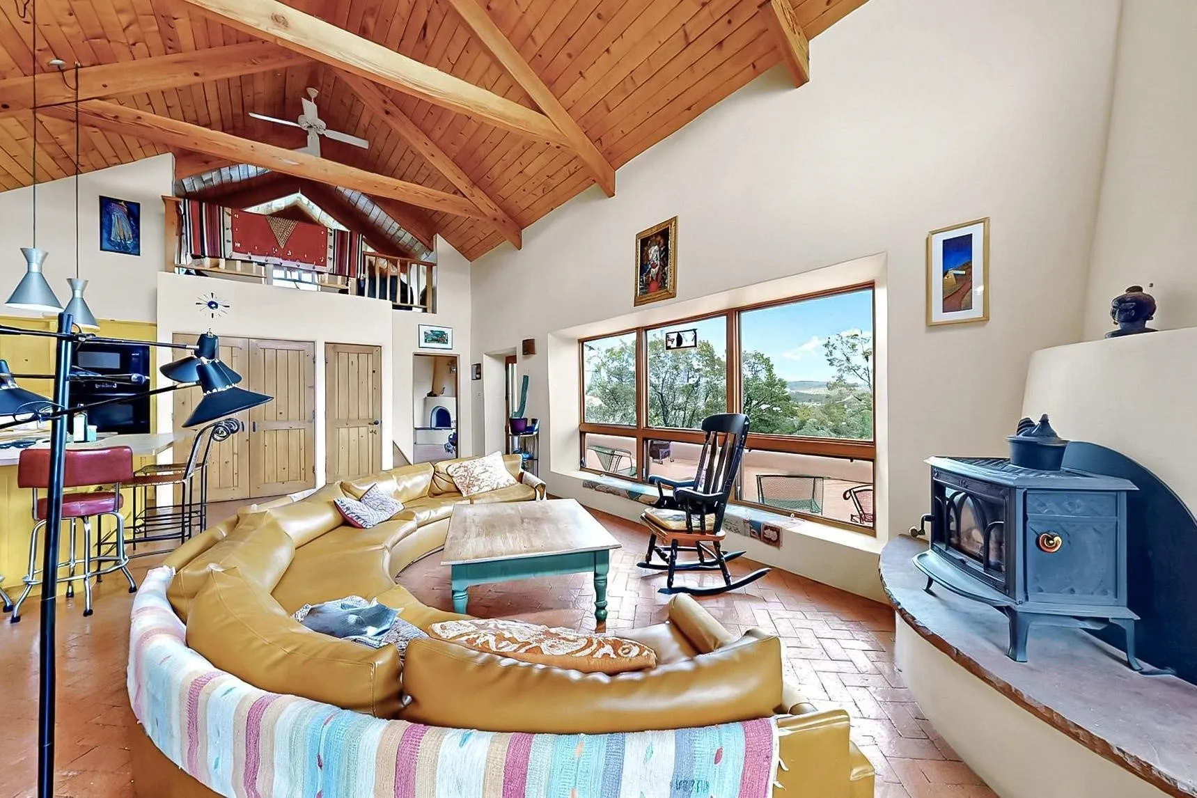 deck overlooks the Lamy Valley. The vaulted ceiling creates spaciousness in the great
