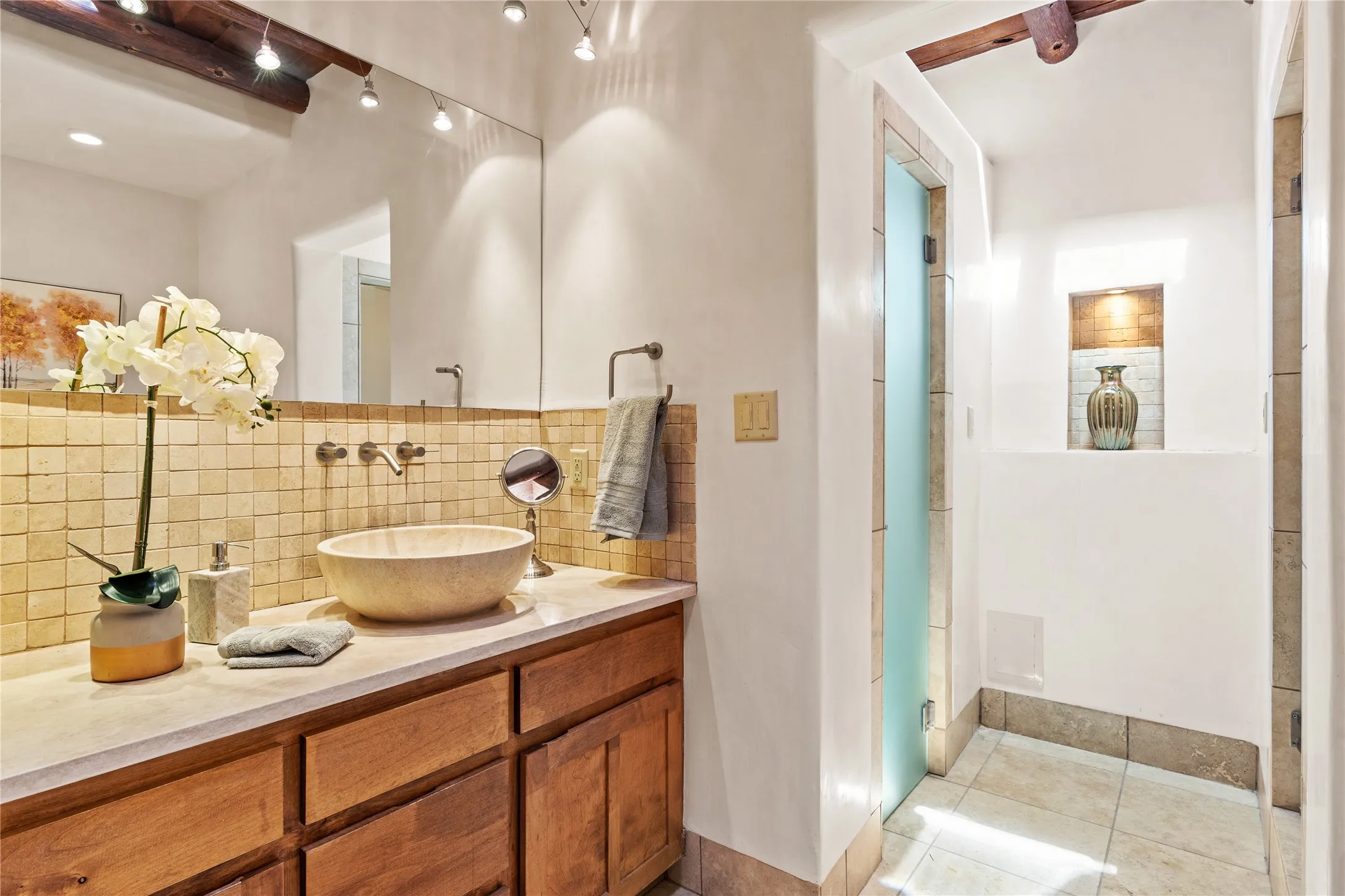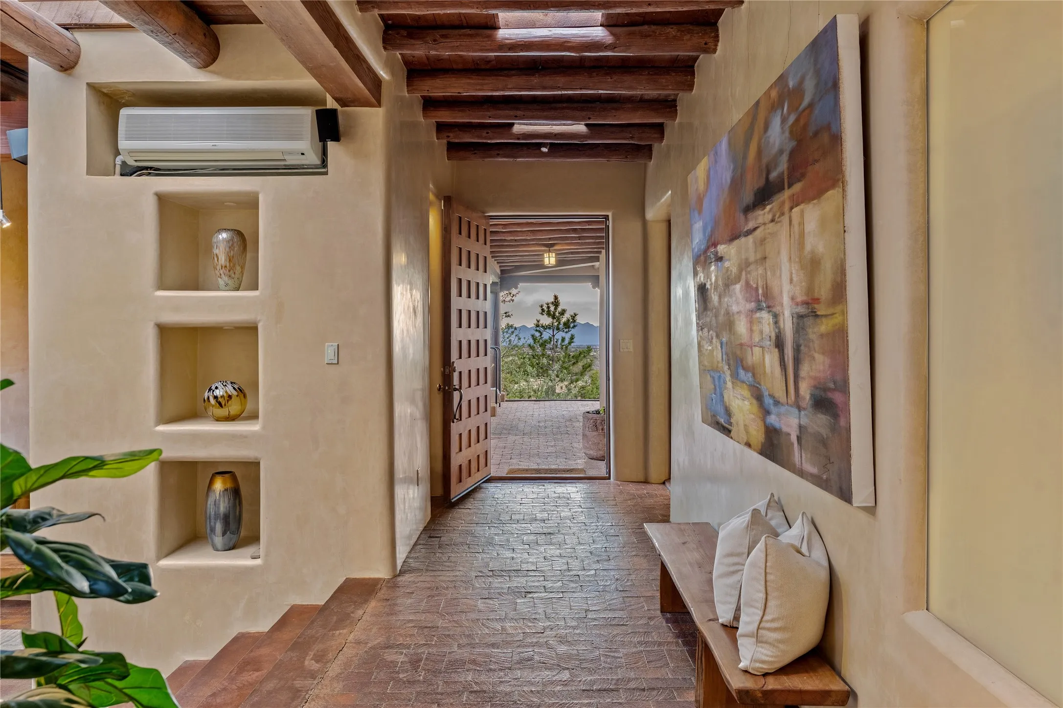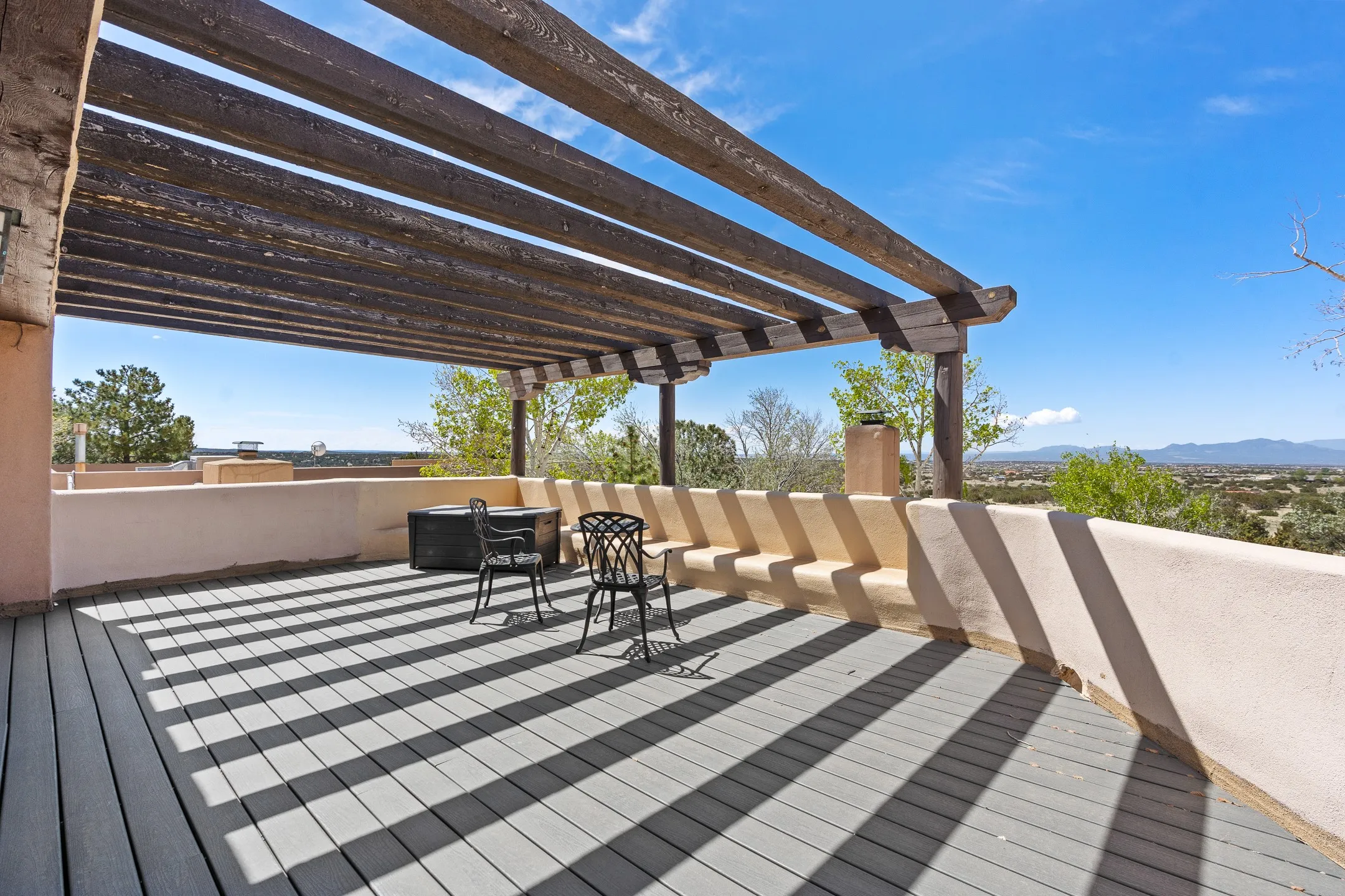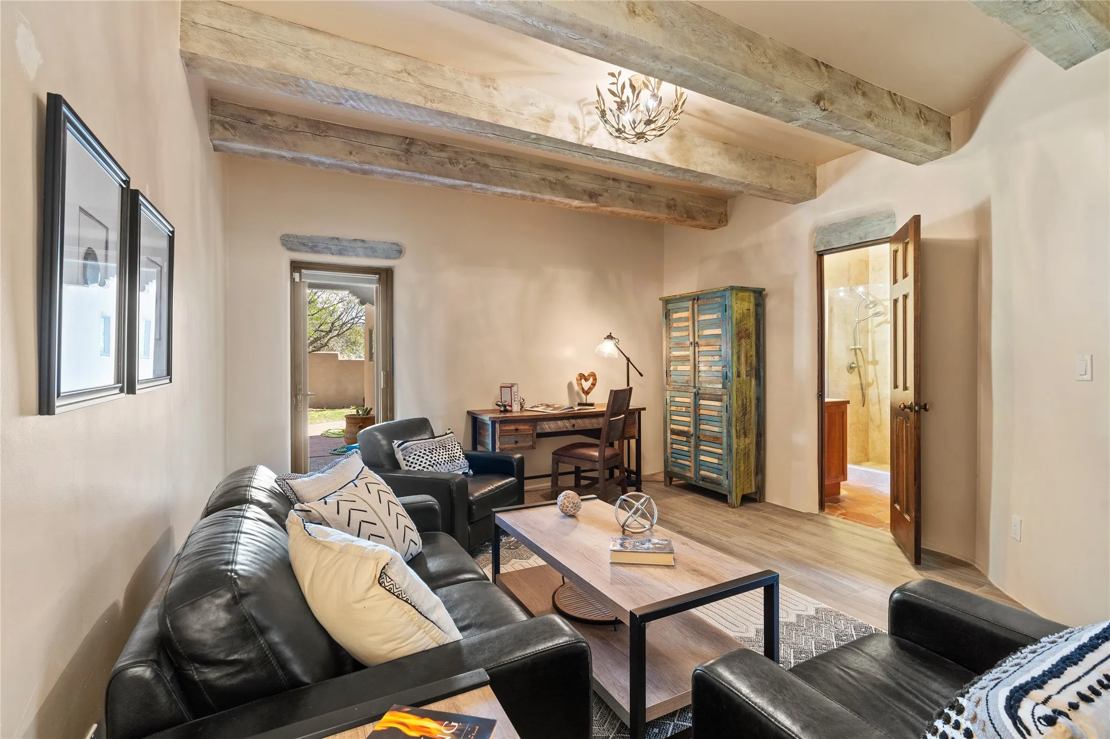 Situated on 11.07 acres, this unique property blends Santa Fe’s old-world charm with modern style, offering a 5,481 sq. ft. main house and a 3539 sq. ft. guest house/studio. There are 4 large bedrooms, 2 full bathrooms,