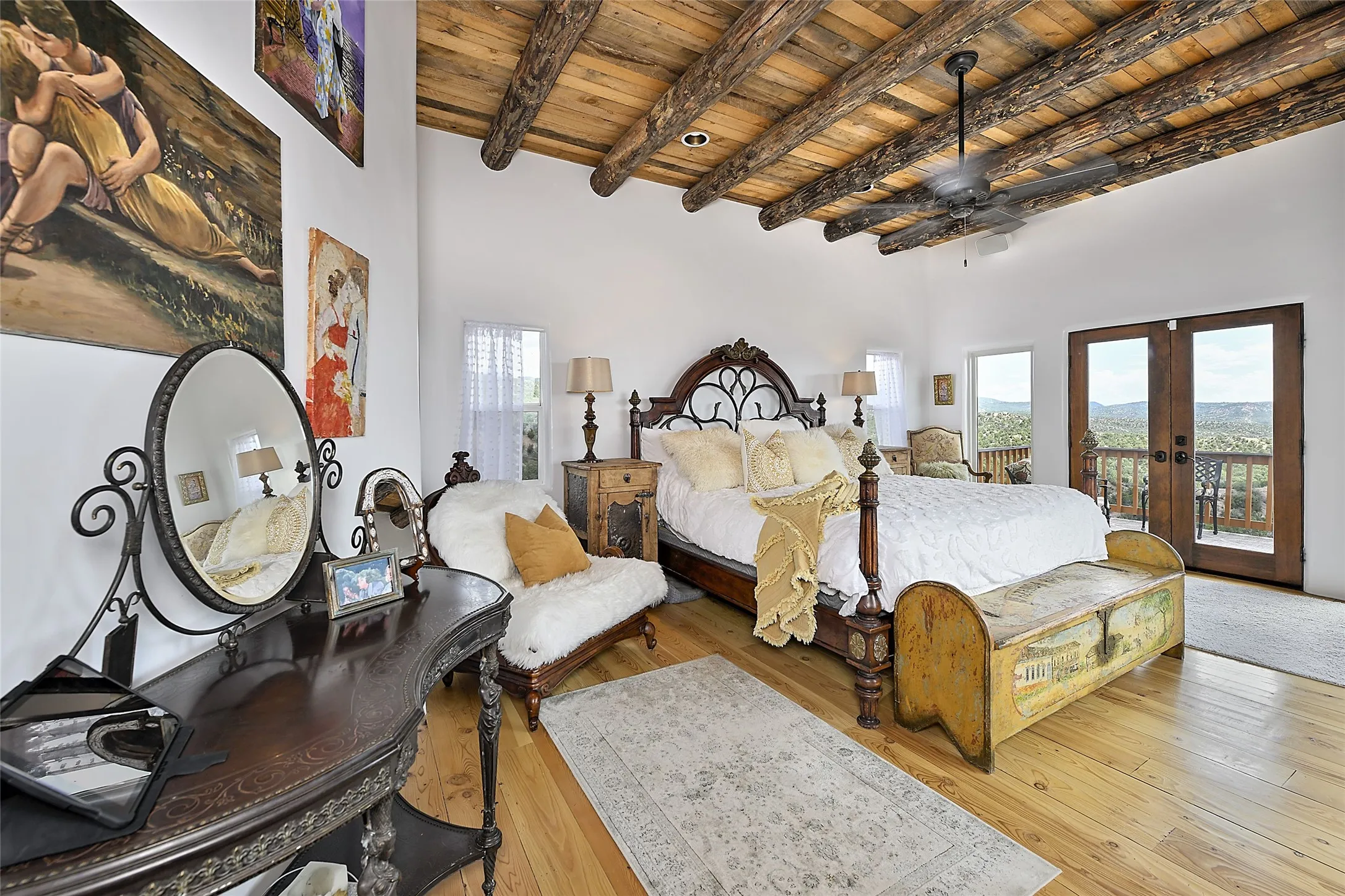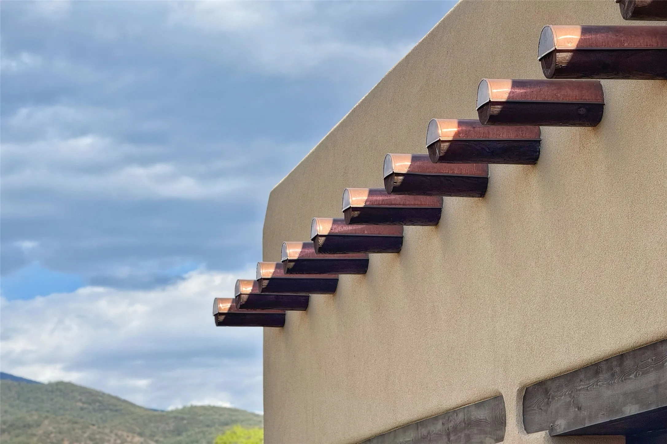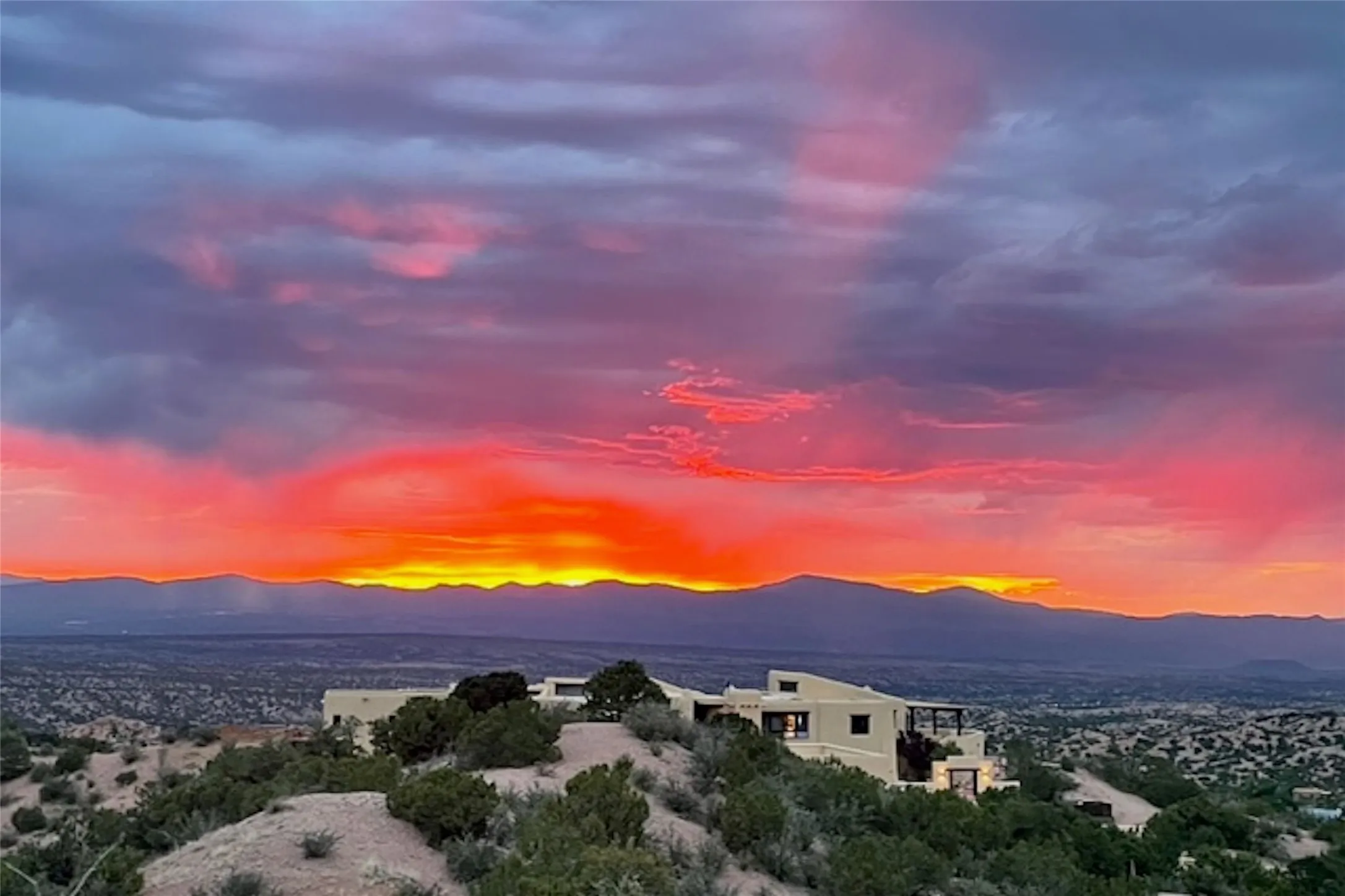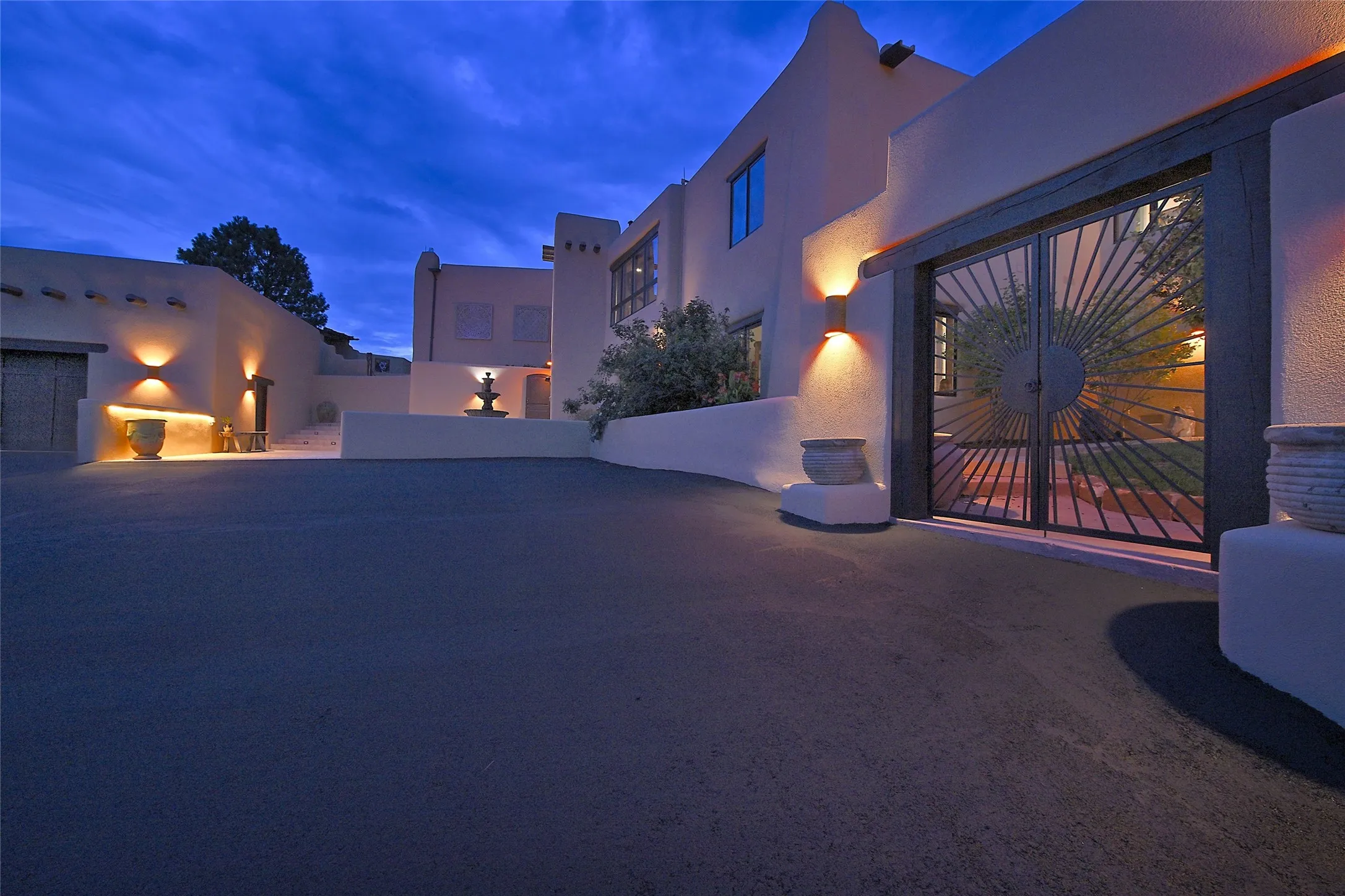 Welcome to this breathtaking 10-acre estate in the prestigious Tesuque community, where luxury meets unparalleled natural beauty. Quite possibly the best views in Tesuque, perched majestically on a private mountaintop, lovingly nicknamed āTop of Tesuque,ā offering 360-degree panoramic views that make you feel as though you’re sitting atop the world. Spanning approximately 6,614 sq ft, this 4-bedroom home is a masterpiece of design and function, featuring many new upgrades for a modern lifestyle. This fully restored and expanded adobe home seamlessly blends classic Santa Fe design with modern upgrades, preserving its timeless charm. This property has a new roof, lighting, stucco. Truly turn-key in every way. Inside, the floor plan seamlessly blends indoor and outdoor living, creating an ideal setting for both relaxation and entertaining, including 6 Kiva Fireplaces as well as 1 wood-burning stove. The brand-new kitchen features handcrafted solid wood cabinetry and top-of-the-line luxury appliances, perfect for any culinary enthusiast, while the adjacent dining and living areas boast spectacular views. The primary bedroom suite includes a separate sitting room, offering a private retreat within the home. Enjoy the convenience of a dedicated office space and den, a media room, as well as a game room complete with a wet bar, perfect for hosting guests. Step outside to the covered portal with outdoor kitchen & TV, complete with matching granite countertops, where you can entertain in style. The outdoor kitchen has all new (never been used) grill, pizza oven and smoker! Terraced gardens also feature a brand-new (never been used) Sauna and Hot Tub. A newly built garage has an observation deck on top. There are new entrance gates for privacy, a new driveway surface, and new additional parking areas ensure privacy and convenience. The addition of an electric lift from ground level to main level of residence also ensures accessibility and ease for loading and unloading. Mexican Porcelain tile terrace at the front entrance welcomes you. There is an enclosed dog park, as well as fully irrigated garden beds surrounding the house. The property is beautifully illuminated with 40 handmade copper light fixtures, adding a timeless touch to the outdoor spaces. With no HOA restrictions, this home offers the freedom and tranquility you’ve been searching for in the village of Tesuque.
