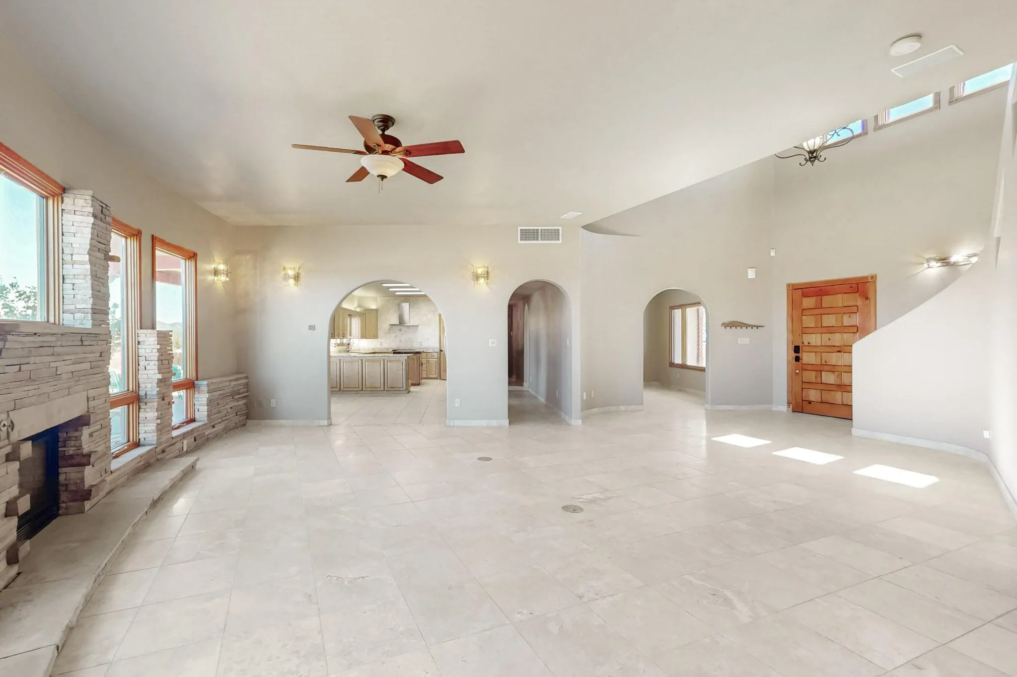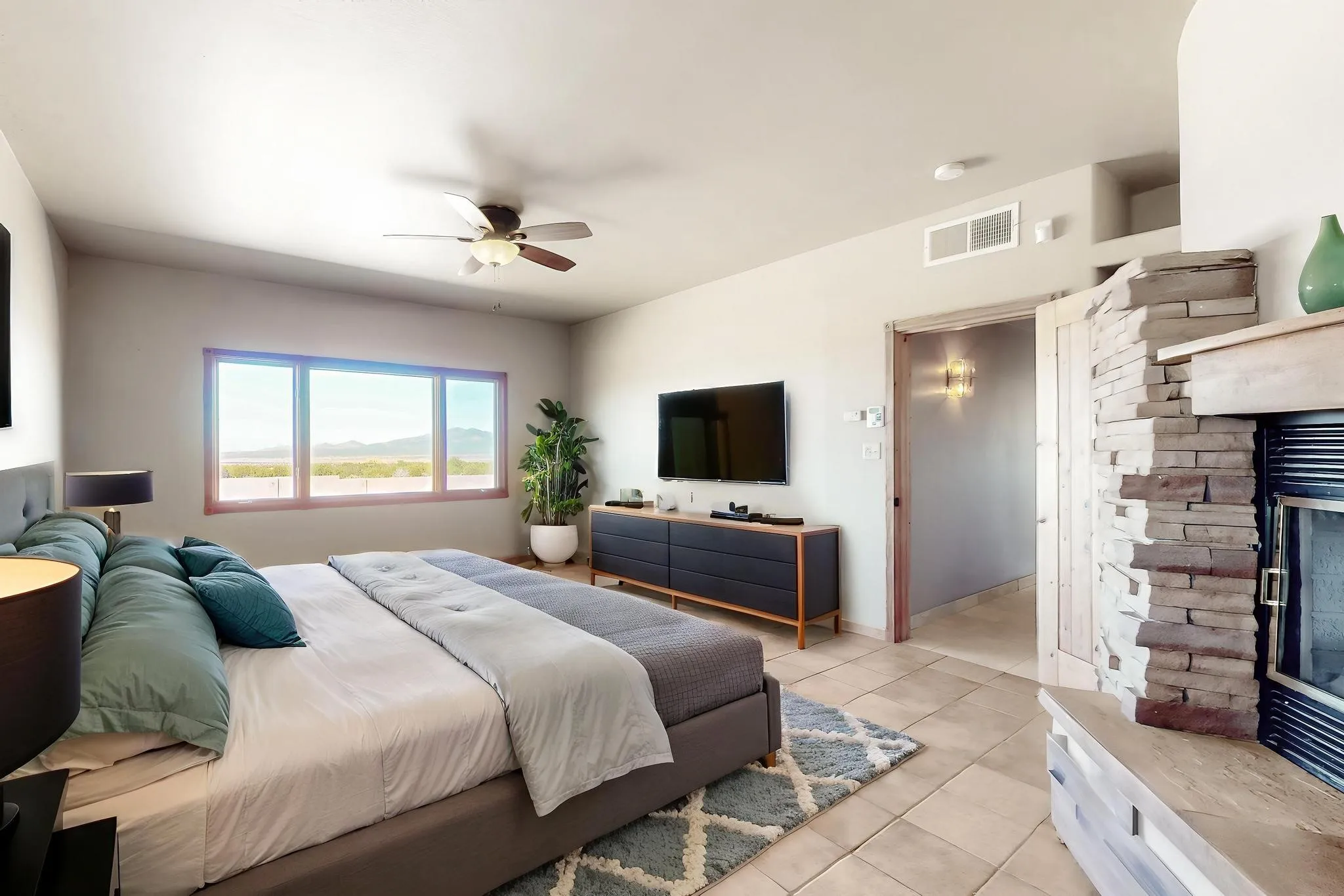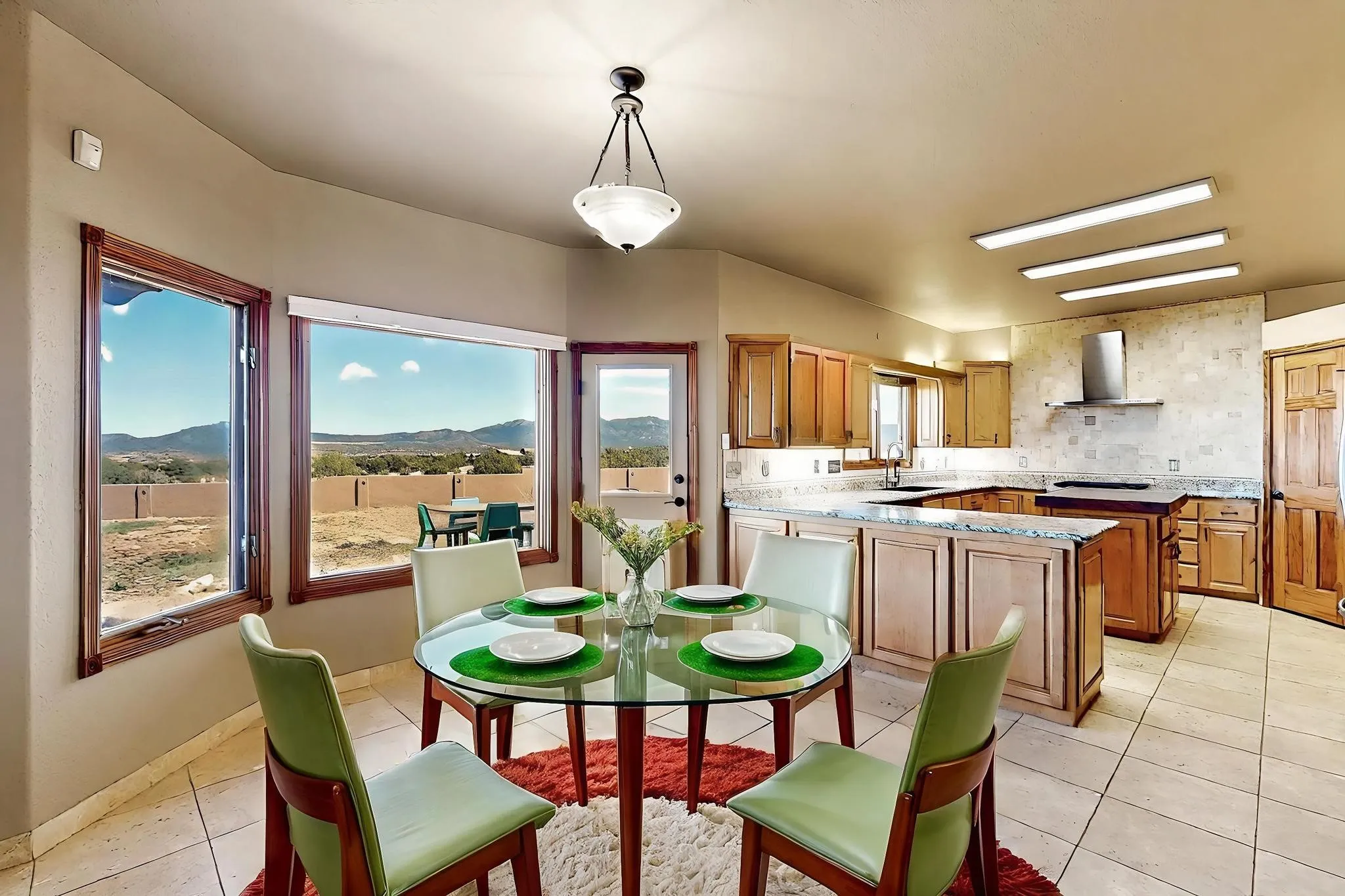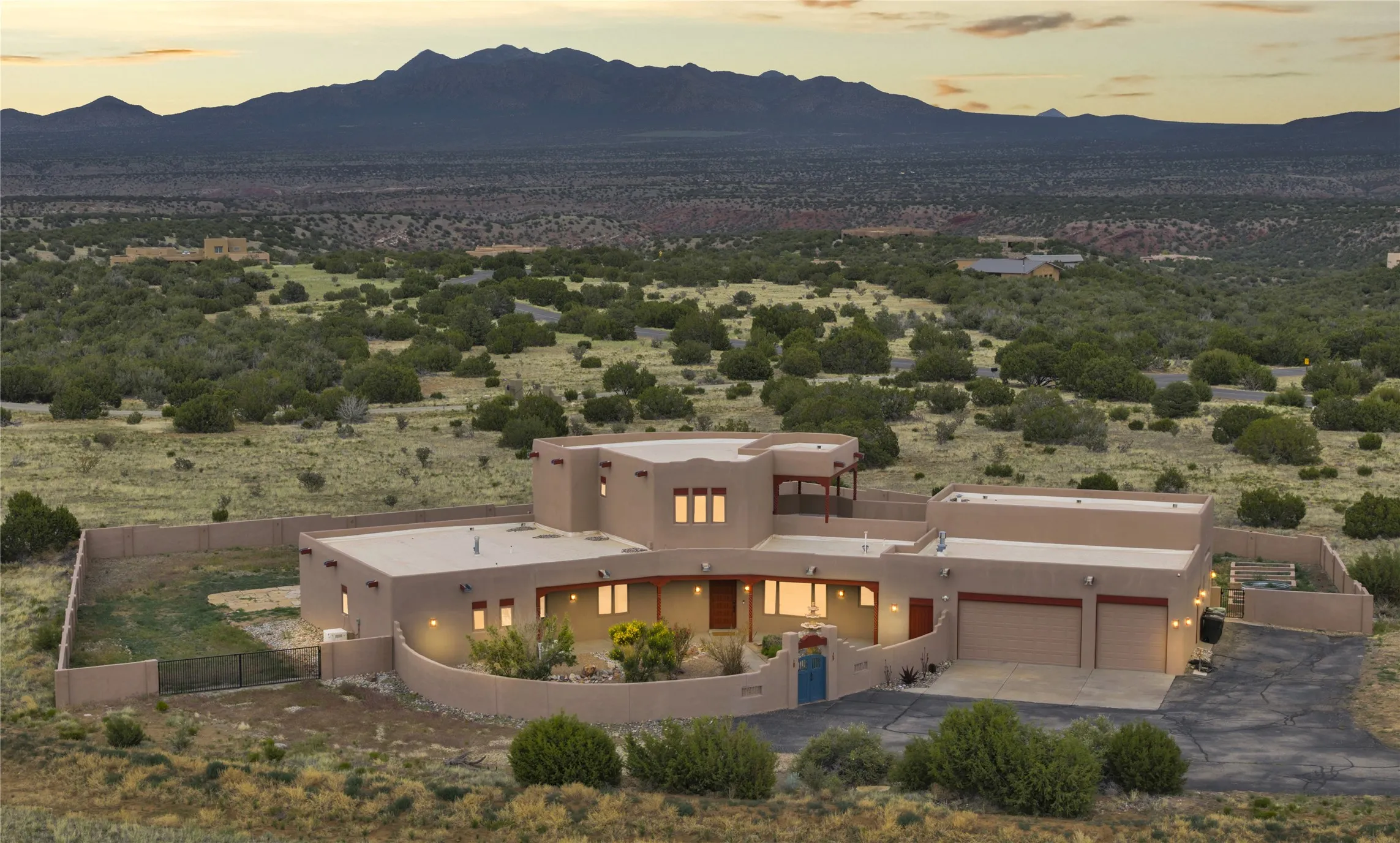 Thoughtfully designed for both entertaining and daily living, this home embraces the surrounding New Mexico landscape with multiple living areas and timeless finishes. The main-level primary ensuite, three bedrooms and 2 bathrooms. mountain vistas. Practical features include radiant in-floor heating throughout the lower level and a spacious utility room with sink and storage.