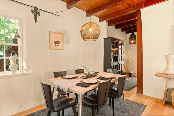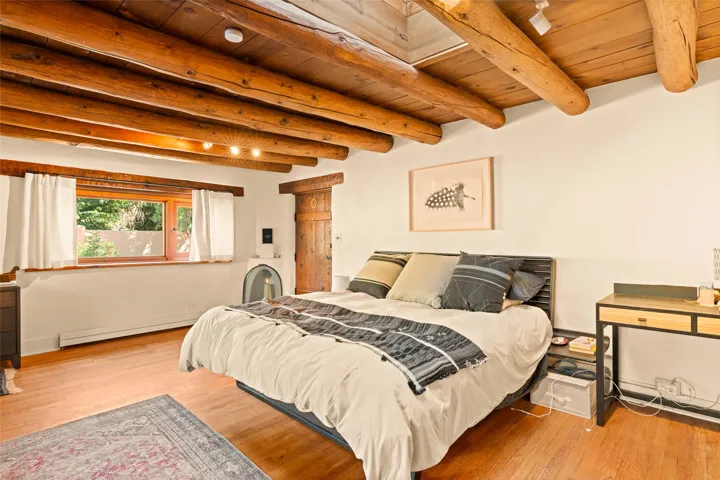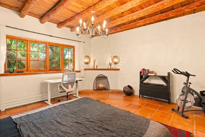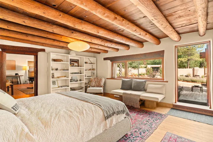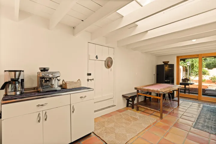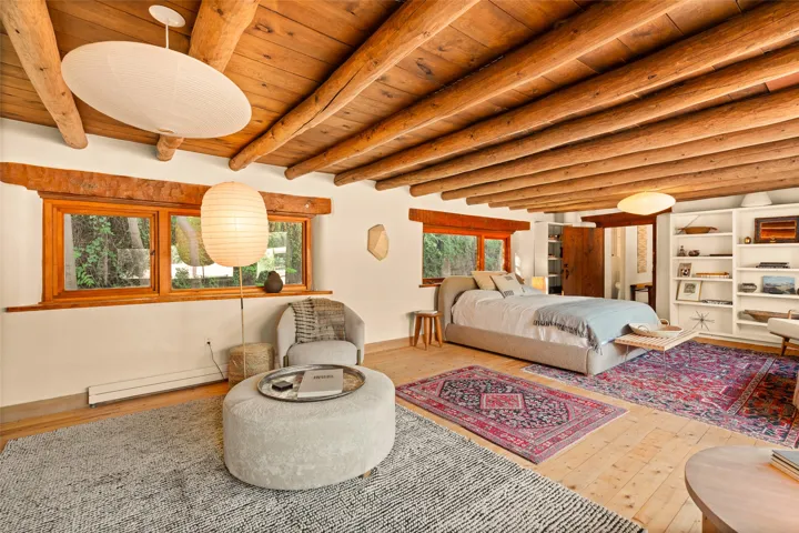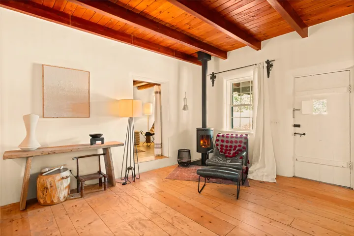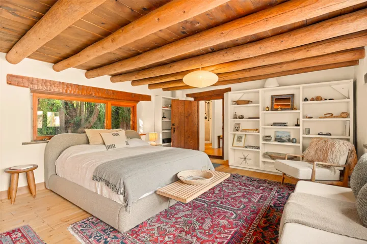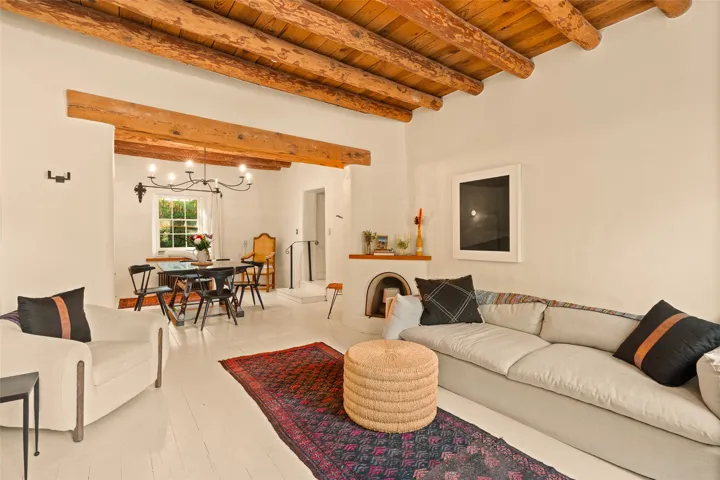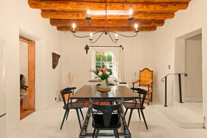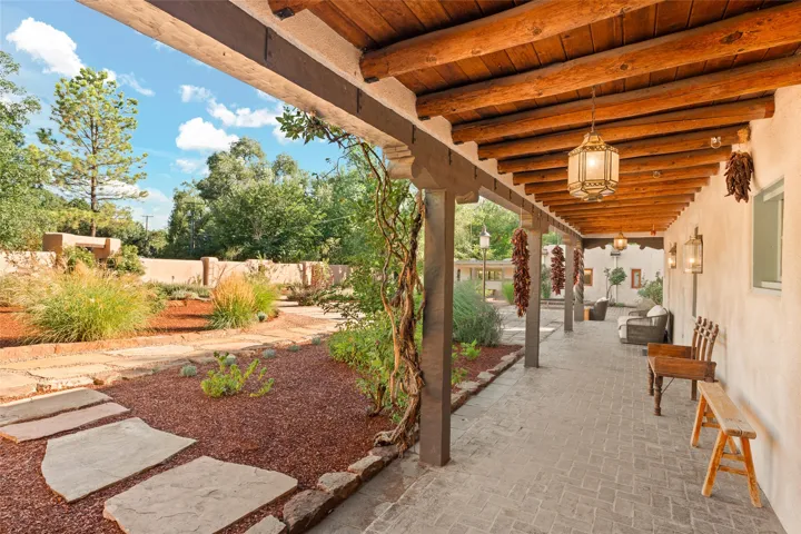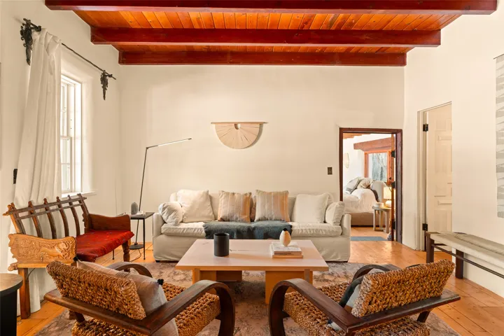 Recently updated with a rich old world charm and history (formerly El Cuervito Ranch), this private and gated compound is situated in the lush village of Tesuque just steps away from El Nido Restaurant, the famed Tesuque Village Market and the world-renowned Santa Fe Opera. Consisting of 0.754 beautifully manicured acres, the entry courtyard has stone pathways and seasonal greenery, creating a warm and inviting playground for the senses. The property consists of a main house (two bedrooms/two baths), guesthouse (one bedroom/one bath), and three separate studio spaces all served by both a shared well and the Tesuque Community Water System. The interiors of these adobe and frame constructed homes are washed with light and have vast tree-lined views in every direction. Formal living spaces open out onto a plethora of indoor/outdoor entertaining options with sitting portals weaving the beauty of nature into the living environment. There is a nice separation of space between the structures, but the property also offers many uses as it is zoned Rural Commercial, allowing many business options for the homeowner. Classic in style, this sensuous property has been fitted with mini-split heating and A/C, plastered walls, wood floors, vigas and beams, completely walled and tucked away in one of Santa Feās finest idyllic locales. The adjacent Lot 2 (0.816 acre) parcel is also available for sale by the owner in conjunction with Lot 1 for $2,550,000 – for both lots. Surface irrigation water rights convey with Lot 2.