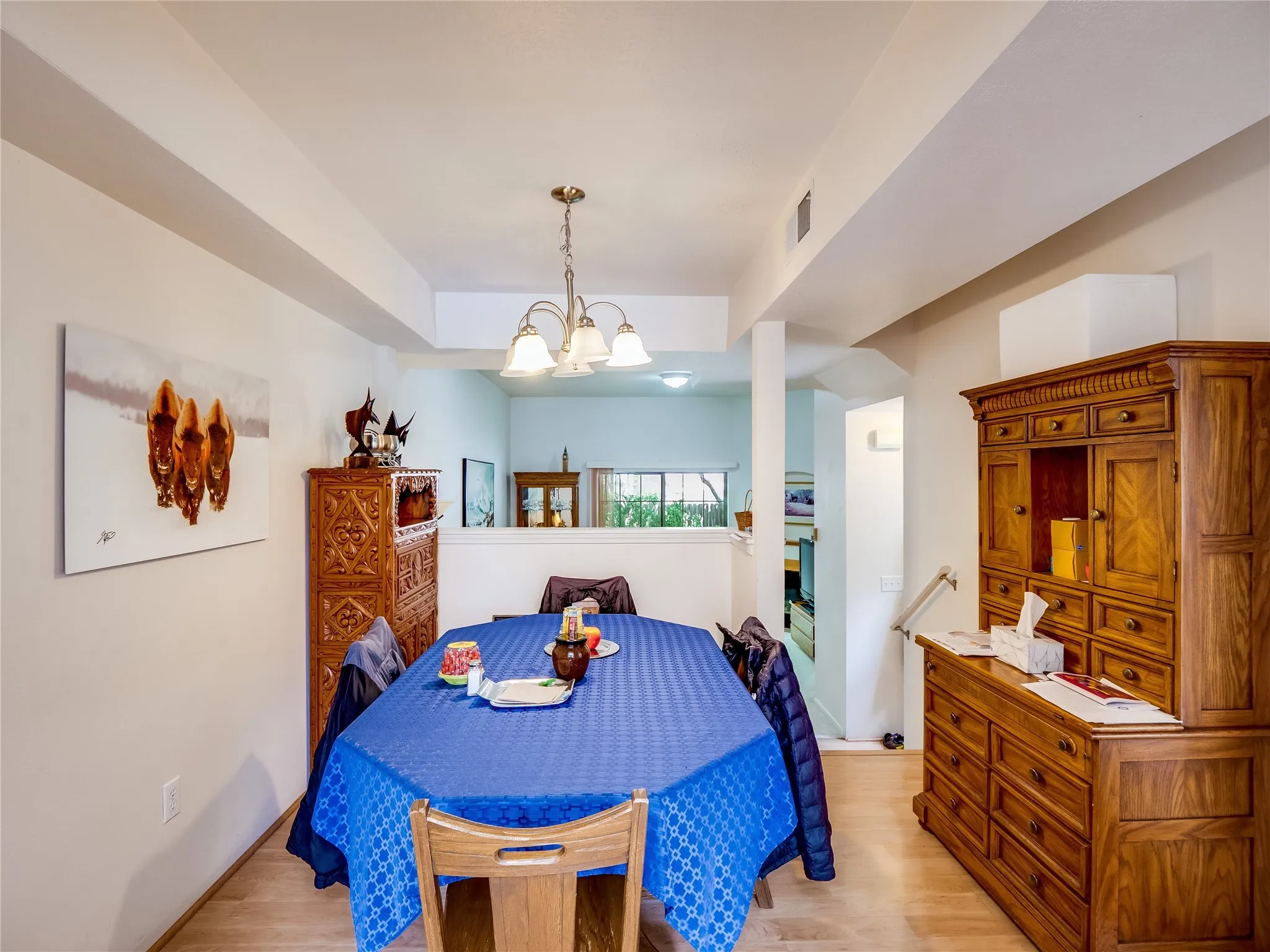 Welcome to this charming and move-in-ready multi-level condo, perfectly situated in the desirable Eastern Area of Los Alamosājust moments from parks, scenic trails, shopping, restaurants, and entertainment. This thoughtfully designed home offers spacious living across multiple levels, blending comfort with convenience. Step inside through the front entrance and onto laminate wood floors that flow through the main entry space. On this floor, you’ll find interior access to the single-car garage, which also houses a washer and dryer for added convenience. Head upstairs to the inviting main living area featuring a bright and cozy living room with plush carpeting, a warm gas fireplace, and sliding glass doors that open to a private, fenced-in patioāideal for relaxing or entertaining outdoors. Continue up a short flight of stairs to the open dining space, which overlooks the living room and connects seamlessly to the bright kitchen. The kitchen features classic wood cabinetry, white appliances, a pantry for added storage, and ample counter space. A crisp white powder room is also located on this level for guests. On the next level, two generously sized guest bedrooms provide comfortable accommodations with access to a full shared bathroom complete with a large single sink vanity and a tub/shower combo. The top floor is dedicated to the spacious primary en-suite retreat. This private level includes a large bedroom, walk-in closet, and full bathroom with a shower/tub combo and an extended single sink vanity. Step outside onto your own enclosed patio deck and enjoy peaceful views of the surrounding mountainsāyour very own personal sanctuary. With multiple levels of living, a functional layout, and an unbeatable location, this condo is a rare find. Donāt miss your chance to call it homeāschedule your private showing today!
