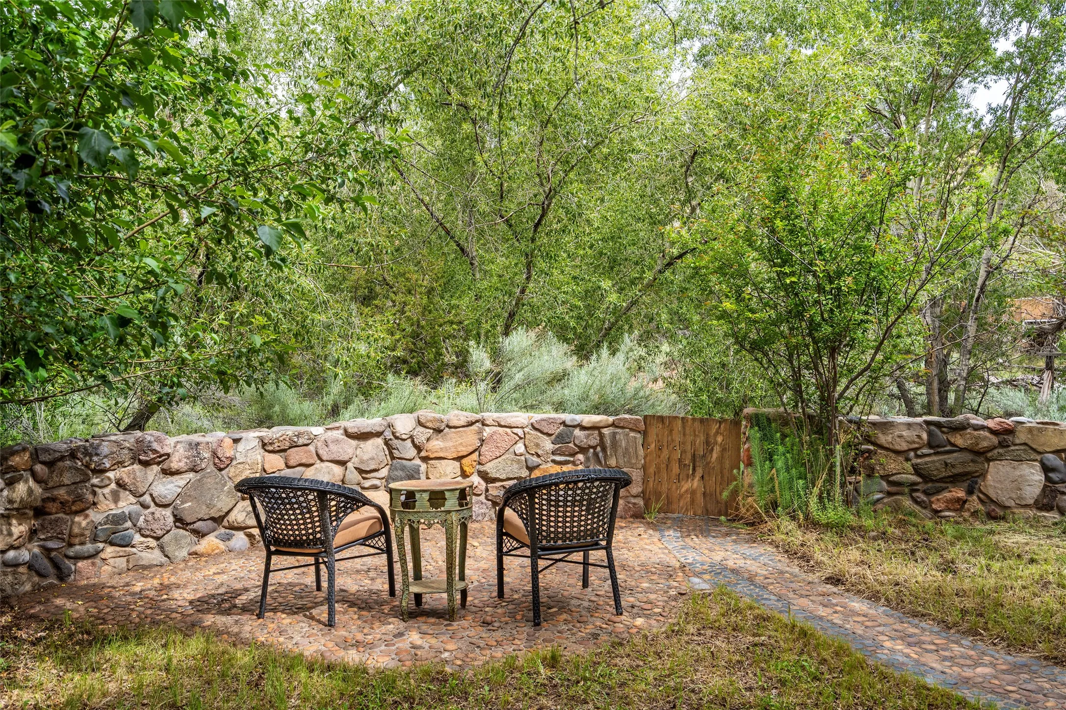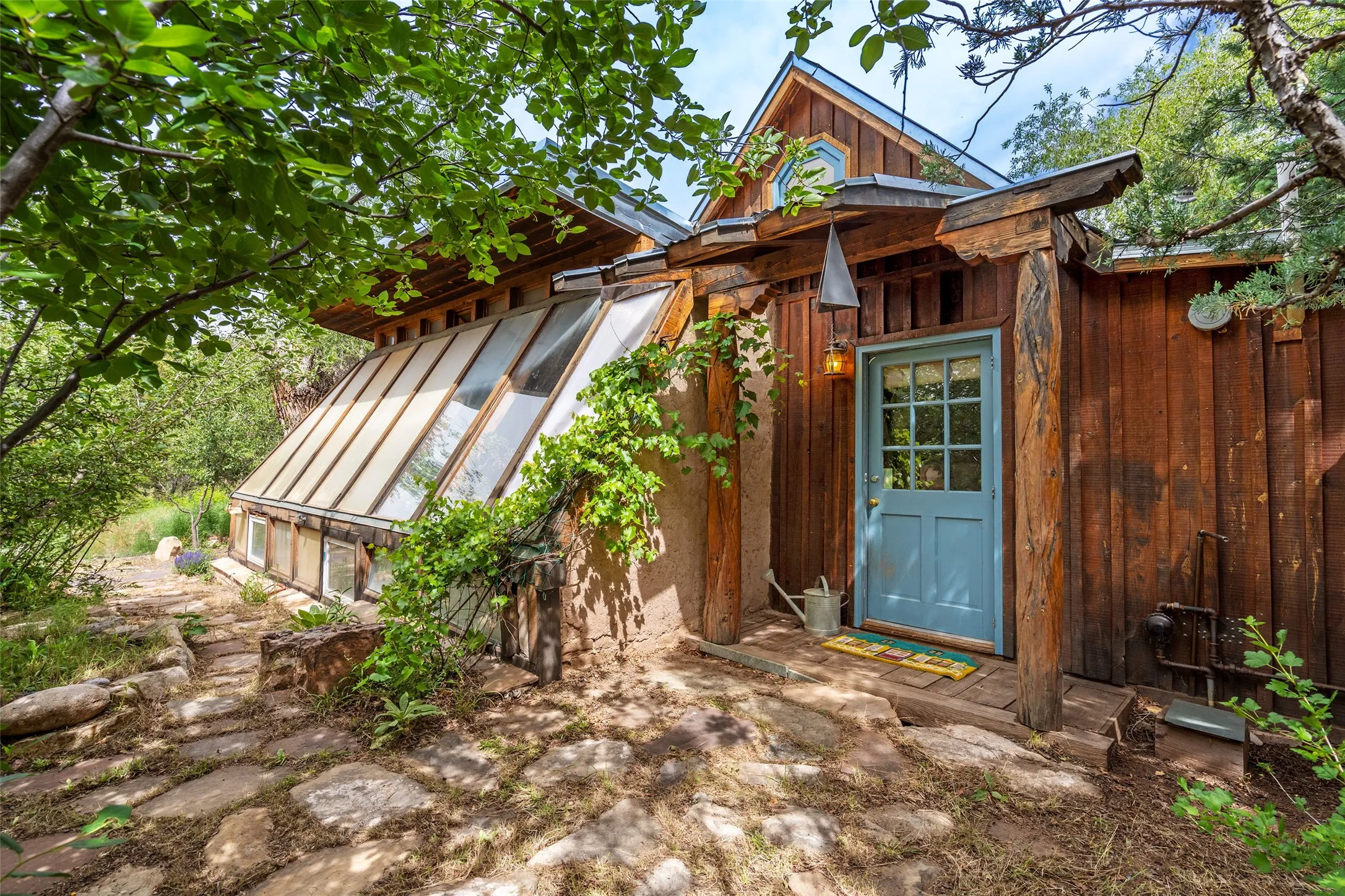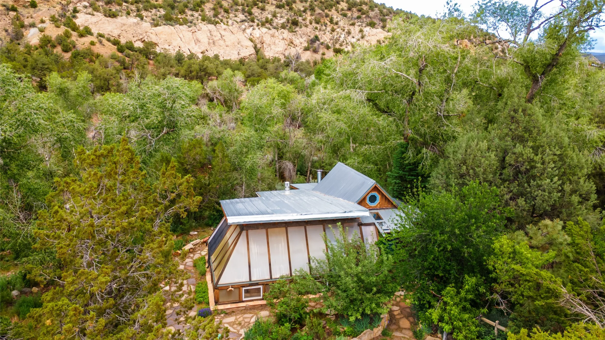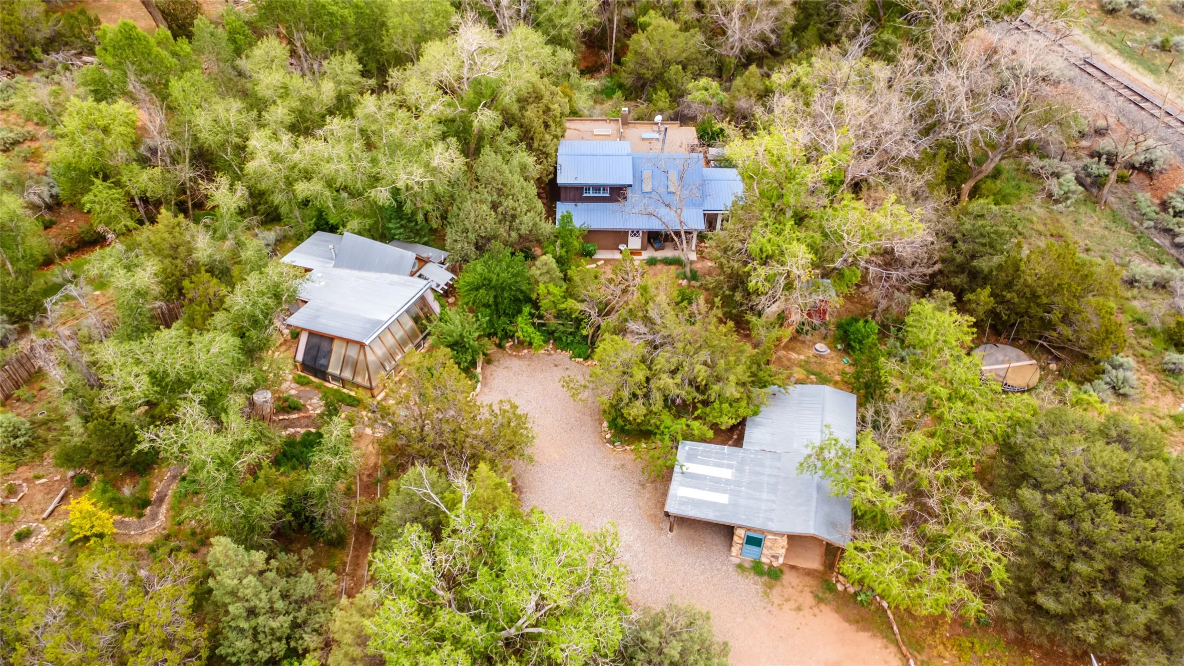 Nature-lover’s paradise on 6 Acres- Tucked beneath red rock hills–Cross the bridge from Sibley Road and enter your private sanctuary nestled on six acres of lush, mature land in the serene community of CaƱoncito. This one-of-a-kind property features a thoughtfully updated three-bedroom, two-bathroom adobe and frame main house that blends timeless charm with modern luxury. Highlights include fully renovated luxury bathrooms and a gourmet kitchen with artisan tile, locally crafted ironwork throughout, and new sustainable wood floors. The home showcases diamond finish plaster and low-VOC finishes, ensuring both beauty and environmental consciousness.