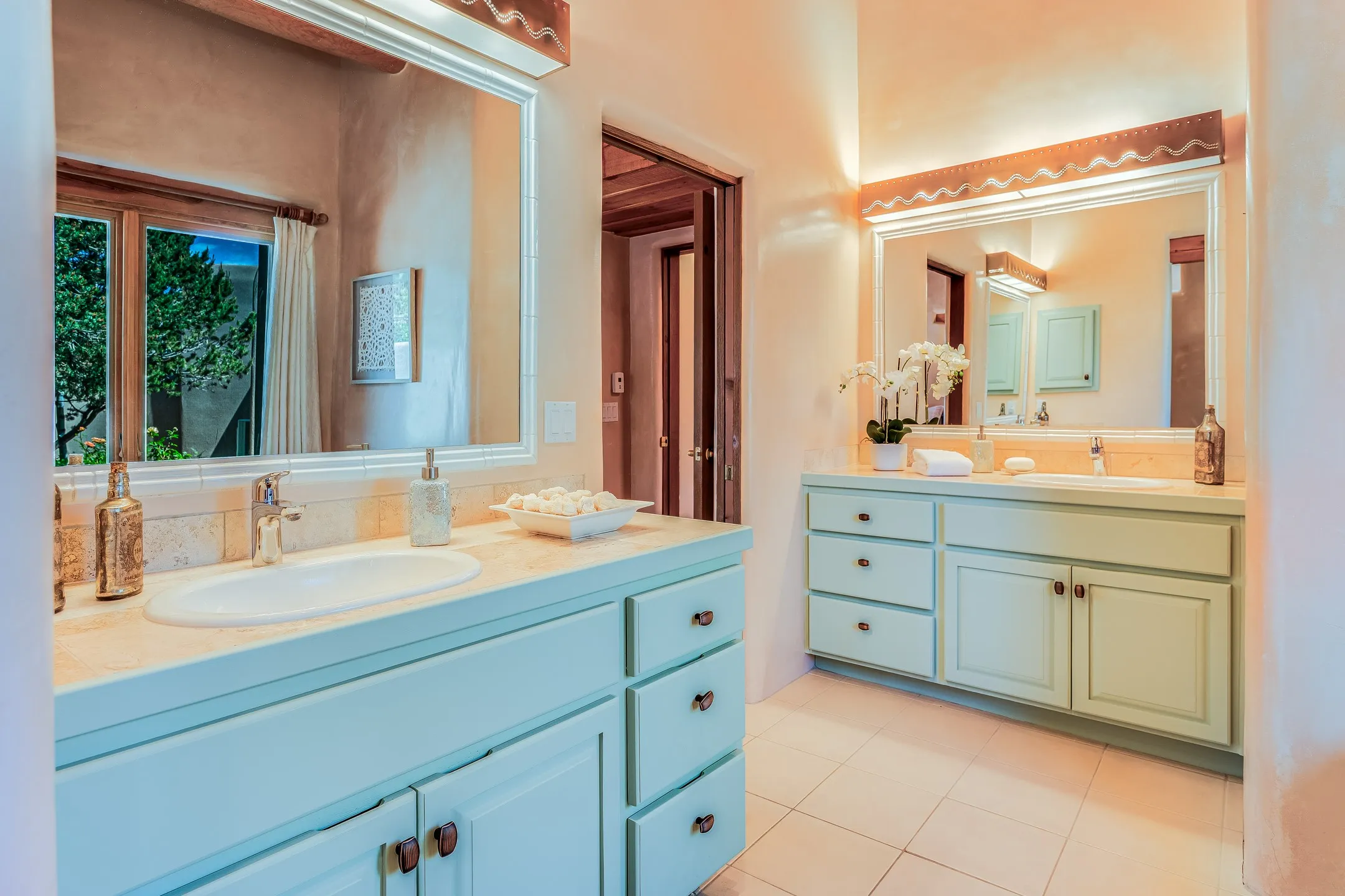 Located in Estates II at Las Campanas, this 3,267* sq. ft. home provides a split floor plan – master suite with a full bath, large walk-in closet, and private patio area separated from 2 guest rooms with 1 full bath. Living room, dining room, breakfast nook and kitchen in an open plan configuration. Office/den adjacent to living room. Four heating/cooling mini-splits, and radiant floor heating maintain a desirable level of comfort throughout. Thereās even a 220v outlet in the garage for your EV.