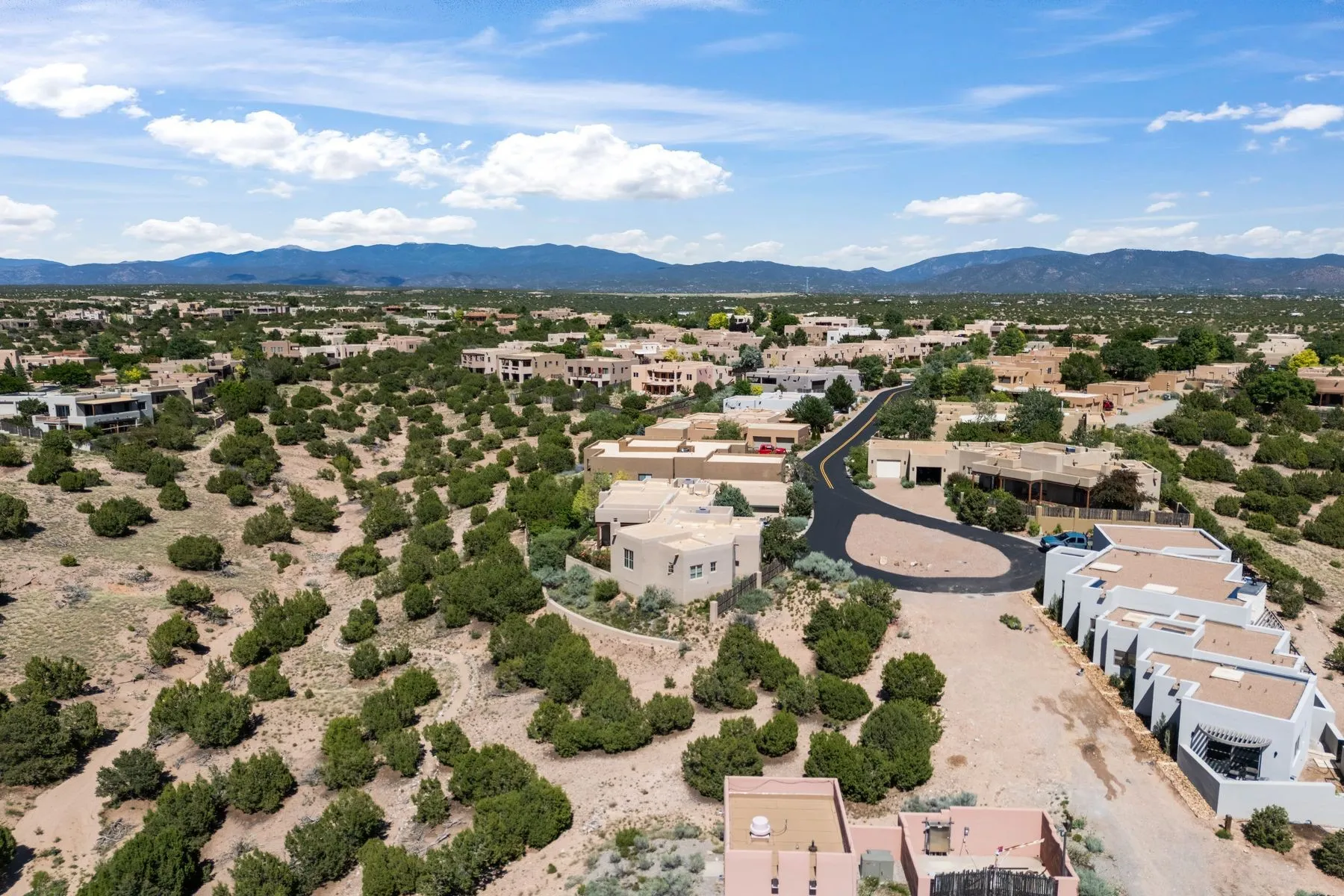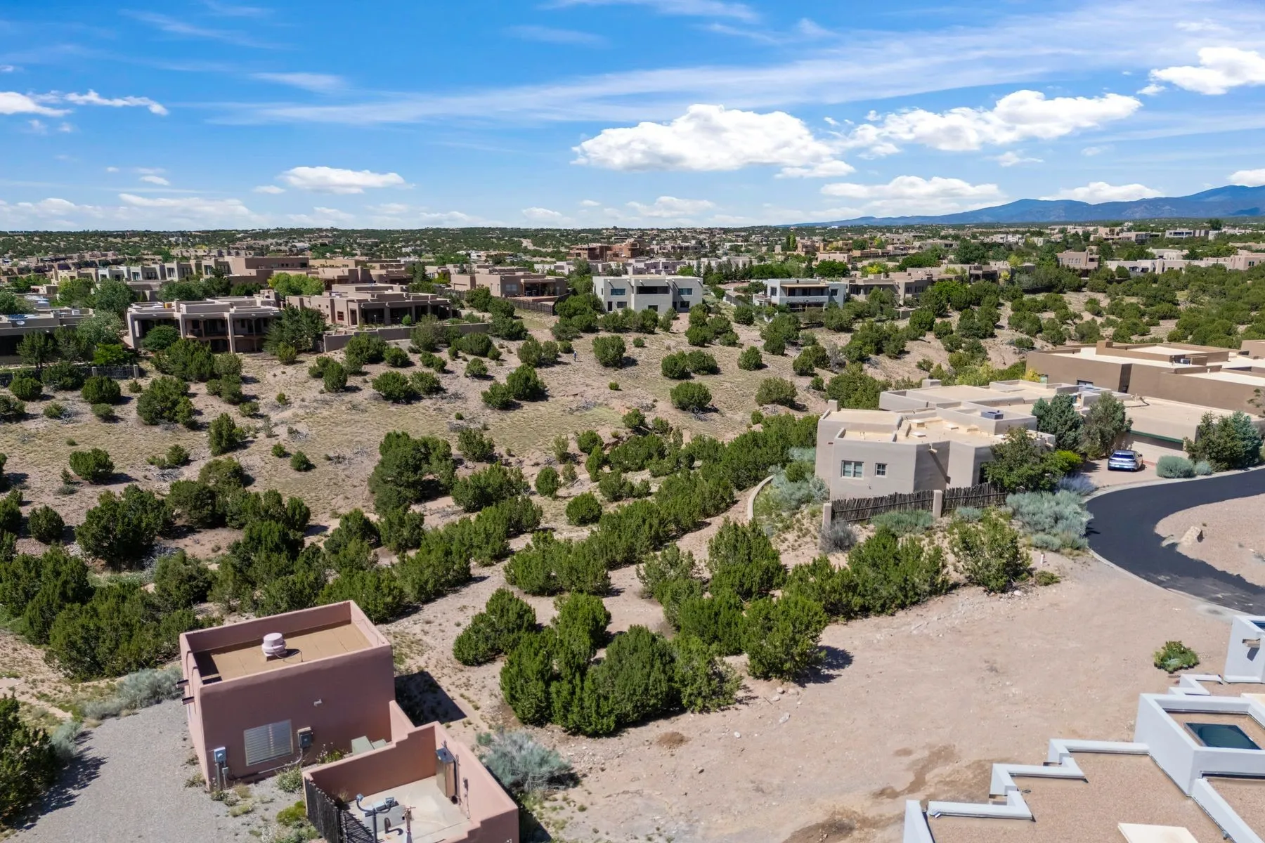 Terrific Opportunity to Build on one of the last remaining lots available in popular Aldea. Located on a quiet cul de sac, there are forever views of the Jemez Mountains (sunsets) and easy access from the street. Nearby community walking trail lies at the base of the lot along with open space filled with natural landscaping including good tree cover. Aldea offers miles of open space to walk, all paved streets, Community Plaza, tennis, and all public utilities nearby (gas, electric in street; connect to community sewer & SF County water, meter required).