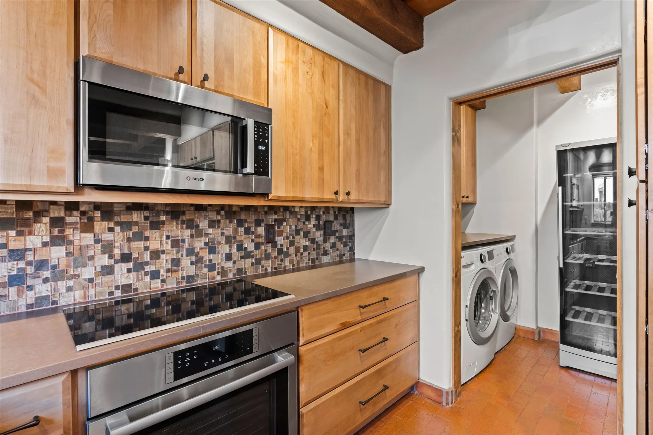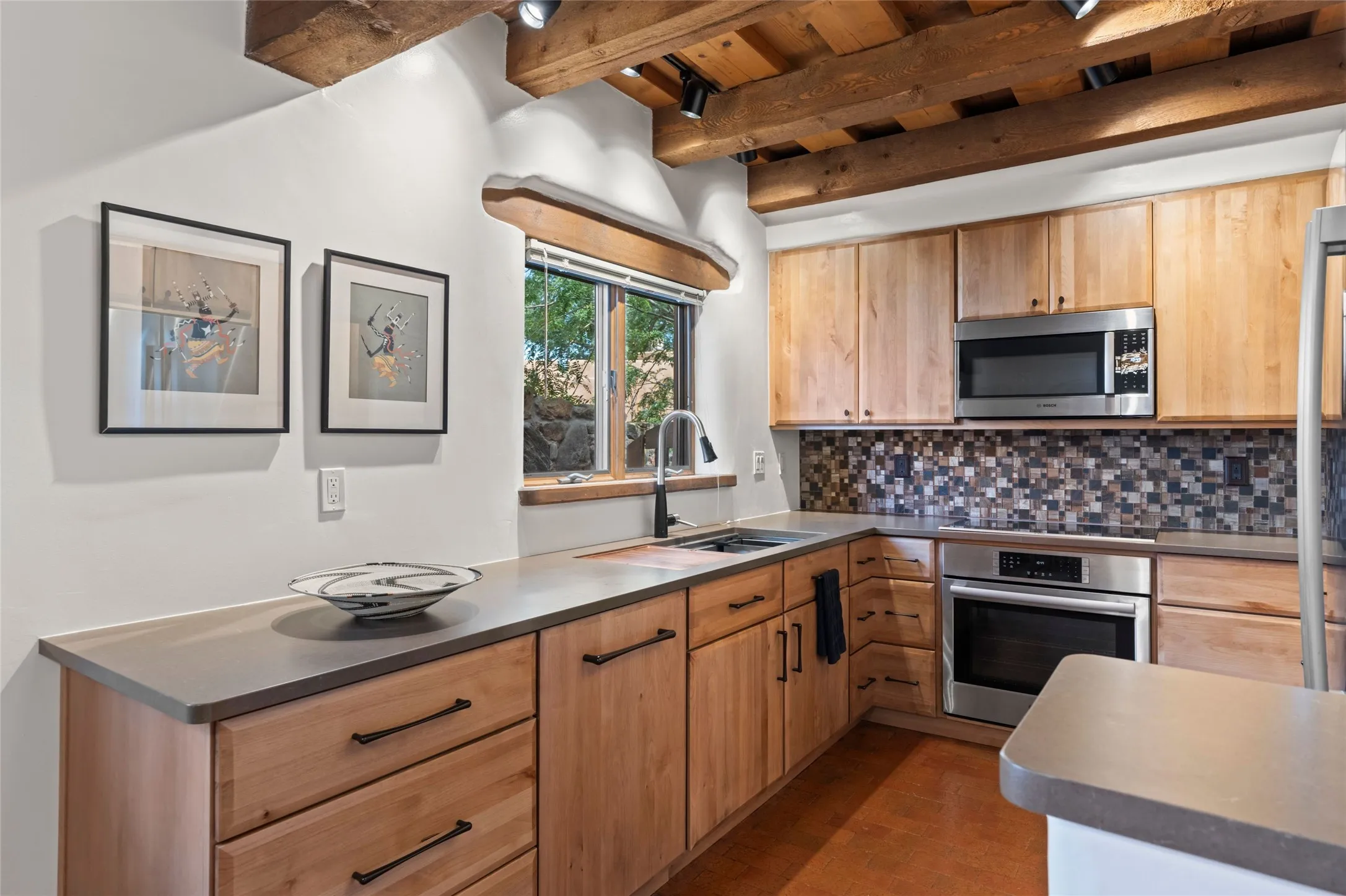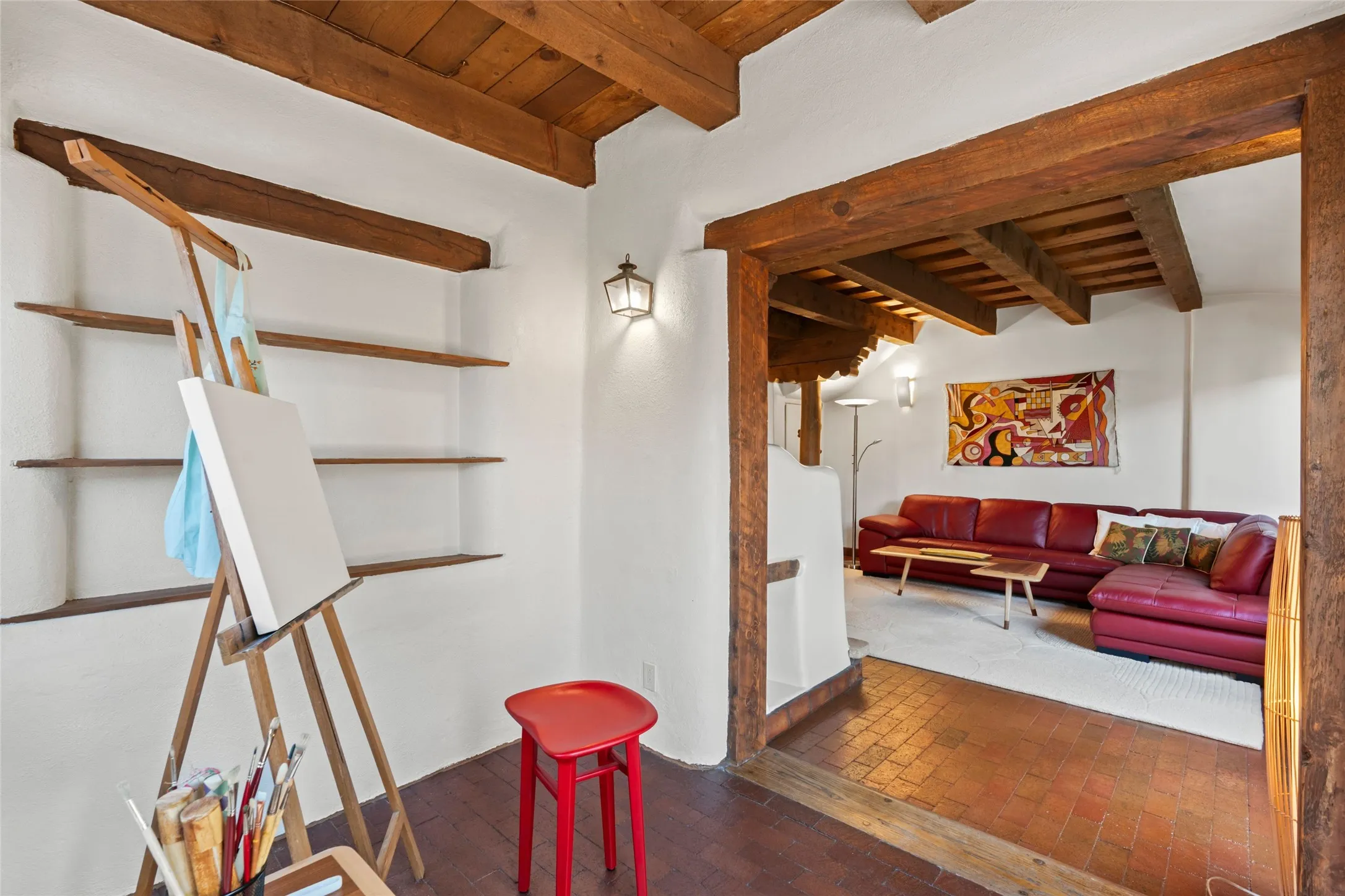 You will enjoy the private back yard: grassy tufts that require no effort and a patio to gather around the outdor fireplace. Will this treasure be your residence or your occasional escape to Santa Fe? Regardless, you would be sorry to miss this opportunity – special properties that surprise and delight are not so common.