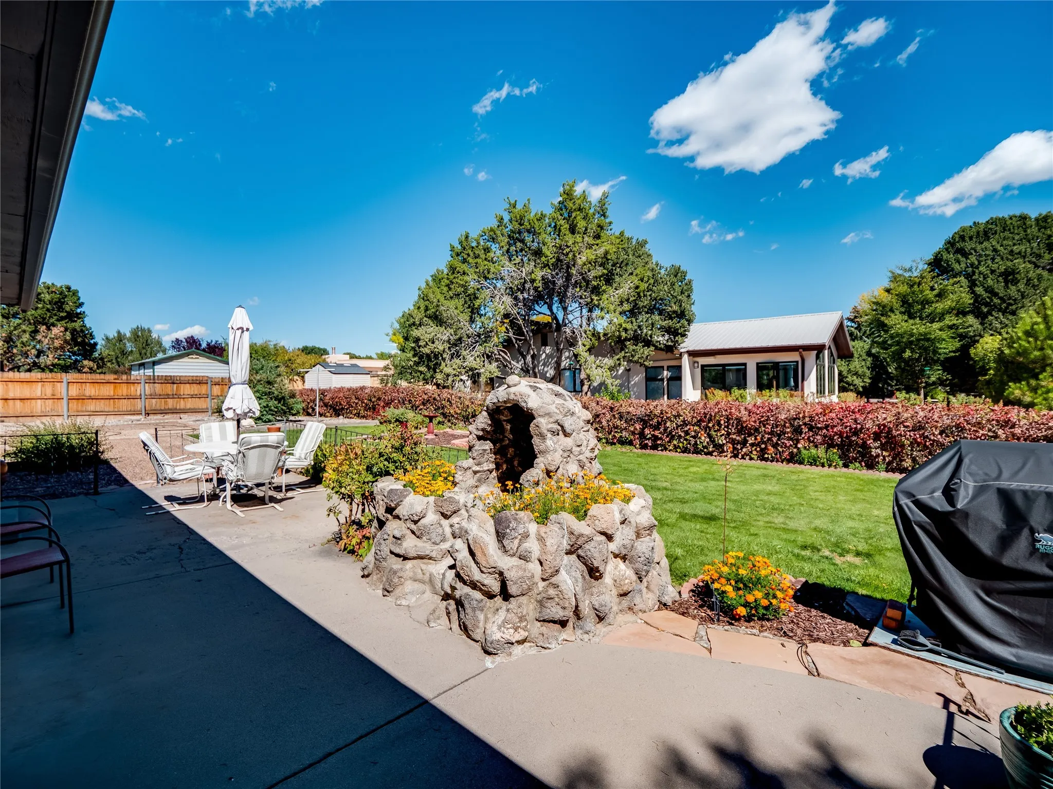 Welcome to this sensational ranch-style home in White Rock with beautiful curb appeal. A lush, green lawn and mature shade trees frame the front of the property, complemented by colorful flower beds that create a warm and inviting entrance. Step inside to find plush carpet flooring that runs throughout, adding comfort and continuity. Just off the entryway to the left is a versatile bonus room or denāideal for a home office, study, or creative spaceāframed by elegant pillars that give the area a sense of separation and style. Continue forward into the cozy living room featuring a wood-burning fireplace, perfect for chilly evenings and relaxing with loved ones. The adjacent galley-style kitchen includes wood cabinets with chrome hardware and offers ample prep space, as well as a designated dining area for casual meals A 260 sq. ft. bonus room with access to backyard can be a kids play room, exercise room, a room for arts and crafts, a fifth bedroom or a great man cave! Nearby is access to the two-car garage and a convenient laundry space, providing everyday functionality. Step down into the formal dining room, filled with natural light from the surrounding windows and glass sliders that lead directly to the back patio and yard. Connected to this space is a large family room, offering another access point to the backyard, a perfect setting for gatherings, movie nights, or game days. A beautifully renovated modern guest bathroom with a white single sink vanity and a fully tiled shower/tub combo. At the end of the hall, the spacious primary en-suite overlooks the peaceful backyard and includes a walk-in closet and a private bathroom with a tiled walk-in shower and single sink vanity. The expansive backyard is a true oasis, with a lush green lawn, vibrant flower gardens, and irrigated vegetable plantersāperfect for any green thumb. Thereās also side-yard access to park a vehicle or RV. A large patio area is ideal for outdoor dining and entertaining under the open sky.
