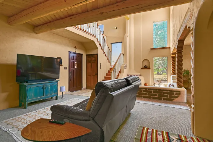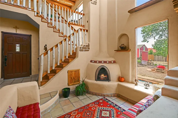 Discover a Unique Taos Living and Investment Opportunity! Nestled in Ranchos de Taos, just outside town limits, this exceptional property offers a serene lifestyle combined with a positive, steady rental income. You’ll be living in a peaceful neighborhood, yet just 4 miles from Taos Plaza, a half-mile from Holy Cross Hospital, and moments from the Weimer Foothills trails. This unique offering includes four total units. The owner-occupied main home features an open living, dining, and kitchen area with clerestory windows and a loft. The cozy kiva fireplace, a two-story chimney before a sunken living area, was crafted by renowned artisan Carmen Velarde and inspired by the iconic Taos Inn. Enjoy abundant natural light and an upstairs loft/studio with a large second-story viewing deck offering breathtaking mountain views, including Taos Mountain, and stretching all the way to Colorado – perfect for watching spectacular sunsets and stargazing. The main home was beautifully remodeled in 2018 , with upgraded bathroom, kitchen flooring, and cabinets, and the outdoor area was enhanced in 2023. Beyond the main residence, you’ll find an extended owner’s suite that has been partitioned as a studio rental, a separate 1-bedroom, 1 bath-room guest house, and a truly special adobe studio/chapel. This studio, a replica of a church chancel, was originally built for artist Fr. William Hart McNichols by master adobe builder Trini Velarde. Constructed with traditional adobes, mud floors, and vigas painted with natural plant dyes, this studio remains cool in summer and remarkably warm in winter. This is more than just a home; it’s an incredible investment opportunity to own a piece of Taos’s rich artistic and building heritage with established rental income.