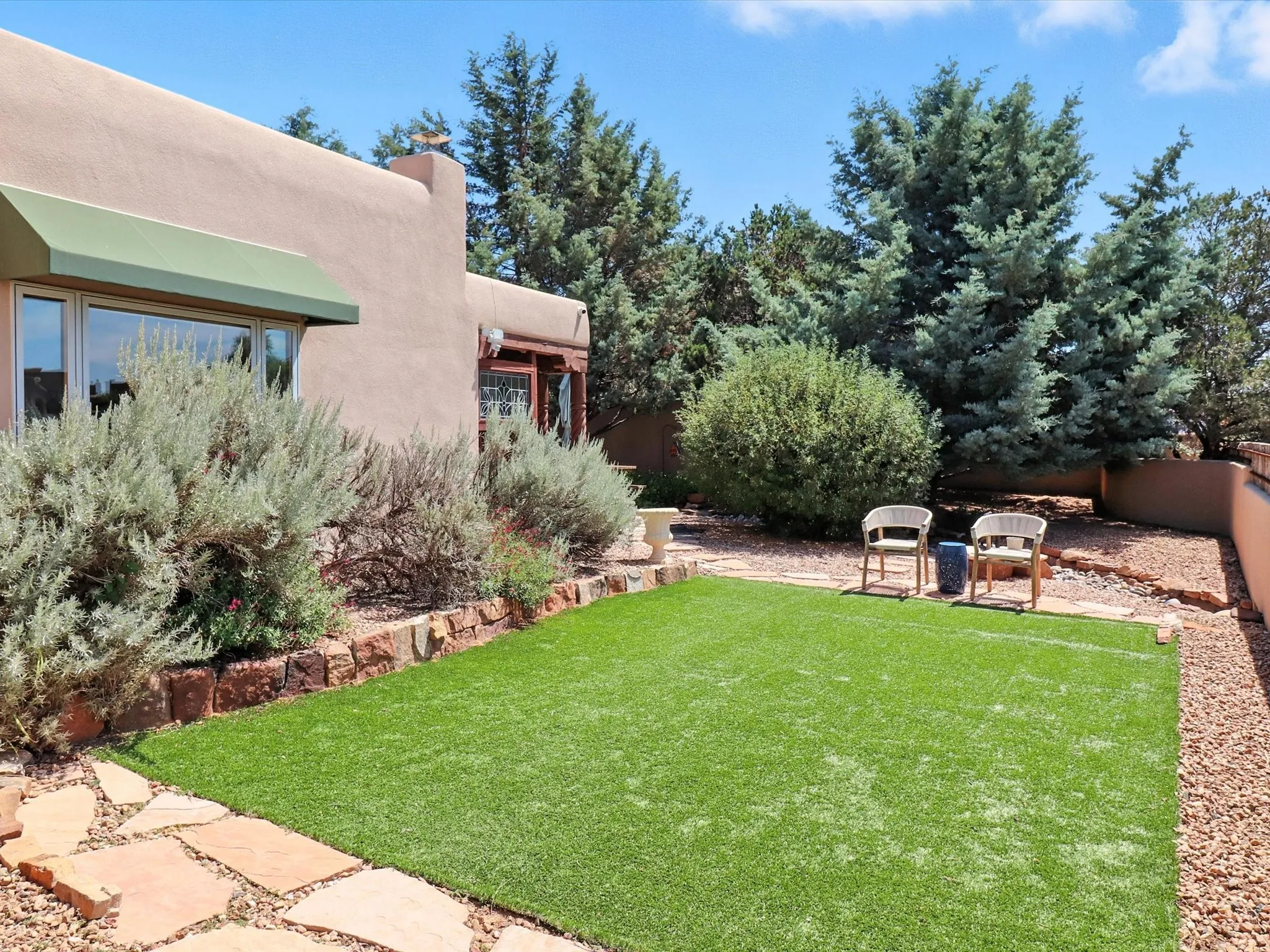 The expansive owner’s suite is thoughtfully positioned for privacy and serenity. It includes a peaceful sitting area, direct access to the heated sunroom, and a beautifully appointed updated bath featuring a glass brick wall that gently filters natural light. Two additional bedrooms are located at the opposite end of the home. One is currently serving as studio and office, the other a wonderful guest room, with both sharing a generous full bath. Additional features include: walled and gated yard with security cameras, attached oversized two-car garage, large walk-in closets in every bedroom, heated enclosed Portal Santa Fe room with adjoining covered BBQ area, 5 mini-split Mitsubishi systems for personalized cooling and supplemental heat w/ upgraded hyper compressors, 13 GPM tankless water heater, Toto Washlet toilets, 18 solar panel (owned), and a large in-town lot with all city utilities. This home has been a place of deep joy, creativity, & care, now ready to welcome its next chapter w/ warmth & grace.