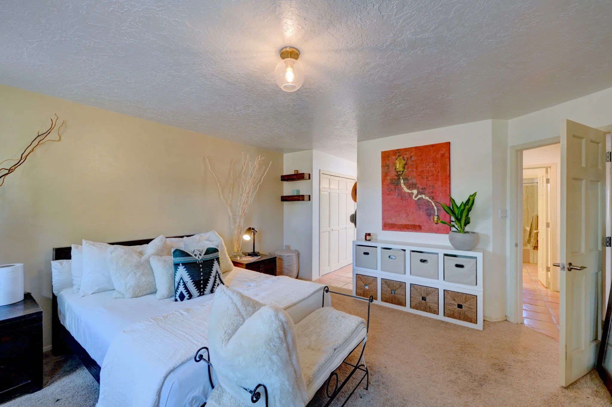 This thoughtfully maintained home combines authentic Santa Fe architectural elements with practical modern amenities, creating an ideal living environment in one of the city’s most desirable neighborhoods.