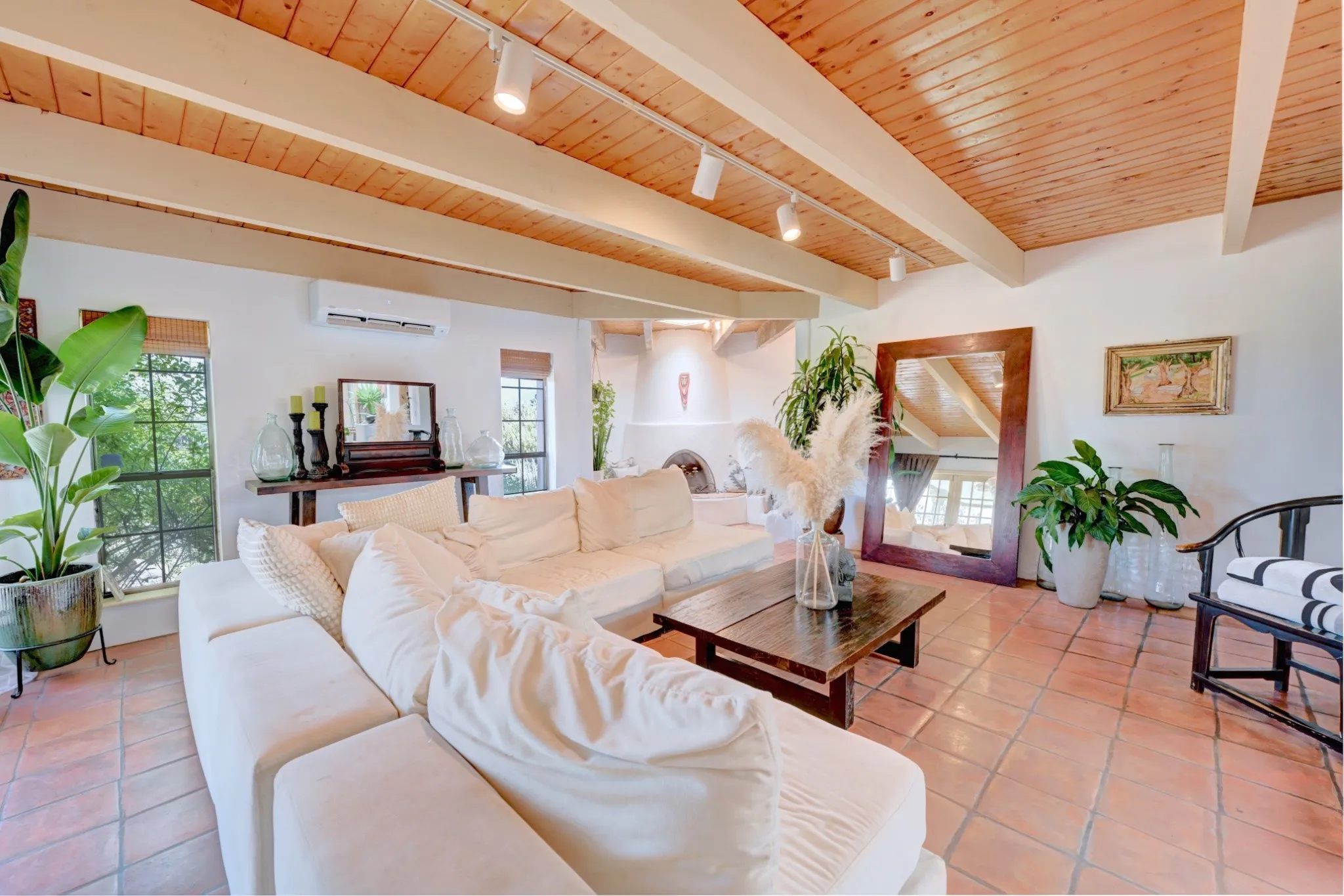 Discover the perfect blend of Southwestern charm and modern convenience in this captivating 3-bedroom, 3-bathroom home spanning 2,376 square feet. This Santa Fe gem welcomes you with authentic Saltillo tiles and stunning exposed ceiling beams that create an atmosphere of rustic elegance throughout.