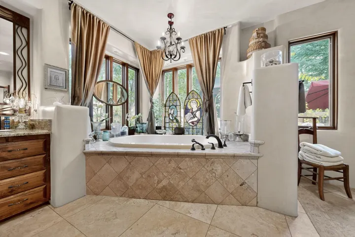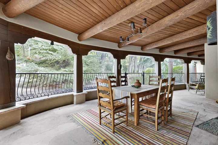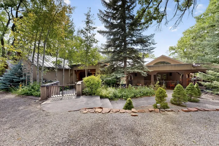 Experience timeless Santa Fe living in this refined retreat, nestled in the heart of Tesuque Villageājust minutes from downtown Santa Fe. Behind grand copper gates, a lush, private oasis unfolds with mature trees, vibrant perennial gardens, and tranquil landscaping surrounding the estate.