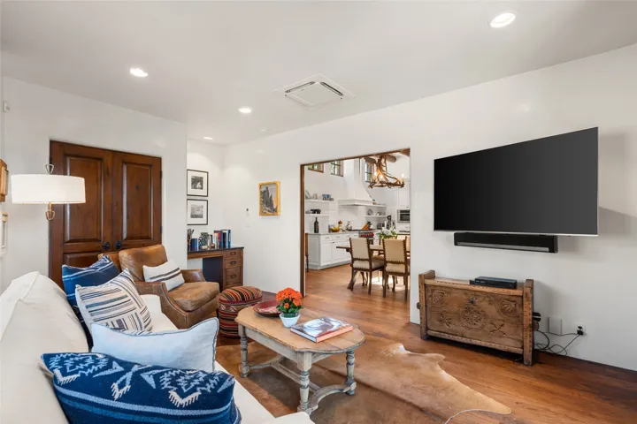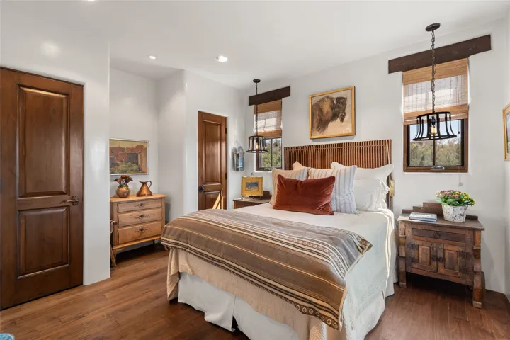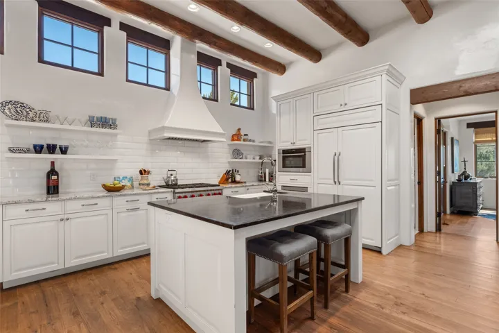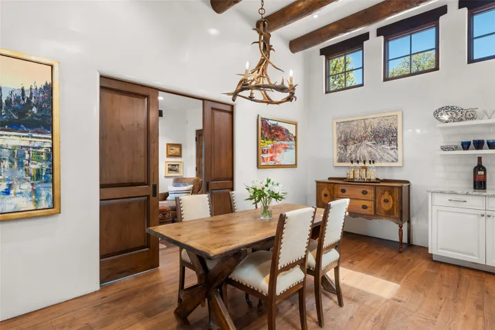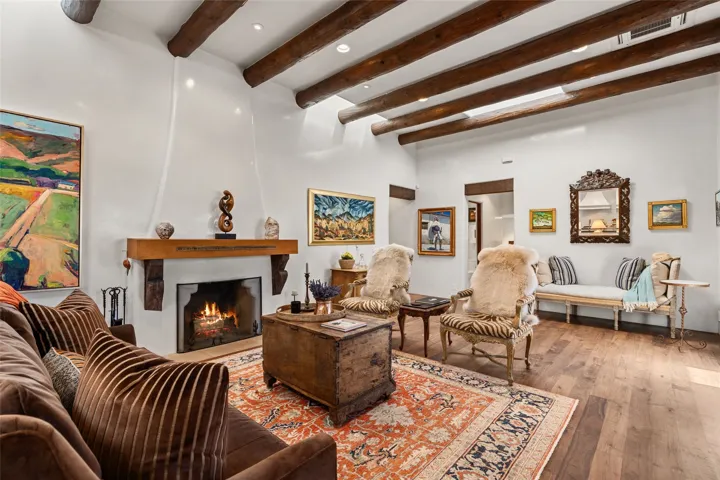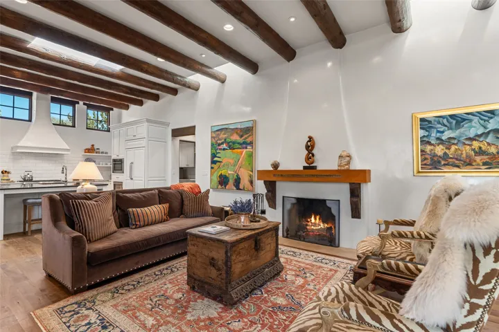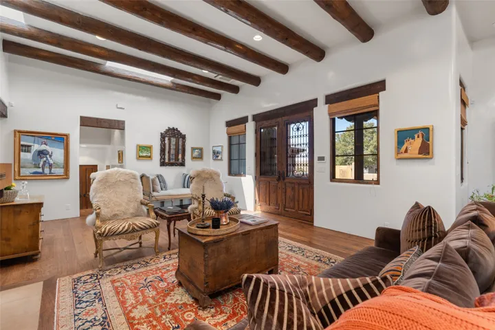 Exceptional Award-Winning Residence just Four Blocks from the Santa Fe Plaza! The custom built home is located in the sought-after northeastern foothills of downtown Santa Fe. This 3 Bedroom/3 Bath home is a rare opportunity to own a piece of award-winning architecture in an unbeatable location. Breathtaking sunset vistas over the Jemez Mountains are enjoyed from the front courtyard, while to the east, rolling piƱon-covered hills and a paved hiking trail offer stunning 360-degree views of the surrounding mountain ranges. A collaboration between renowned builder Zachary and Sons and Lorn Tryk Architects, this home earned Best Design, Best Craftsmanship, and Best Kitchen in the 2017 Haciendas Parade of Homes. It has also been featured in both Santa Fean and Homes magazines. Thoughtfully designed for single-level living, the interior blends modern contemporary elegance with authentic Spanish architectural detail. Notable features include 8-foot Spanish Colonial front doors, soaring 12-foot ceilings with grand vigas, rare long-plank walnut heartwood flooring, diamond plaster walls, and hand-mould Danish brick in the courtyard. Additional premium elements throughout include custom cabinetry, architectural casement windows, skylights, Wolf and Sub-Zero appliances, and a TPO roof for durability. There is a 12-year transferrable roof warranty in effect from the original 20-year warranty term! This home is a design-forward sanctuary in one of the most coveted neighborhoods in Santa Fe. A true downtown treasure!