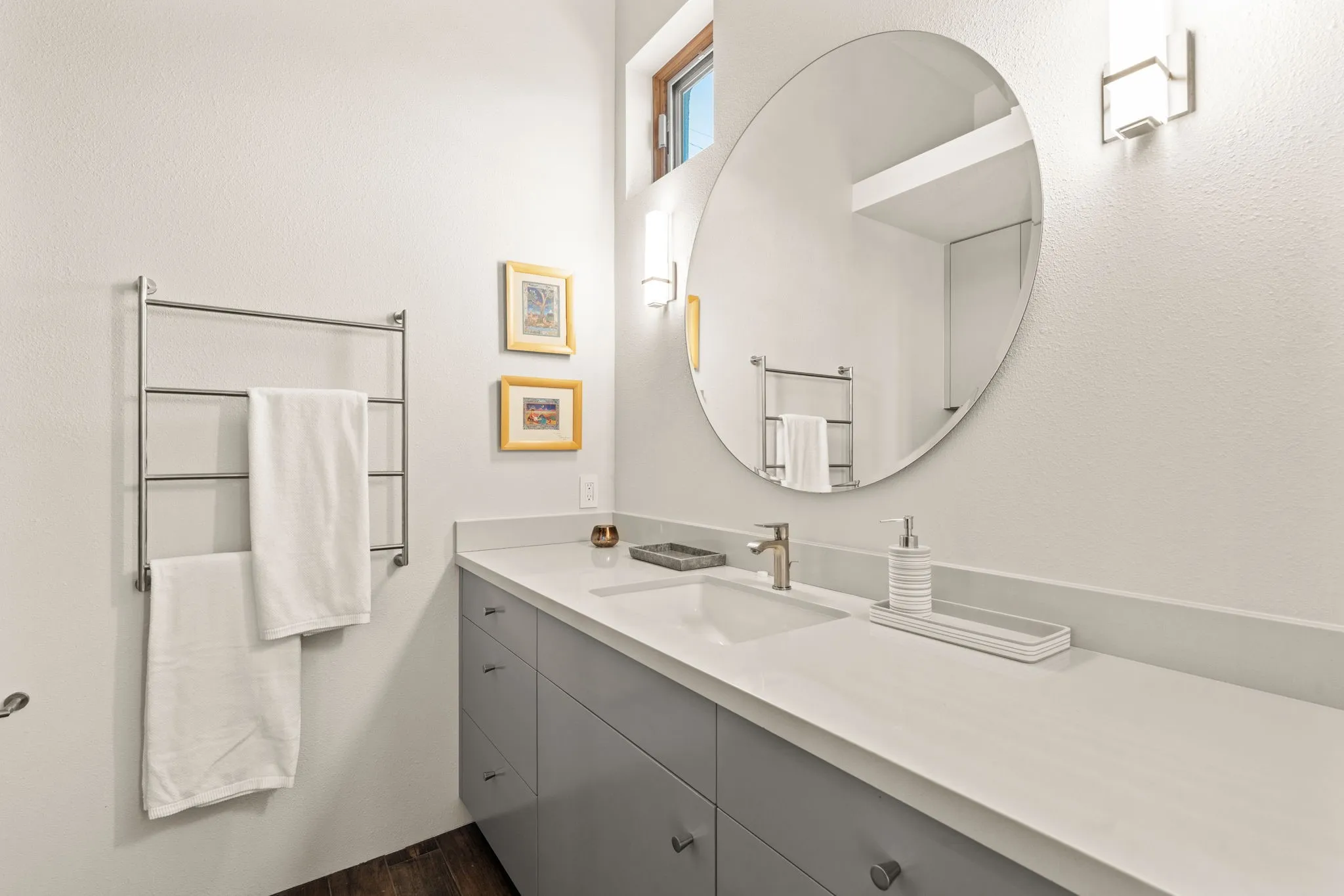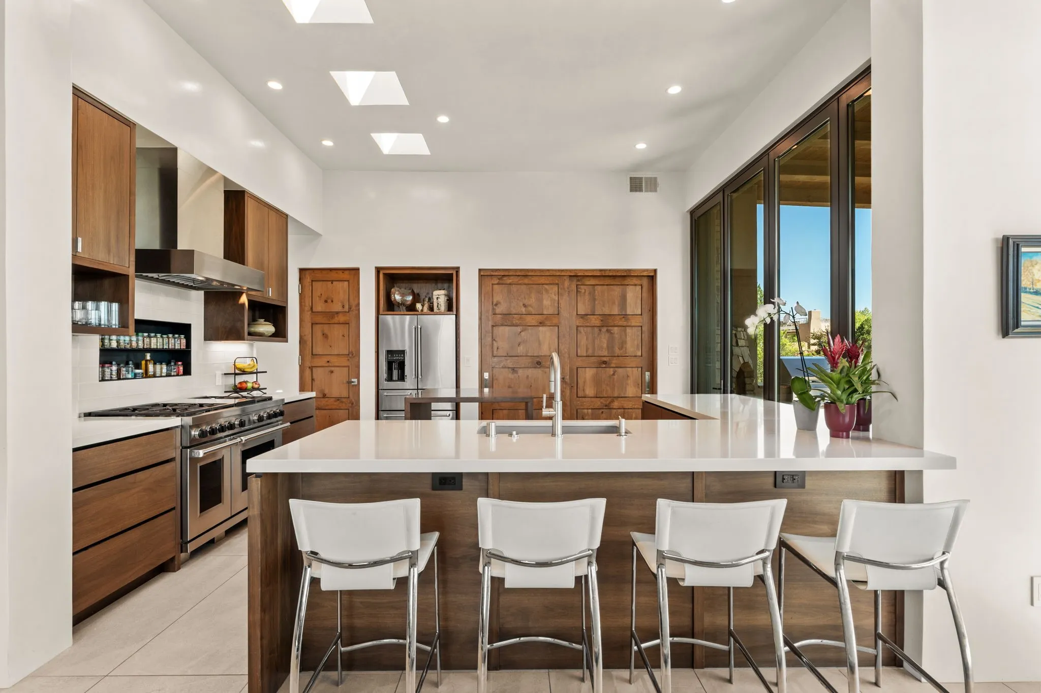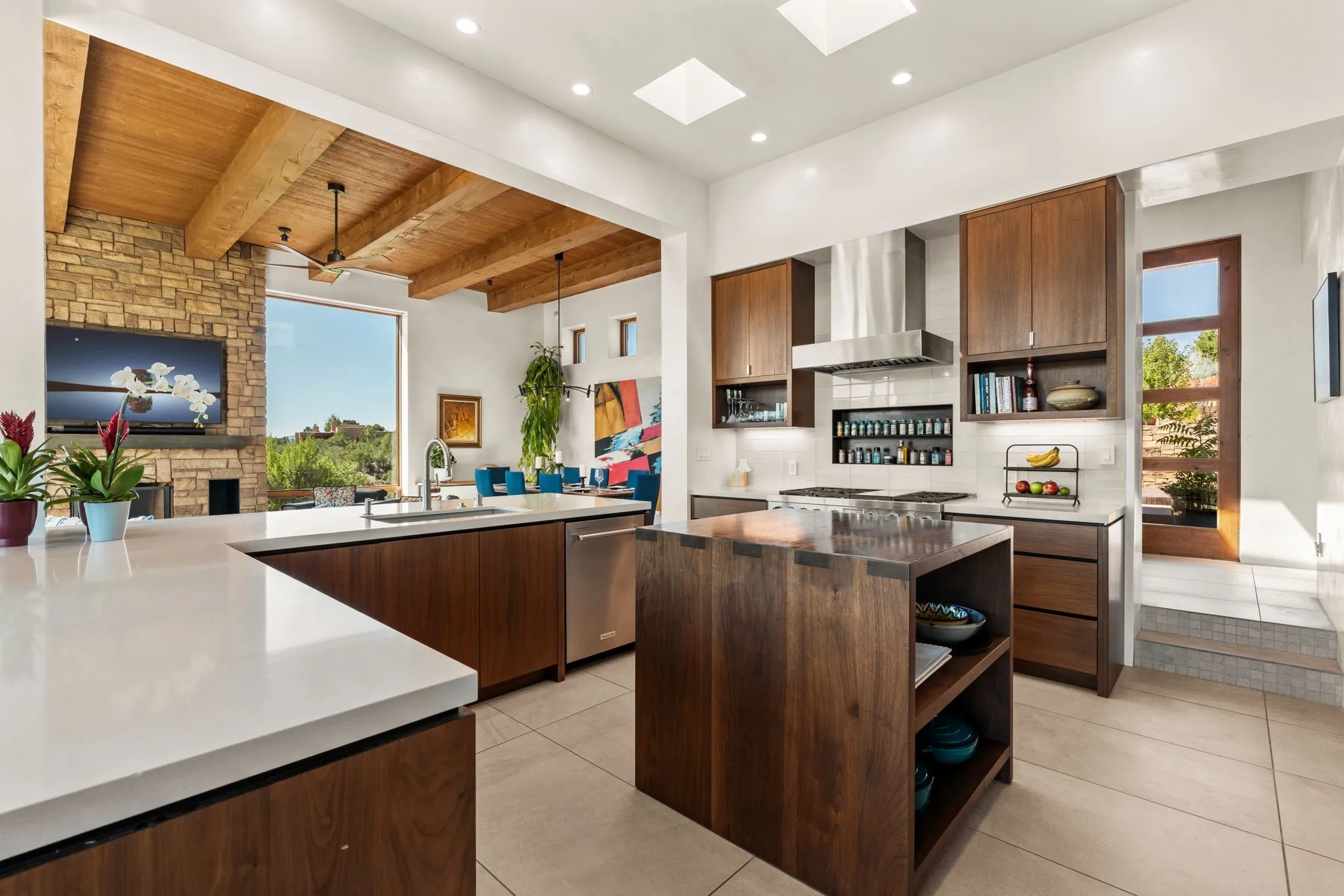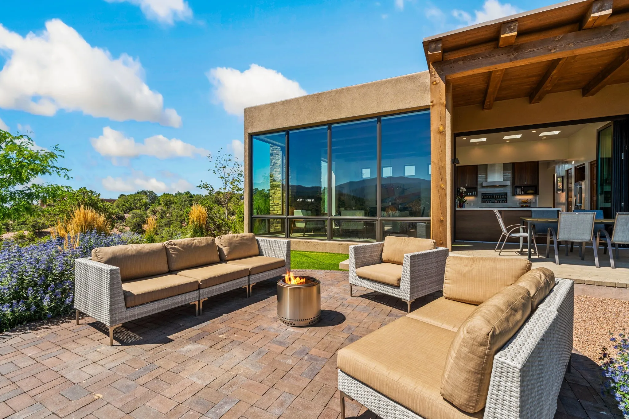 The Best Views in Santa Fe? Please come and judge for yourself! This relatively new home, designed and built by one of the owners of Tierra Concepts construction company, is a delight to live in. Owner is the Listing Broker of this property. We never tired of the changing views…watching the rainbows over the mountains, the snow plow lights at the ski basin, the deer wandering by, or the changing mountain colors! This 3 BR, 3 Bath home with a Great Room and a Den is well laid out and appointed. With many built in interior shades, the multi-opening Kitchen doors, drop down screen, and drop down wall mounted LR TV, it is easy to entertain of just cozy up and watch the grand view. The home has radiant floor heating as well as central heat and air. Hope you will love the home as much as we have!