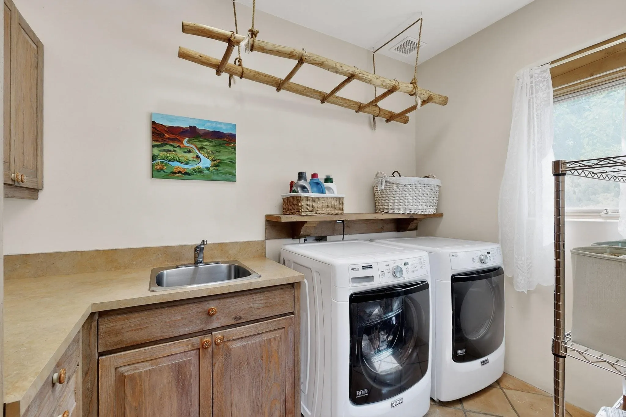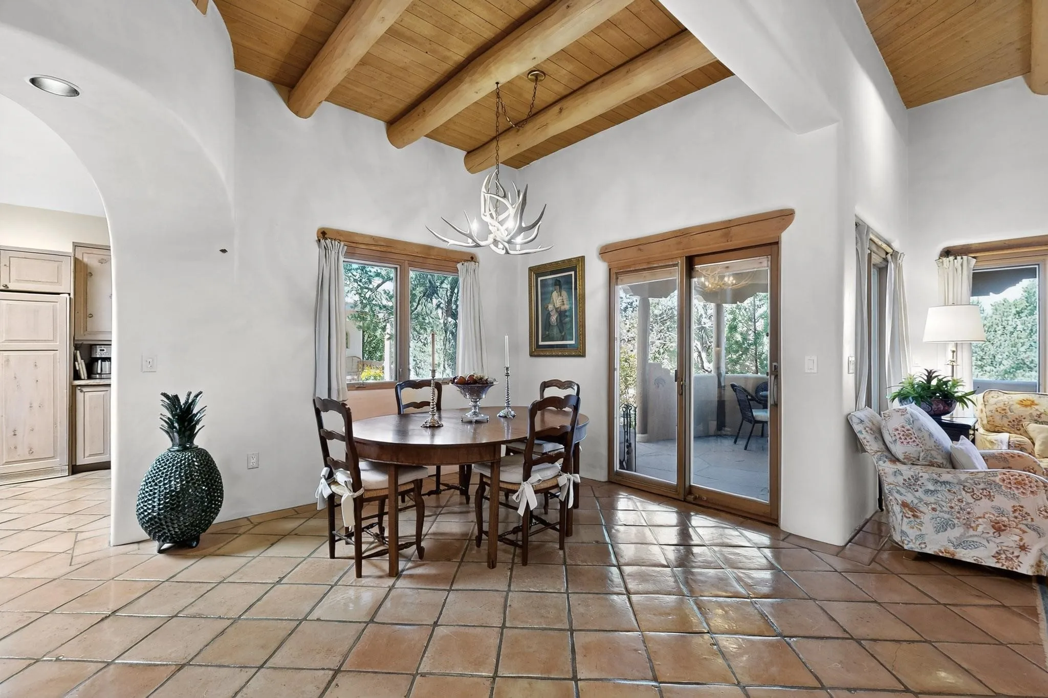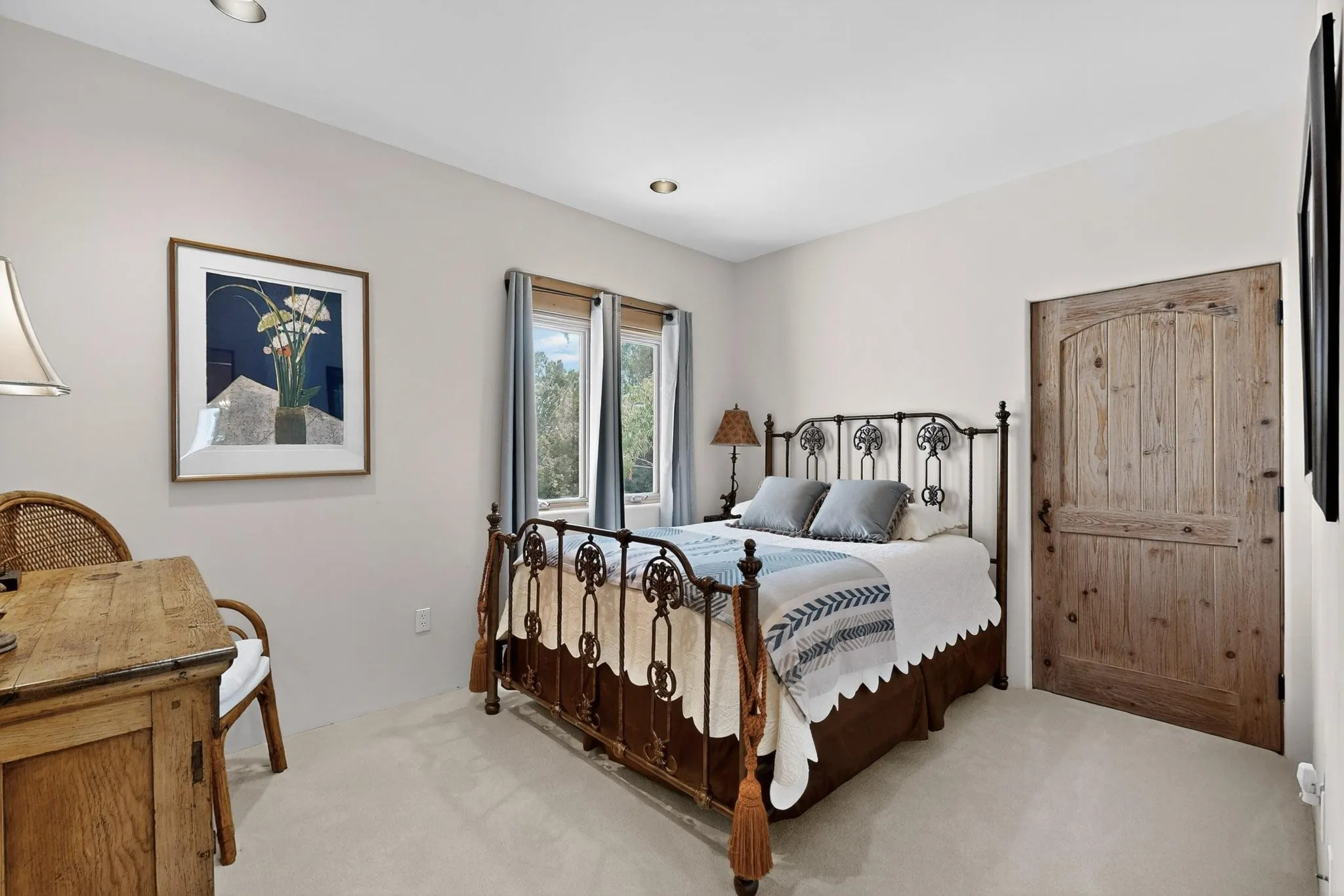 Vast sweeping panoramic western views define this exceptional property. The main house includes a primary bedroom suite with a fireplace, comfortable sitting area and a spa bath for relaxation. Large windows showcase the expansive western vistas, and doors lead to the portal. An additional room serves as either a TV room/office or bedroom and features its own fireplace and stunning views of the Sangres. The open floor plan seamlessly connects the living room, dining room, and kitchen, all centered around the fireplace. A unique and charming casita complements the main residence, equipped with a kitchenette, bath, and a cozy fireplace, making it ideal for guests or extended living. The wraparound portal, featuring a fireplace, showcases sweeping western views, offering the ideal setting to enjoy breathtaking sunsets. Relax to the soothing sounds of the stone fountain and enjoy watching the birds and butterflies in the fragrant colorful garden. A large patio area including a built-in grill, features additional space for relaxing and entertaining. The rooftop deck offers spectacular 360-degree views and the gated and walled property offers privacy.