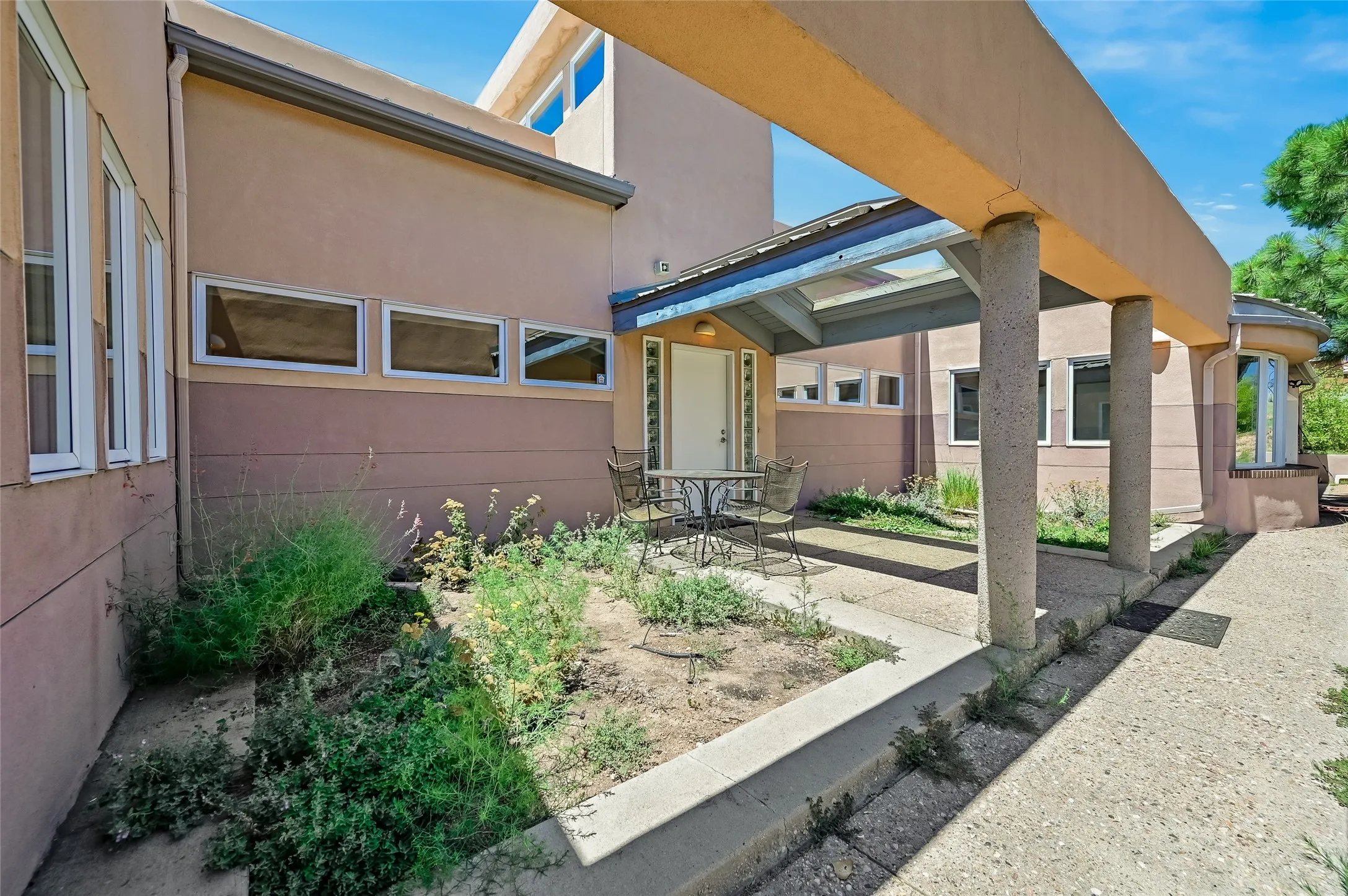 Income-producing property just 15 minutes from Downtown Santa Fe (3 mins. to St. Vincent’s, close to shopping and the Rail Runner). Situated on a private 1-acre lot, this unique compound features a 3-bedroom main house designed with passive solar principles. The fully detached 2-bedroom guest house has its own entrance, kitchen, and bath-ideal for rentals, a guest suite, studio, or private office. Mature trees surround both homes, providing peace, privacy, and scenic beauty. The sustainability, and potential. Perfect for investors or multigenerational living