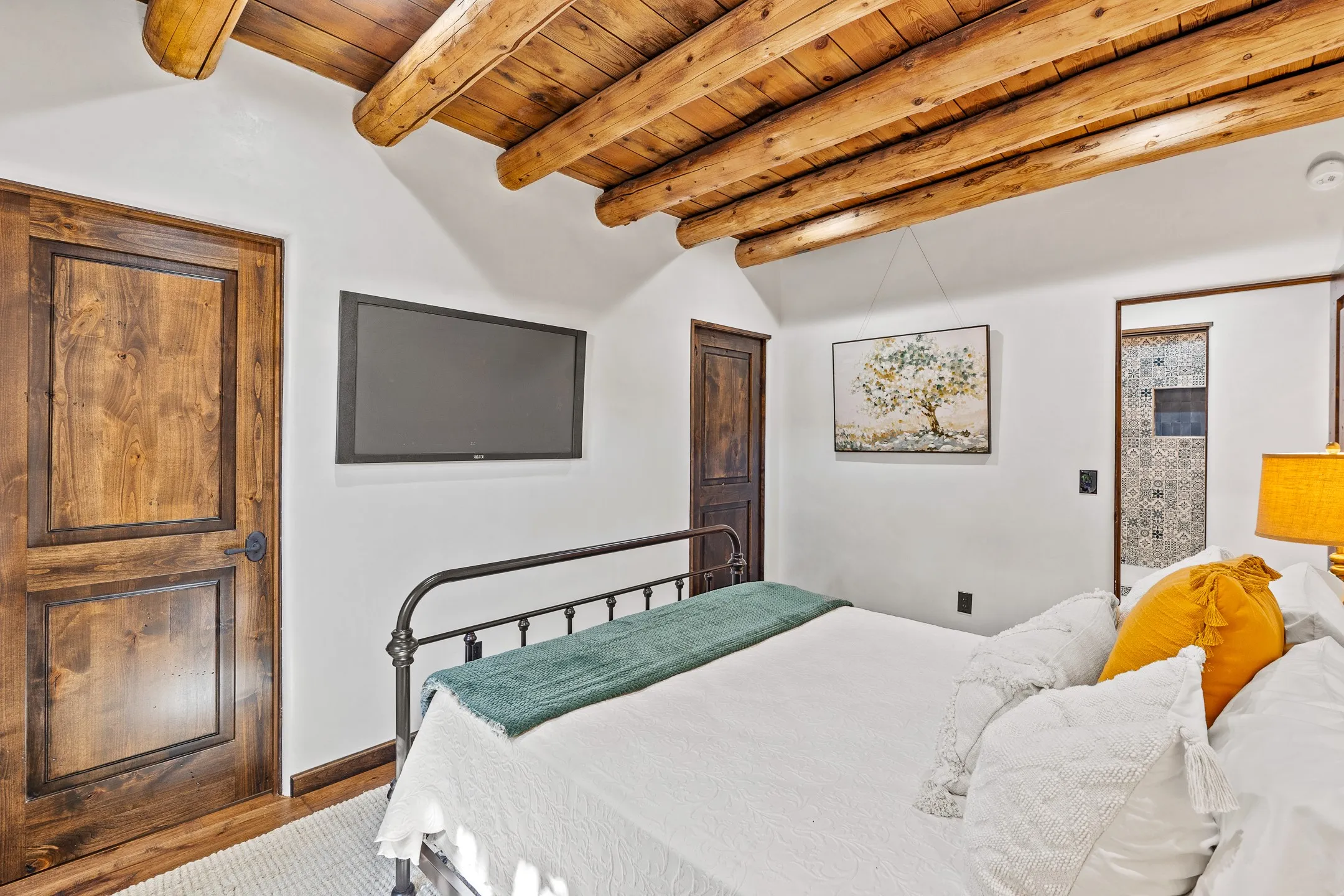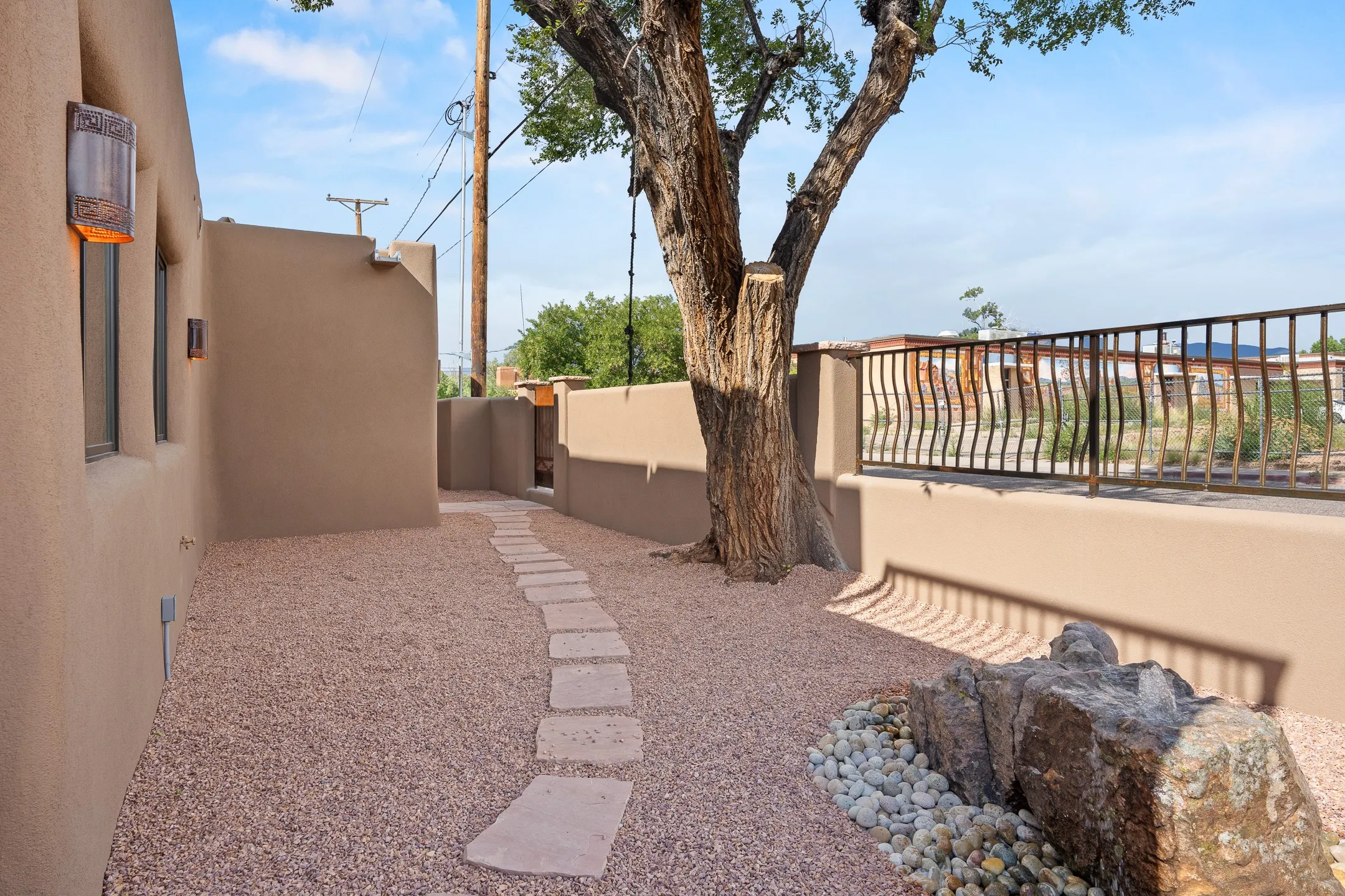 Timeless Santa Fe Charm Just Steps from the Railyard. Nestled in one of Santa Feās most coveted locations, this beautifully restored adobe offers a rare blend of historic charm and modern luxuryājust steps from the vibrant Railyard District and a short walk to the Plaza and Canyon Road. Originally constructed in the early 1900s, this 3-bedroom residence is complete with an attached studio or 4th bedroom that has been meticulously renovated to preserve its authentic character. Original vigas, flawless diamond plaster walls, arched entryways, and tongue-and-groove ceilings with recessed lighting create a warm, light-filled ambiance on a desirable corner lot. The home features two spacious primary