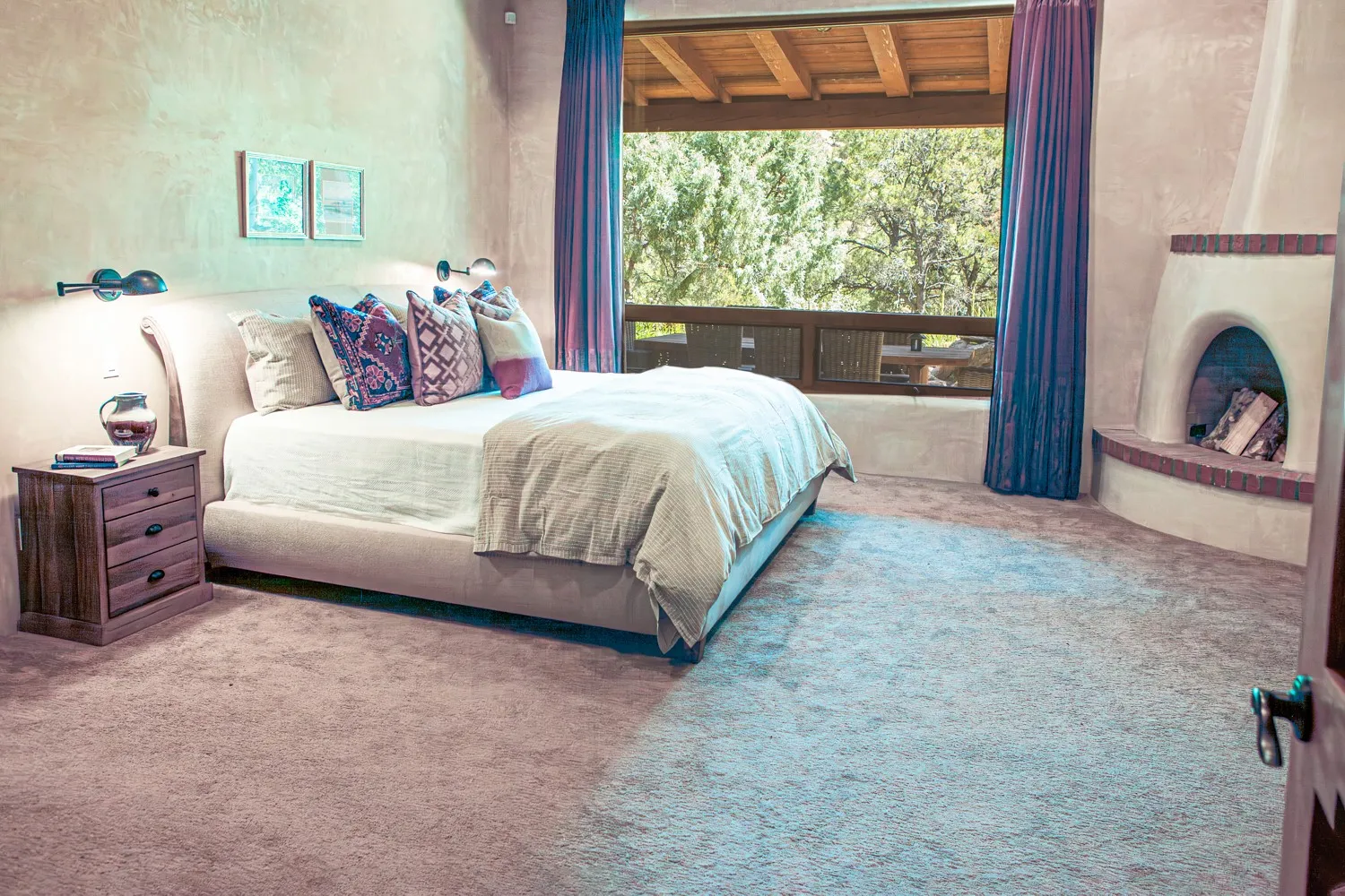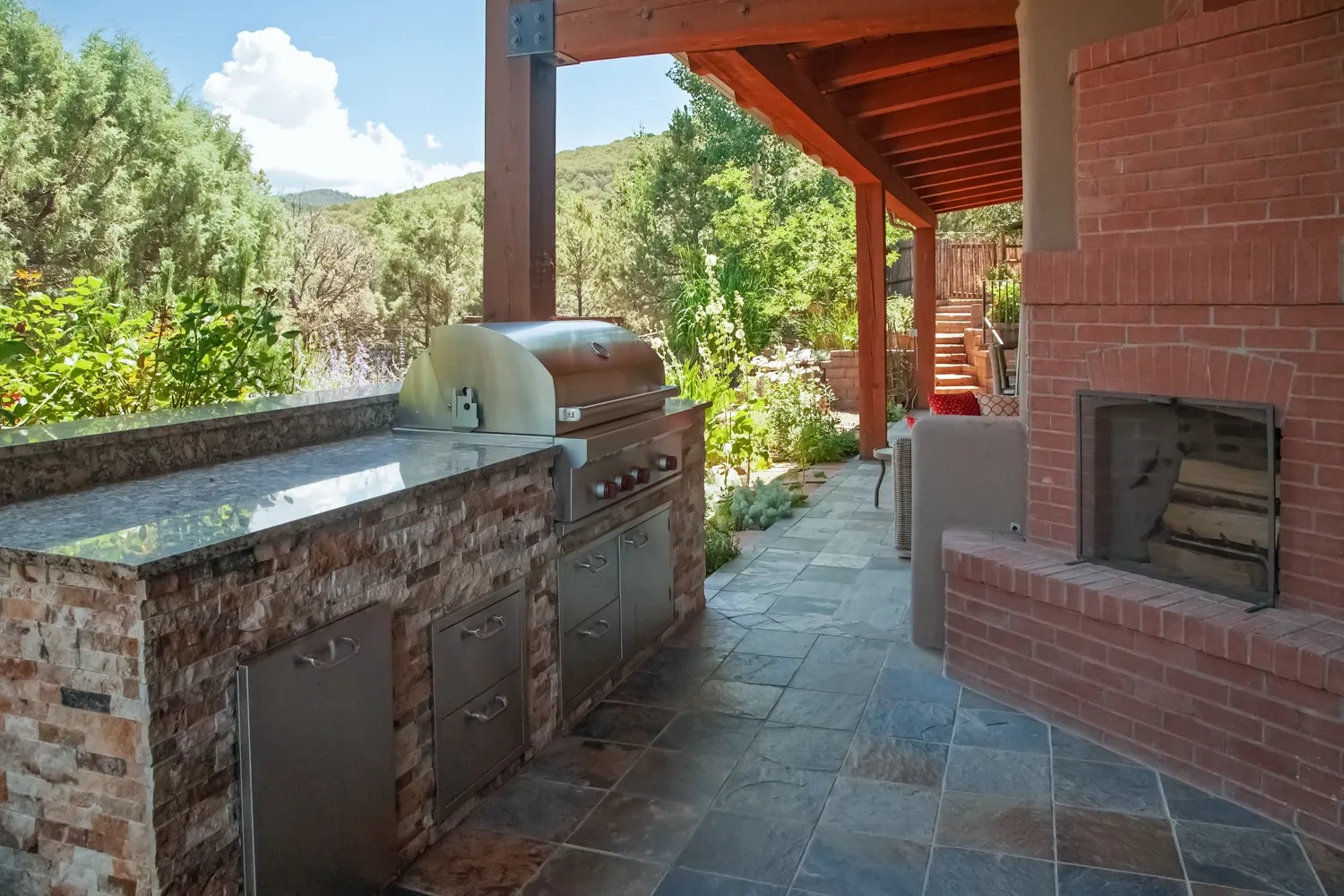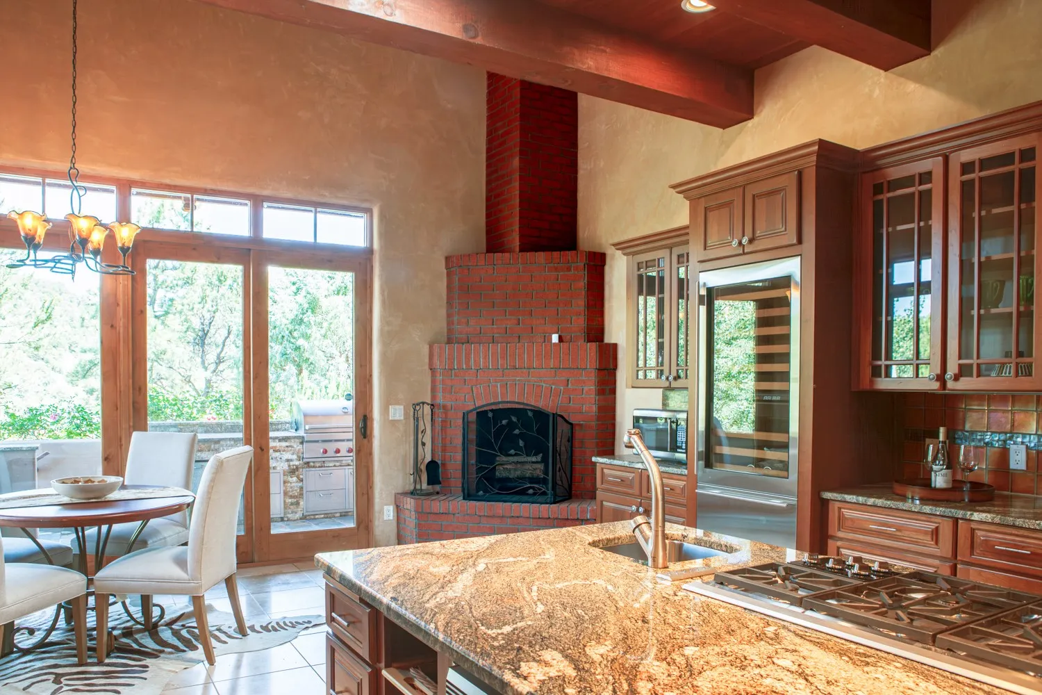 This stunning gated estate sprawls across over 4 acres, offering the perfect blend of privacy and convenience, and only a 20-minute drive to the Santa Fe Ski Basin. The home’s architecture is exceptional, featuring a pitched roof, prominent exposed timbers and trusses, a gabled dormer, clerestory windows, a metal roof that enhances its aesthetic appeal and an elevator. The grand entryway is highlighted by a custom steel door and a cascading waterfall feature. The gourmet kitchen is a chefās dream, equipped with a large island, breakfast nook, side-by-side Sub-Zero refrigerator and freezer, a wine and beverage center, and a formal dining area. The spacious living and family rooms are designed for entertaining, with one bedroom in this wingāone large enough to serve as a childrenās playroom. The expansive master suite includes a sitting area with kiva fireplace, a large bathroom, his and hers closets, and a beautiful view of the adjacent surrounding 25-acre open space. Nearby are an office and two ensuite bedrooms. The lower level features an exercise room, game room, kitchenette, wine cellar, and a bath. Outside, the property is equally impressive, with decks, porches, and patios nestled among lush fruit trees, aspens, and gardens. The outdoor living spaces include a professional BBQ, fireplace, and seating area around a tranquil Koi Pond. A separate combination car/RV garage provides ample space for large vehicles, with a private one-bedroom, one-bath guest house situated above it. This is quite simply a little slice of heaven just minutes from downtown Santa Fe and the Historic Plaza!