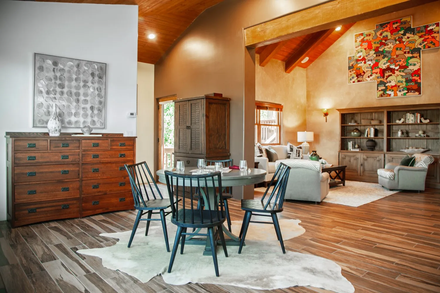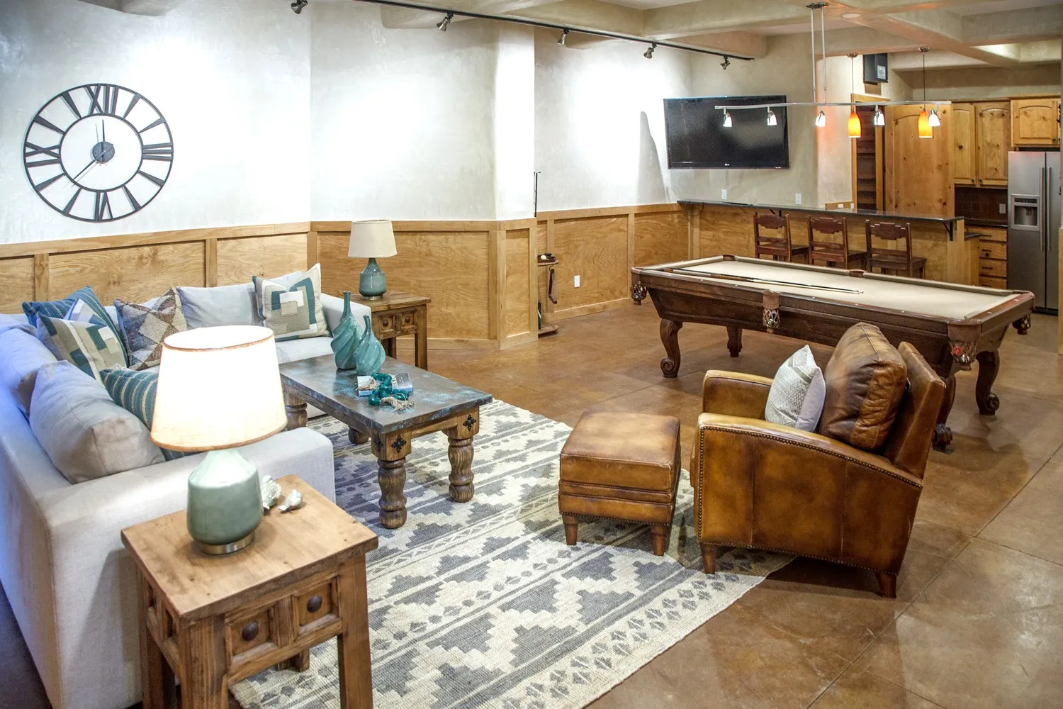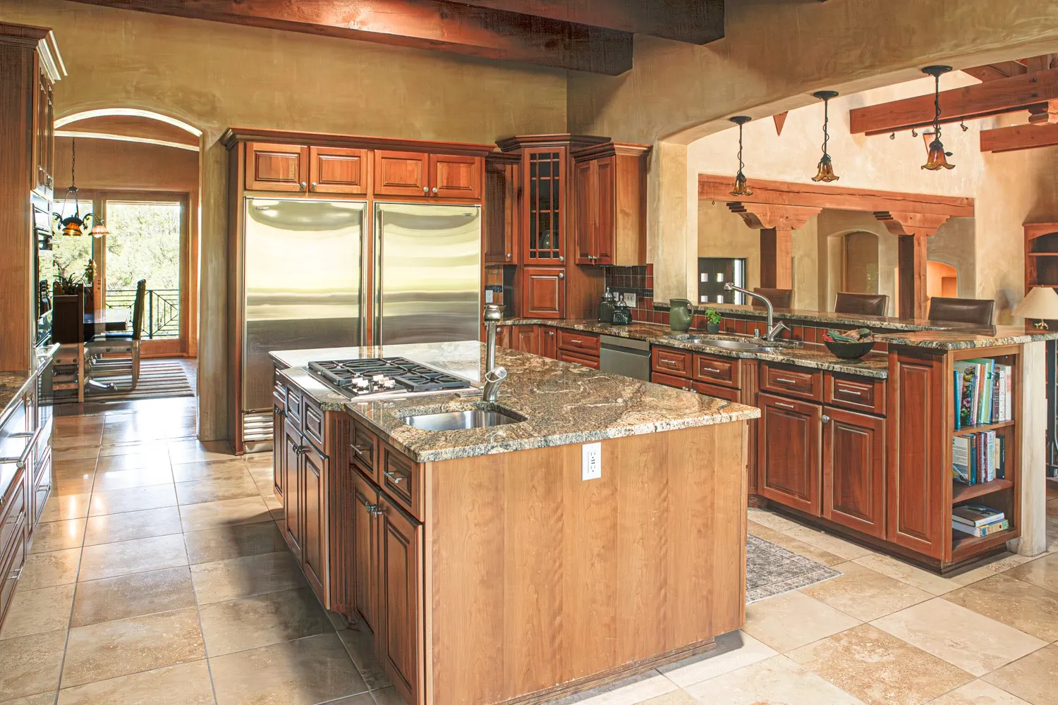 This stunning gated estate sprawls across over 4 acres, offering the perfect blend of privacy and convenience, and only a 20-minute drive to the Santa Fe Ski Basin. The home’s architecture is exceptional, featuring a pitched roof, prominent exposed timbers and trusses, a gabled dormer, clerestory windows, a metal roof that enhances its aesthetic appeal and an elevator. The grand entryway is highlighted by a custom steel door and a cascading waterfall feature. The gourmet kitchen is a chefās dream, equipped with a large island, breakfast nook, side-by-side Sub-Zero refrigerator and freezer, a wine and beverage center, and a formal dining area. The spacious living and family rooms are designed for entertaining, with one bedroom in this wingāone large enough to serve as a childrenās playroom. The expansive master suite includes a sitting area with kiva fireplace, a large bathroom, his and hers closets, and a beautiful view of the adjacent surrounding 25-acre open space. Nearby are an office and two ensuite bedrooms. The lower level features an exercise room, game room, kitchenette, wine cellar, and a bath. Outside, the property is equally impressive, with decks, porches, and patios nestled among lush fruit trees, aspens, and gardens. The outdoor living spaces include a professional BBQ, fireplace, and seating area around a tranquil Koi Pond. A separate combination car/RV garage provides ample space for large vehicles, with a private one-bedroom, one-bath guest house situated above it. This is quite simply a little slice of heaven just minutes from downtown Santa Fe and the Historic Plaza!