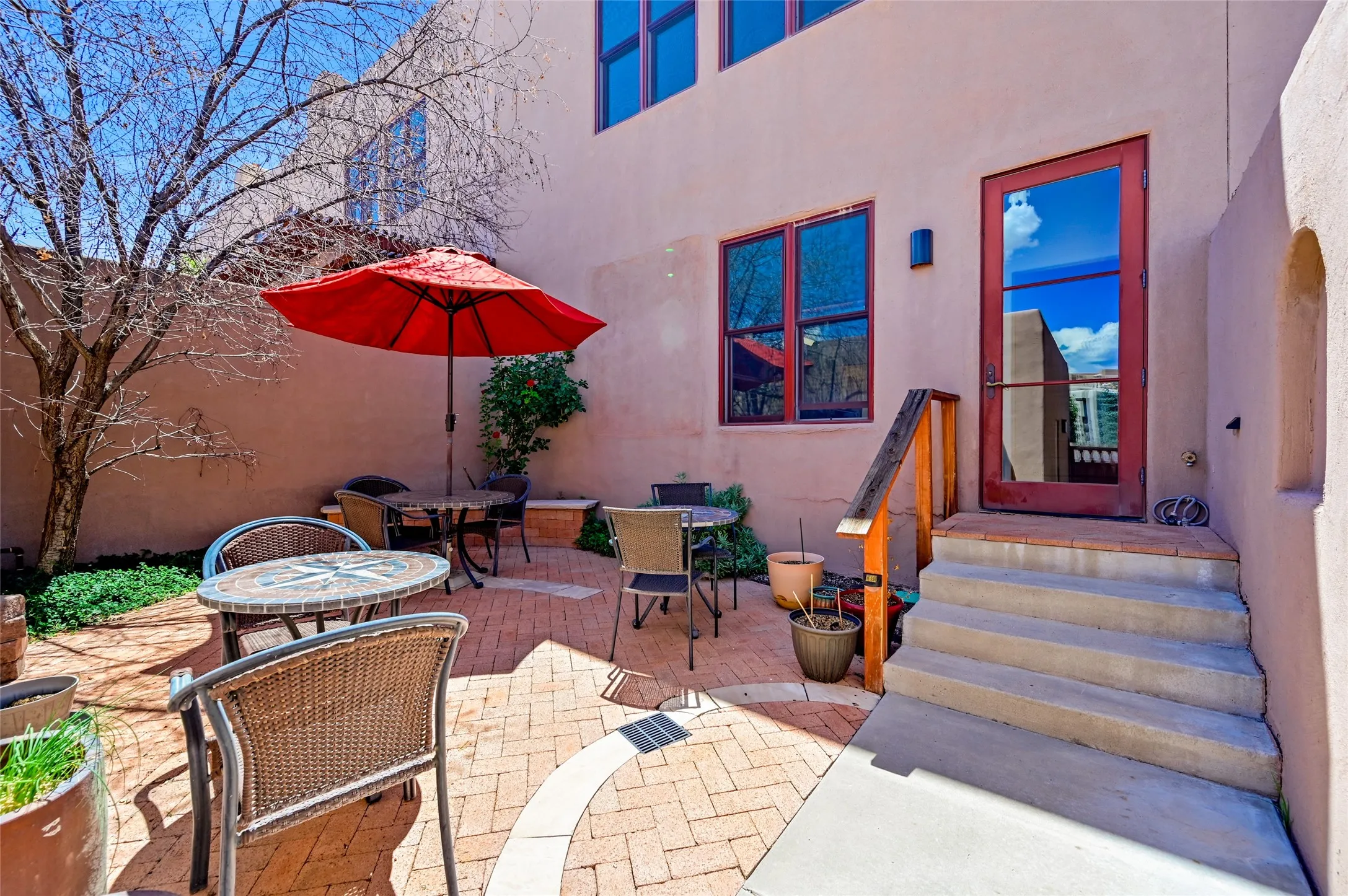 Rare live/work opportunity in Aldea de Santa Fe. The unit has been converted into a restaurant with approx. 1,788/SF of ground-floor space, featuring a commercial vent hood, 3-compartment sink, grease trap, floor drain, handwashing sink, customer restroom, employee restroom, and a private back patio with mature landscaping and brickwork. The upstairs unit can be used for residential or commercial purposes and is currently built out with a living room, kitchenette with stackable washer and dryer, full bath, guestroom, and a main bedroom with an en suite bath and walk-in closet. The second and main bedrooms offers outdoor balcony access with superb mountain views. The property also includes a spacious two-car garage and additional commercial parking at the rear. This is an excellent opportunity for another restaurant, office, gallery, florist, retail store, or other neighborhood use. Association dues are approximately $500 per quarter. Restaurant equipment isāāāāāāāāāāāāāāāāāāāāāāāāāāāāāāāā negotiable.