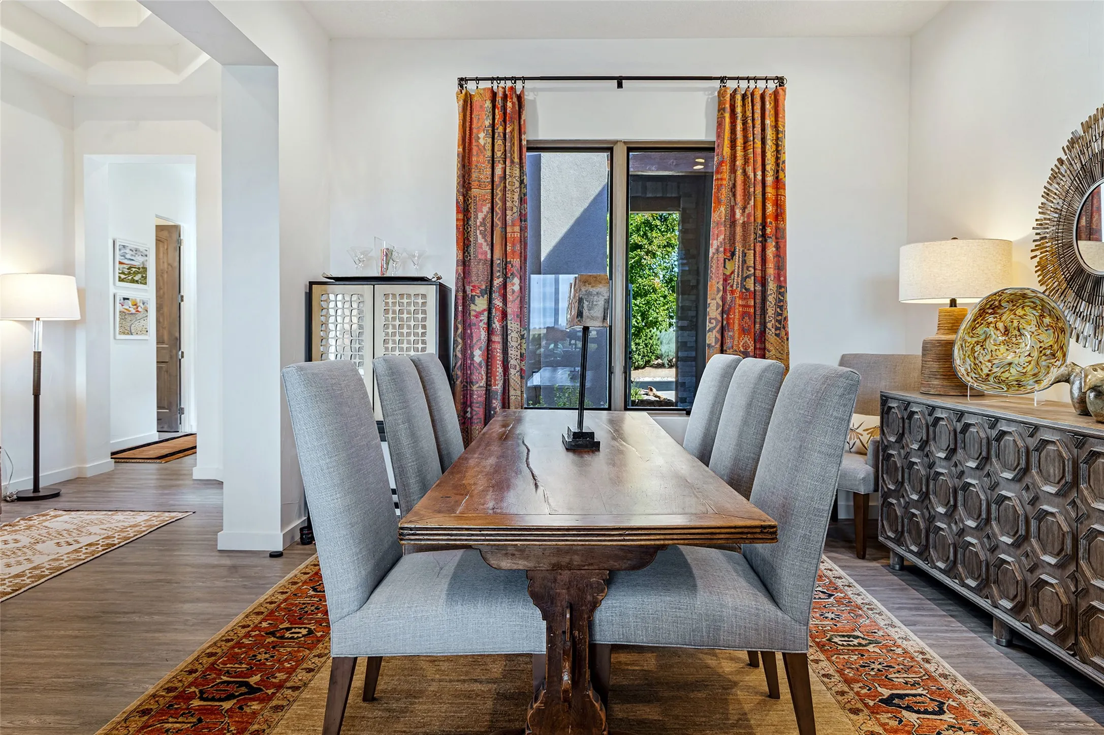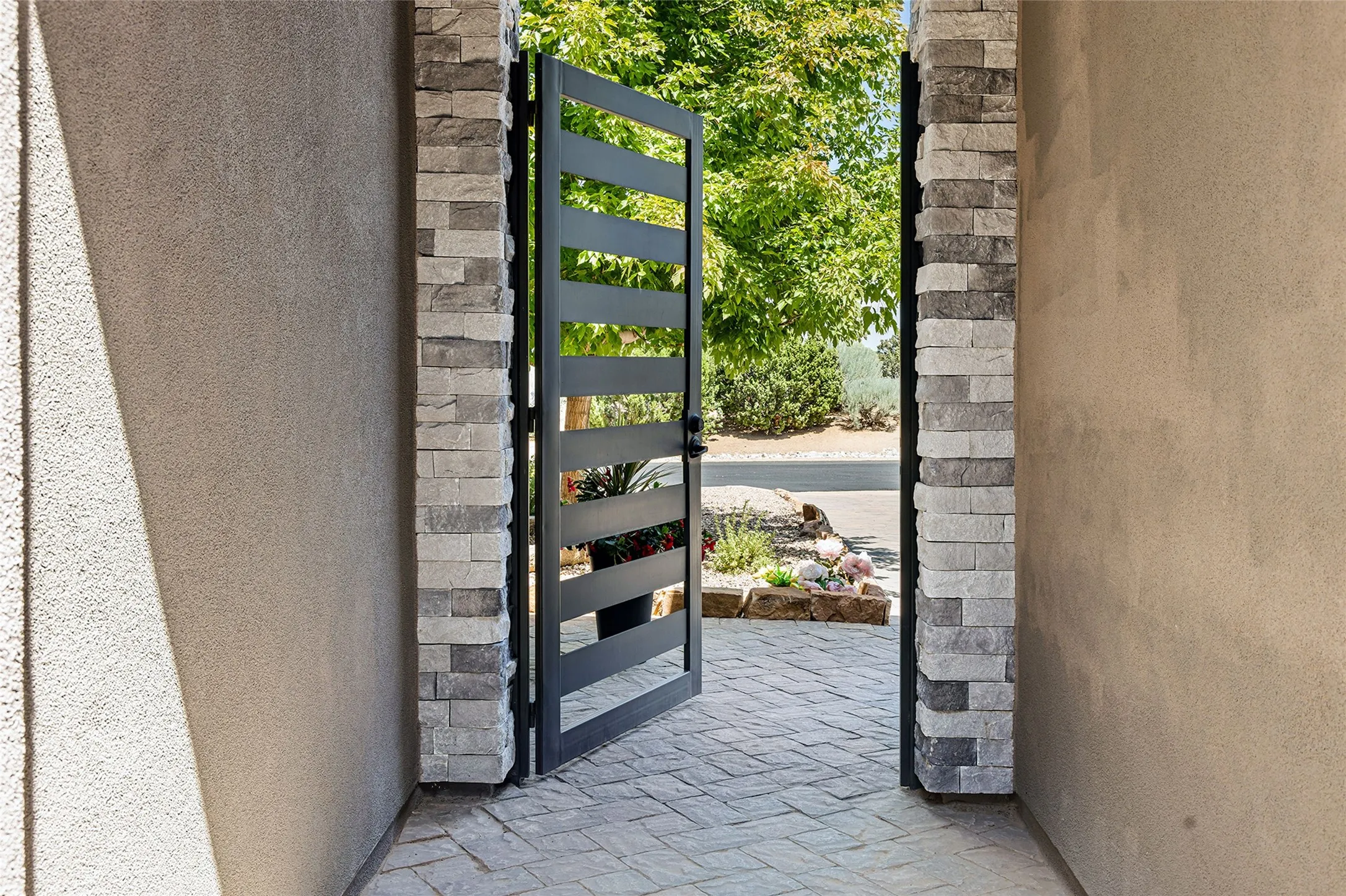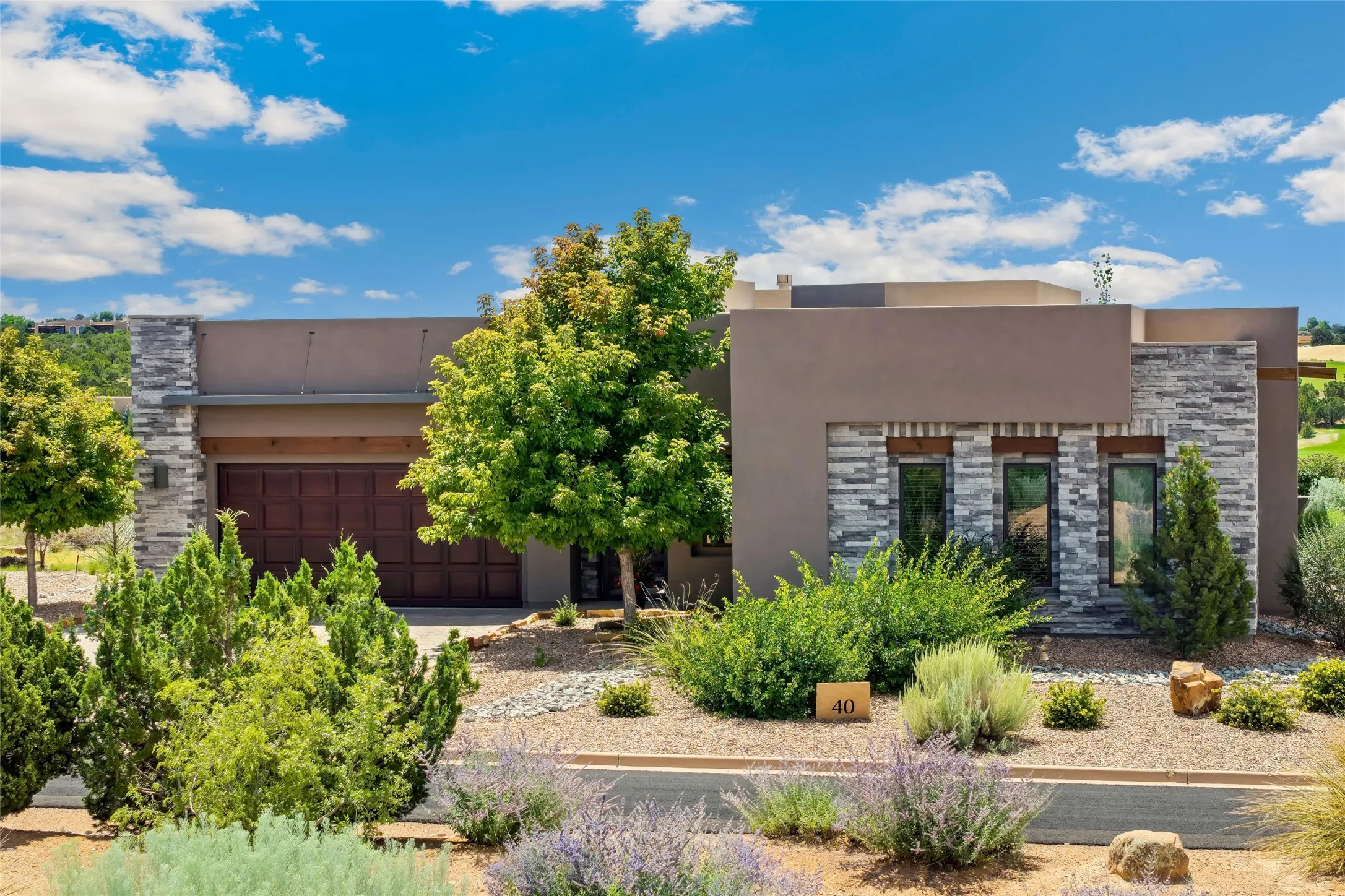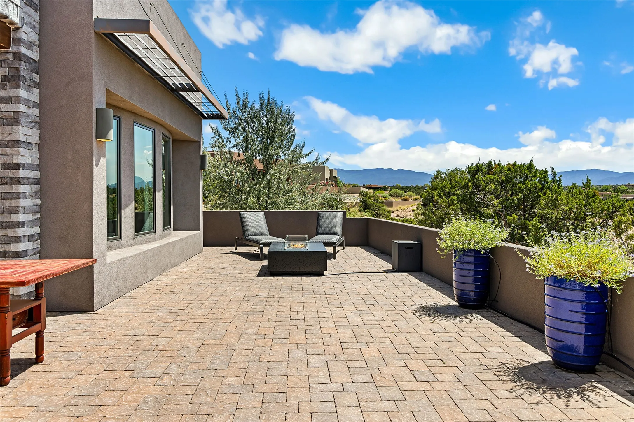 Experience the ultimate Las Campanas lifestyle with stunning golf course views and just a short walk to The Club at Las Campanas! Elevated above it all, this beautifully upgraded and custom-designed Santa Fe retreat offers four bedrooms and four bathrooms in a turnkey package, including all furnishings and artwork. Boasting exceptional golf course and sunset views, this exciting home seamlessly combines contemporary architecture with Santa Fe warmth. Sited on an elevated view lot, the residence welcomes you through a private, gated front courtyard featuring a tranquil fountain. Inside, the spacious, open-concept great room showcases breathtaking golf course views, a gas fireplace with stone accents, and a generous dining area. The newly updated chefās kitchen is a culinary dream, with natural stone countertops, an expansive island, a walk-in pantry, top-of-the-line appliances, and a casual dining space.The luxurious ownerās suite offers a curved wall of windows framing the stunning views, along with a renovated en-suite bath featuring dual vanities, a soaking tub, walk-in shower, and a spacious walk-in closet. The separate guest wing provides three additional bedrooms for complete privacy from the main living areas.