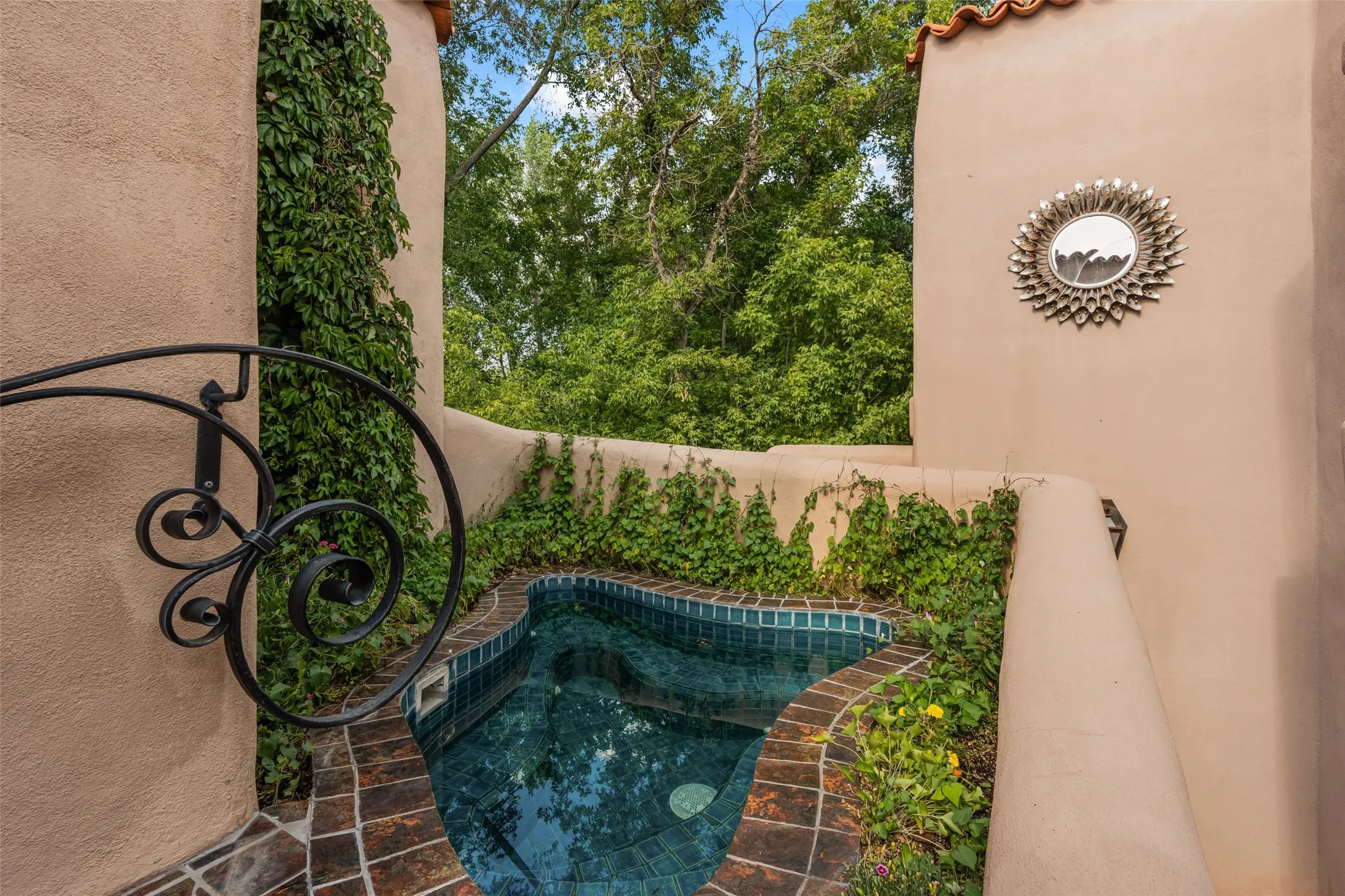 CASON DEL TRIUNFO – THE GIORGIO AND YOLANDA BELLOLI ESTATE – Originally designed and built in 1935, Santa Feās most beautiful home has been lovingly maintained, expanded, and embellished by subsequent owners. The present-day architectural masterpiece presents an opportunity like no other – unique architecture featuring buttresses and curved terracotta tile roof, magnificent patios, 3 guest casitas, elaborate office and movie theatre, wine cellar, swimming pool and hot tub, 250+ feet of Rio Santa Fe frontage, and magnificent landscaping and outdoor spaces.