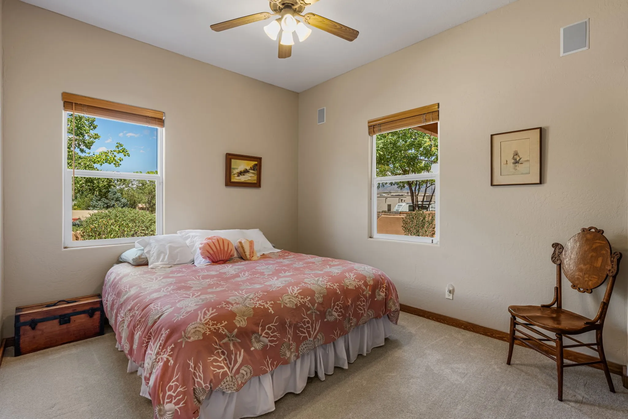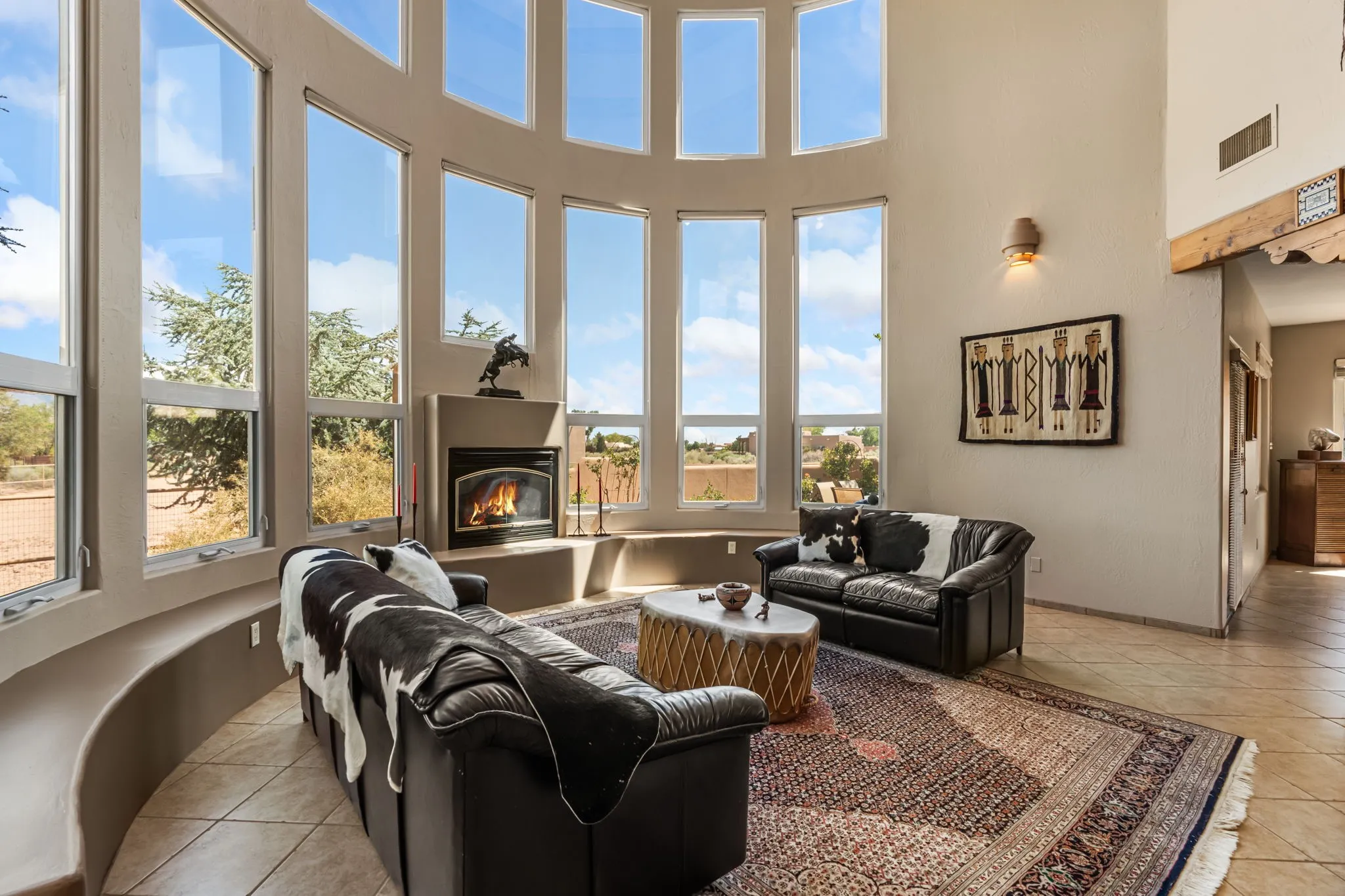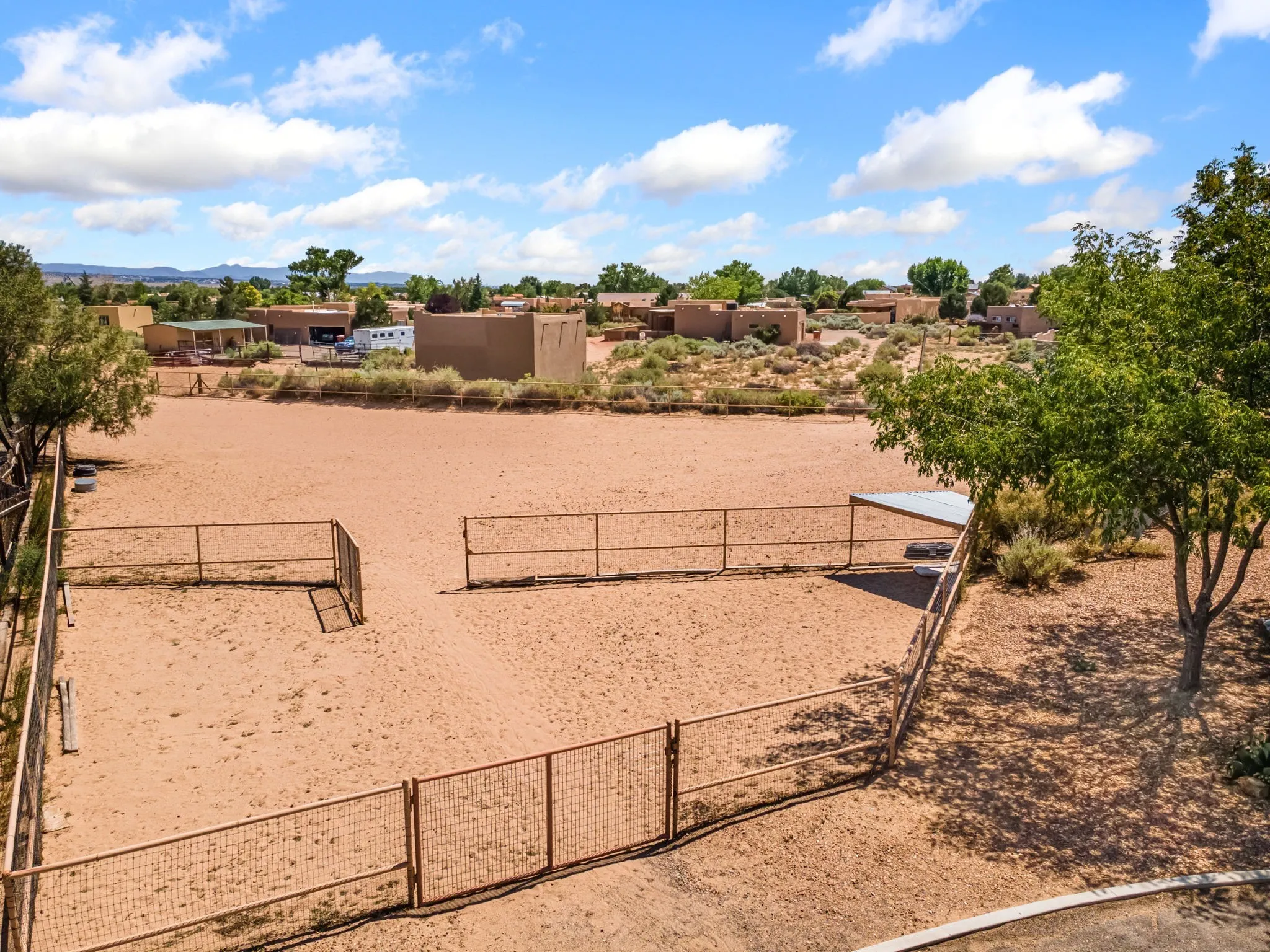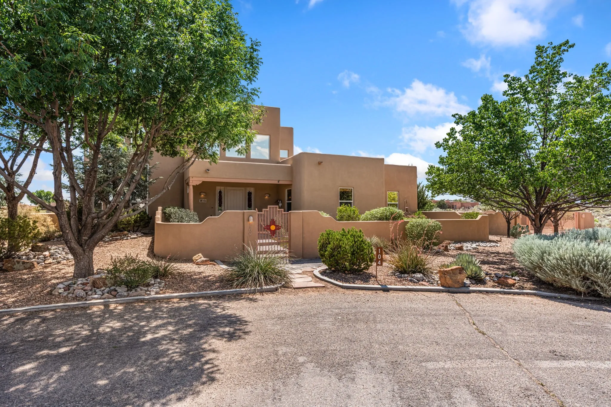 An absolutely stunning southwest sytle pueblo custom home. Hidden culdesac location, completely gated with a courtyard entry. This stunning home captivates you from the moment you walk in. High dramatic ceilings capture the views of the sandia mountains. The open concept floor plan flows seamlessly from the entrance through the greatroom w/fireplace. Gourmet kitchen w/an octagon island, custom cabinetry, SS appliances, & a walk-in pantry flows into the dining area w/access to the east patio. Retreat to the primary bedroom upstairs featuring a sitting area, dream closet, garden bath, & a private balcony to enjoy the unbelievable views. Two bedrooms downstairs w/ a full bath. Service room w/sink conveniently located near the three car garage w/ plenty of built in storage. Property is piped fenced, perfect for the equestrian, dog agility, or animal lover. Property is laid out well for a truck & trailer, & easy maintenance. A great place to call home.