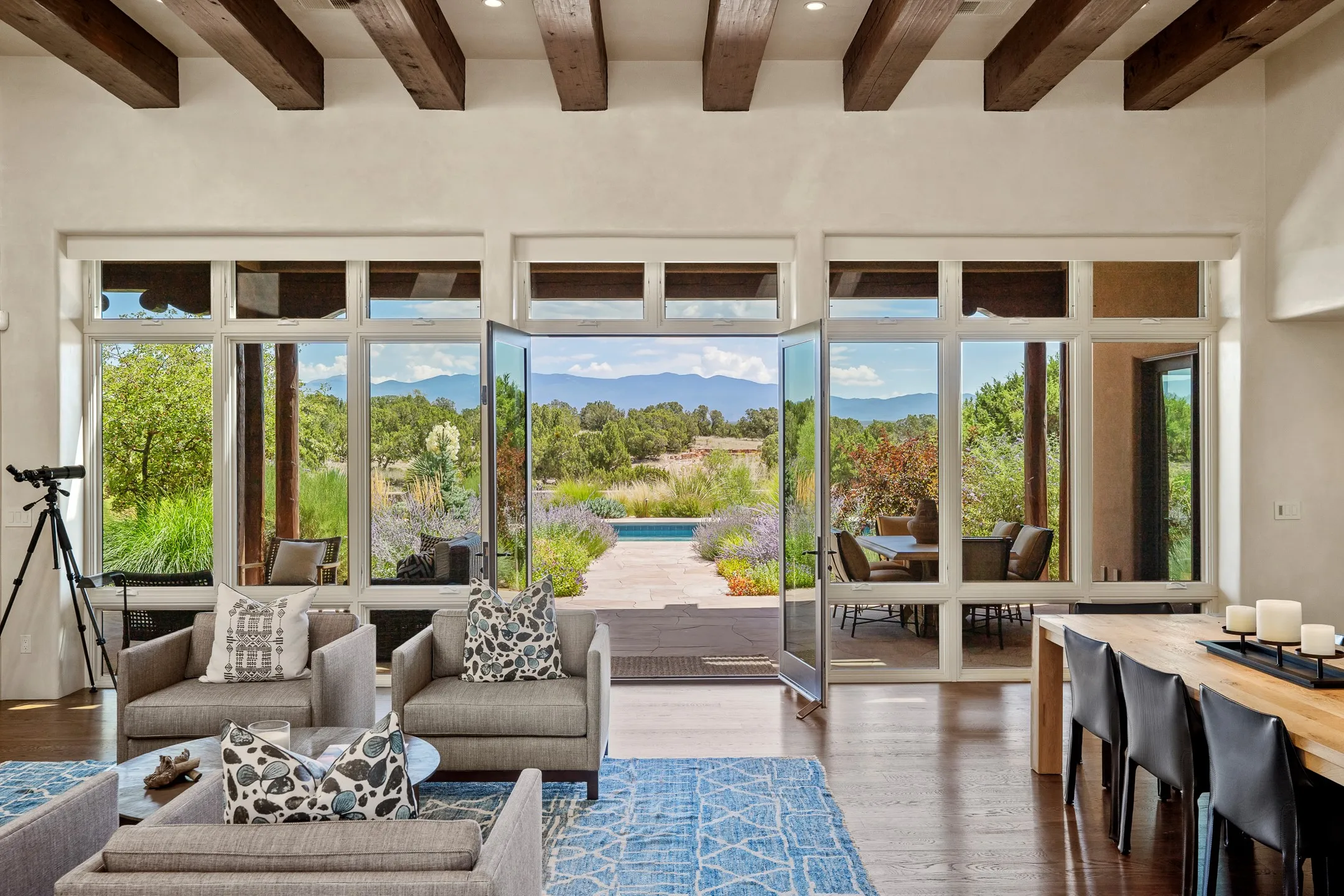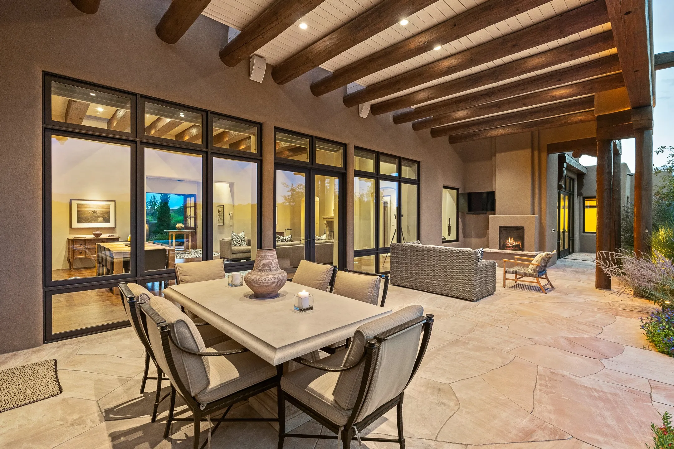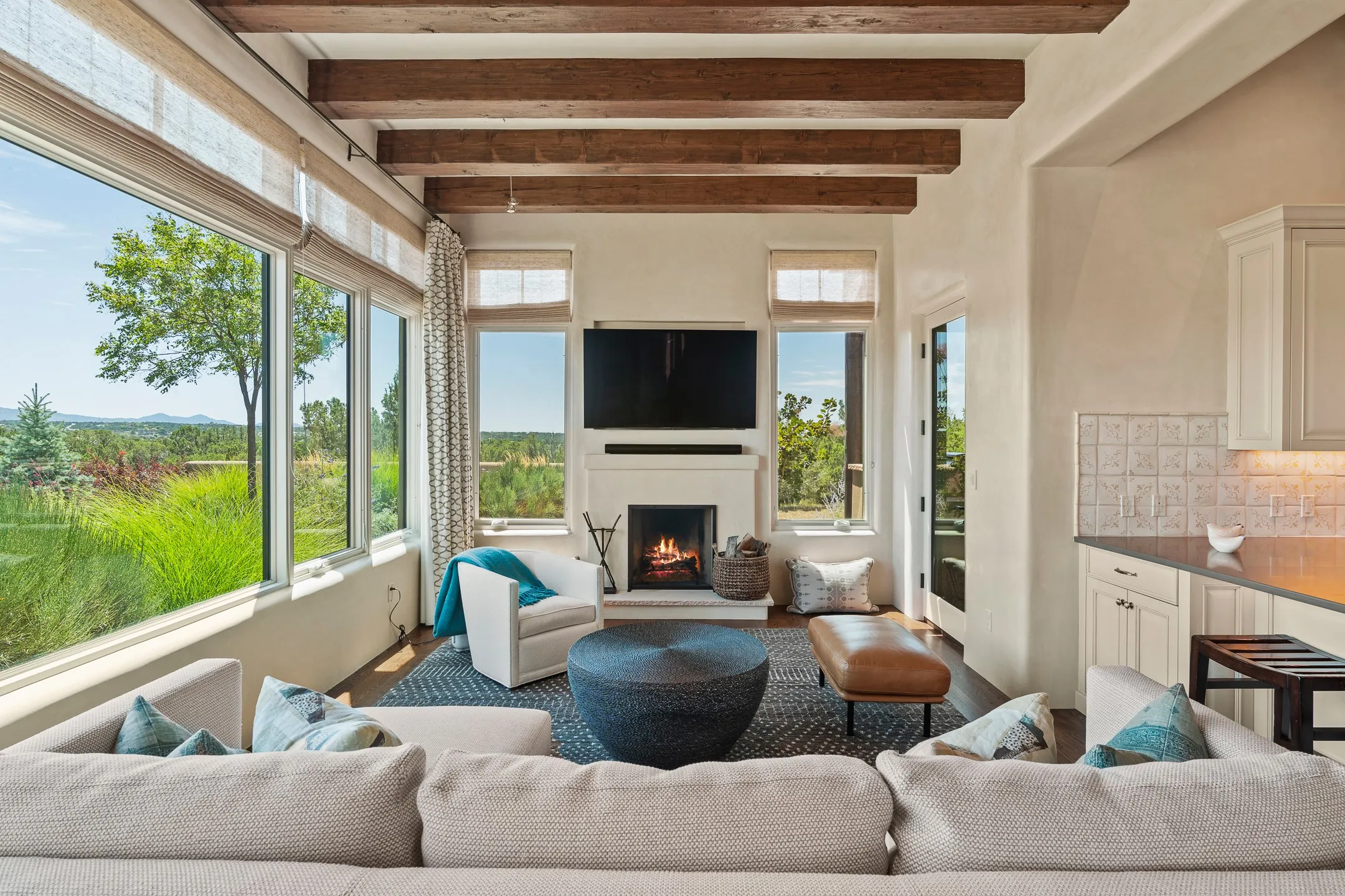 Completed in 2016 with meticulous attention to detail, the home features warm wood floors and beams, abundant natural light, and a layout that blends openness with intimate spaces. The chefās kitchen is equipped with Miele and Sub-Zero appliances, elegant Taj Mahal quartzite countertops, and a versatile wet bar seamlessly connecting to the living room. A casual den just off the kitchen offers an inviting retreat, while the adjacent great room and open dining area are ideal for entertaining. The primary suite is a true sanctuary, complete with a kiva fireplace, private portal access, a beautifully remodeled spa bath, and a grand walk-in closet. A second kiva graces the adjoining library/officeāperfect for quiet work or reading by the fire. Guest quarters are thoughtfully separated, offering generous bedrooms, a private den, and comfort for family or friends. From the pool terrace, a landscaped path leads to a serene seating area – an idyllic spot for stargazing under Santa Feās expansive skies. Additional amenities include radiant in-floor heating along with central heat & refrigerated air, a spacious two-car garage, abundant storage, and access to Las Campanasā world-class golf, dining, spa, and equestrian facilities. A golf equity membership to the club is available for separate purchase. Las Campanas HOA provides 24 hour security, gates, 24/7 Paramedic services, walking paths and maintenance. A rare offering in one of Santa Feās most coveted communities – crafted for those who demand both beauty and quality.