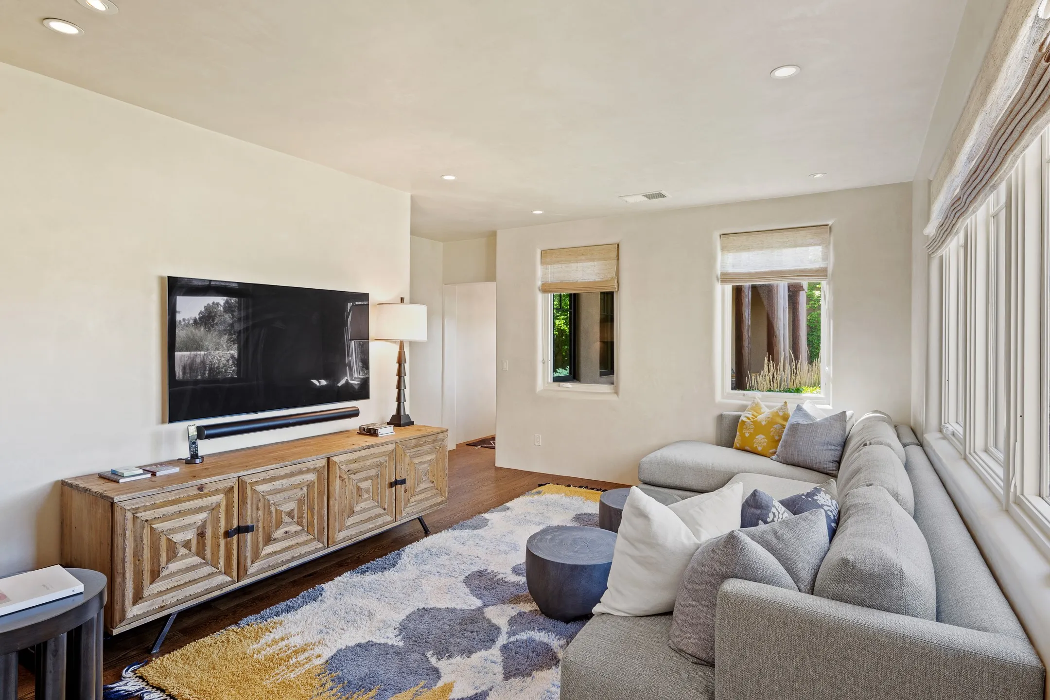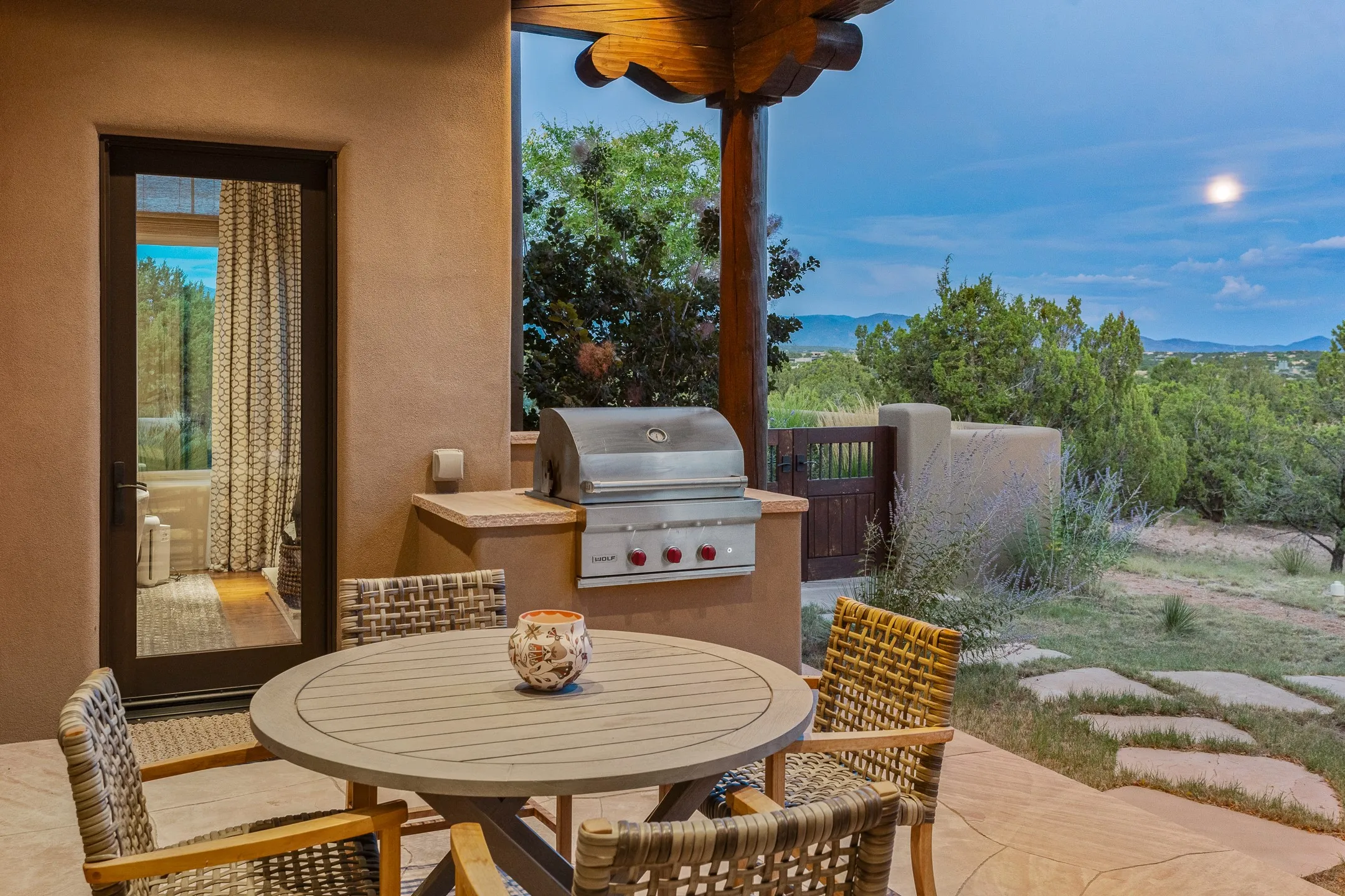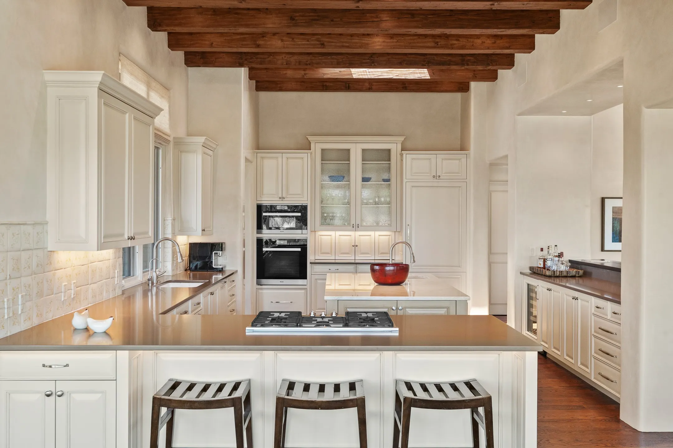 Completed in 2016 with meticulous attention to detail, the home features warm wood floors and beams, abundant natural light, and a layout that blends openness with intimate spaces. The chefās kitchen is equipped with Miele and Sub-Zero appliances, elegant Taj Mahal quartzite countertops, and a versatile wet bar seamlessly connecting to the living room. A casual den just off the kitchen offers an inviting retreat, while the adjacent great room and open dining area are ideal for entertaining. The primary suite is a true sanctuary, complete with a kiva fireplace, private portal access, a beautifully remodeled spa bath, and a grand walk-in closet. A second kiva graces the adjoining library/officeāperfect for quiet work or reading by the fire. Guest quarters are thoughtfully separated, offering generous bedrooms, a private den, and comfort for family or friends. From the pool terrace, a landscaped path leads to a serene seating area – an idyllic spot for stargazing under Santa Feās expansive skies. Additional amenities include radiant in-floor heating along with central heat & refrigerated air, a spacious two-car garage, abundant storage, and access to Las Campanasā world-class golf, dining, spa, and equestrian facilities. A golf equity membership to the club is available for separate purchase. Las Campanas HOA provides 24 hour security, gates, 24/7 Paramedic services, walking paths and maintenance. A rare offering in one of Santa Feās most coveted communities – crafted for those who demand both beauty and quality.